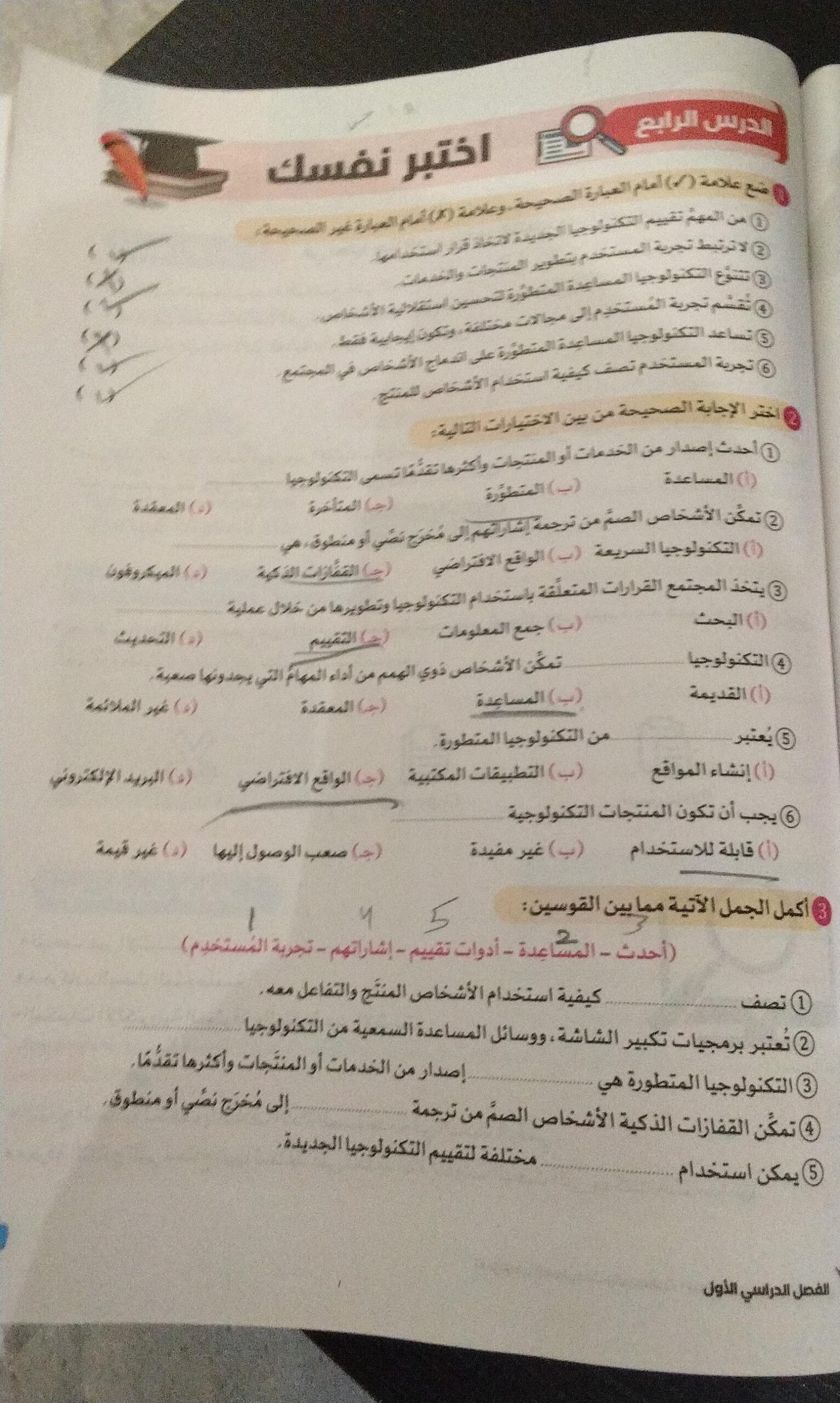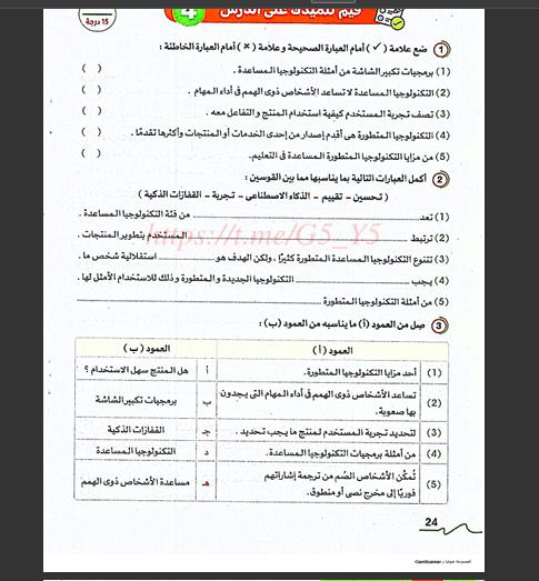 تم دراسة الدرس الرابع تقييم التكنولوجيا المتطورة الواجب صفحة 25