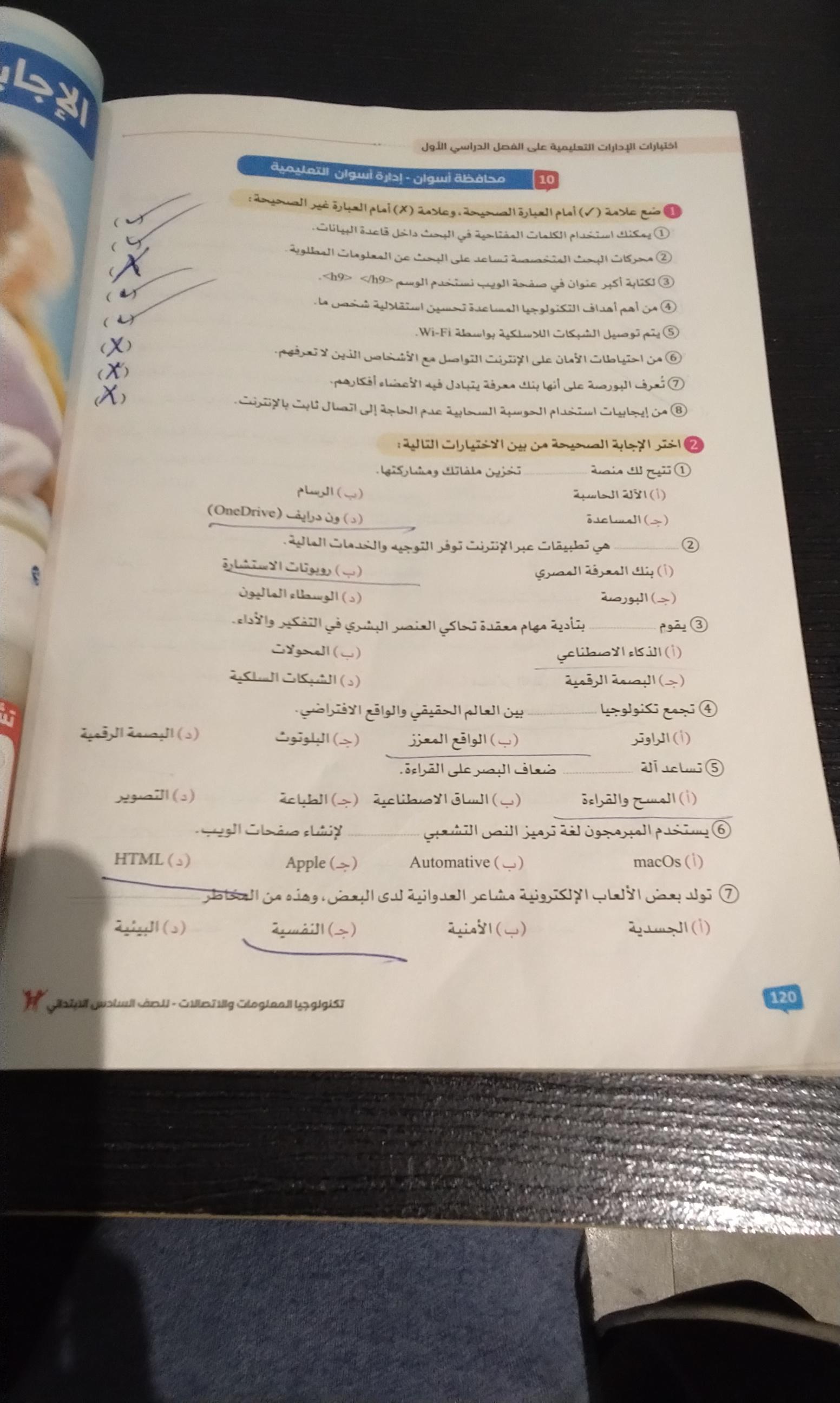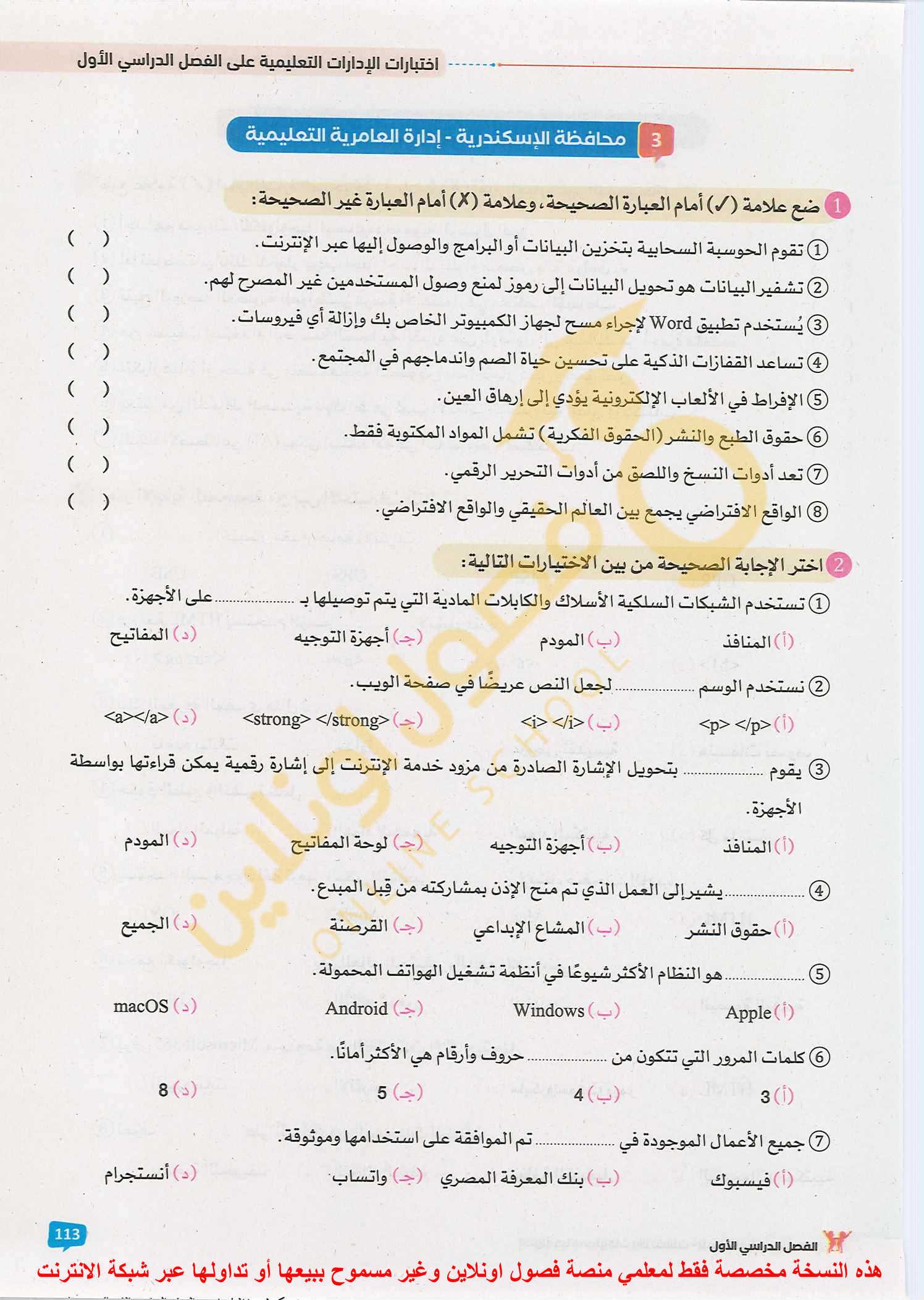مراجعة علي درس الشبكات الواجب صفحة 120