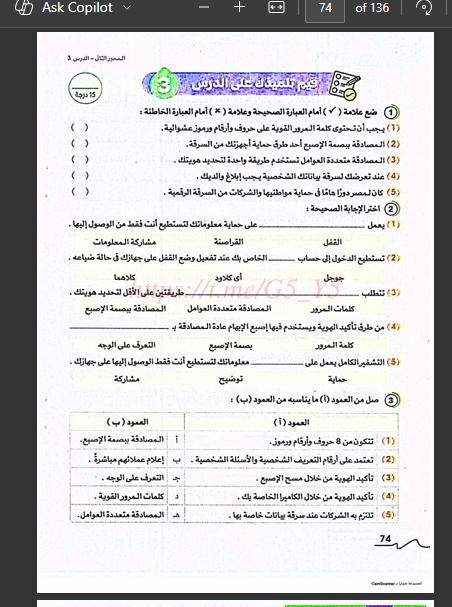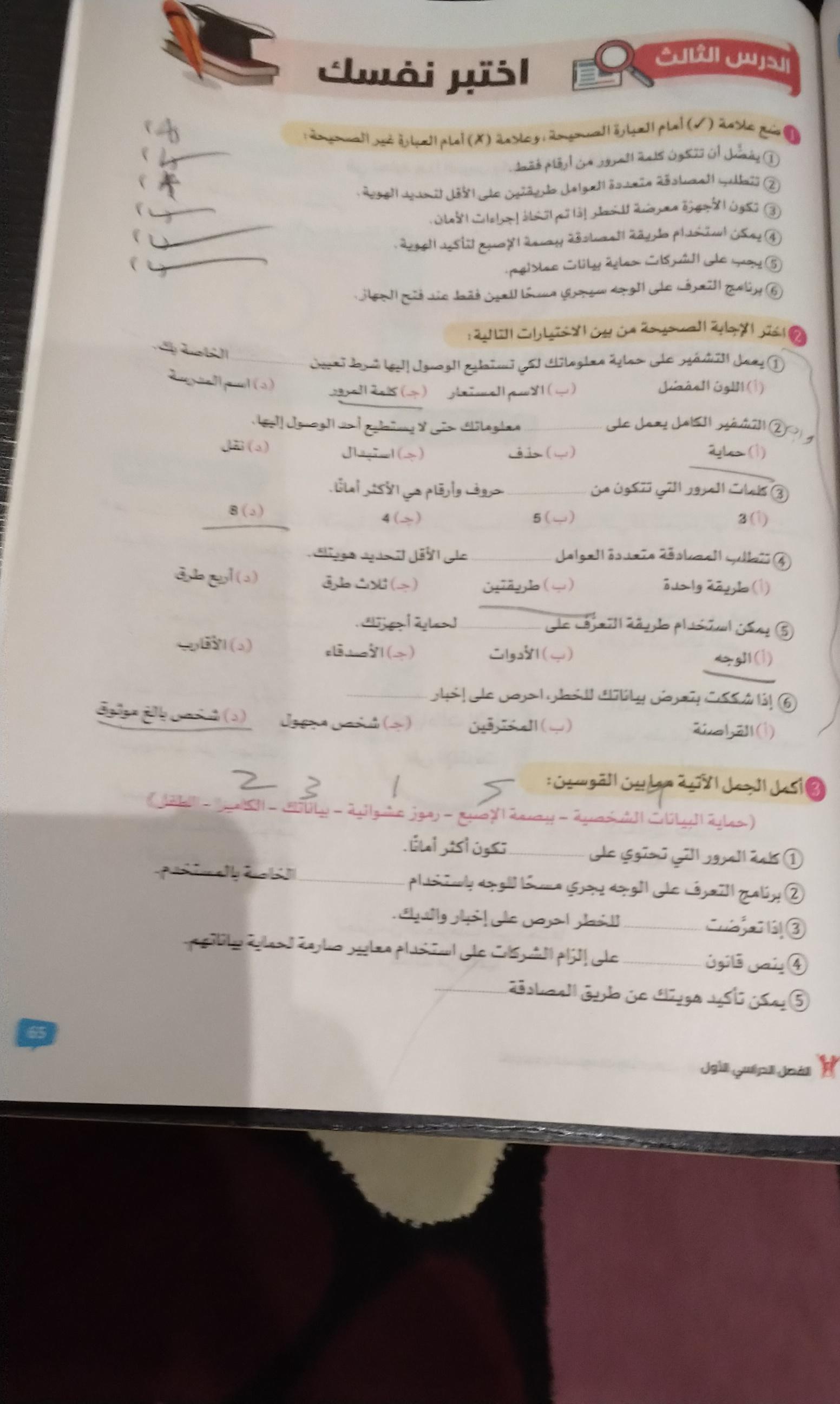 درسنا اليوم حماية نفسك من السرقة الرقمية الواجب ص 65 السؤال الثاني