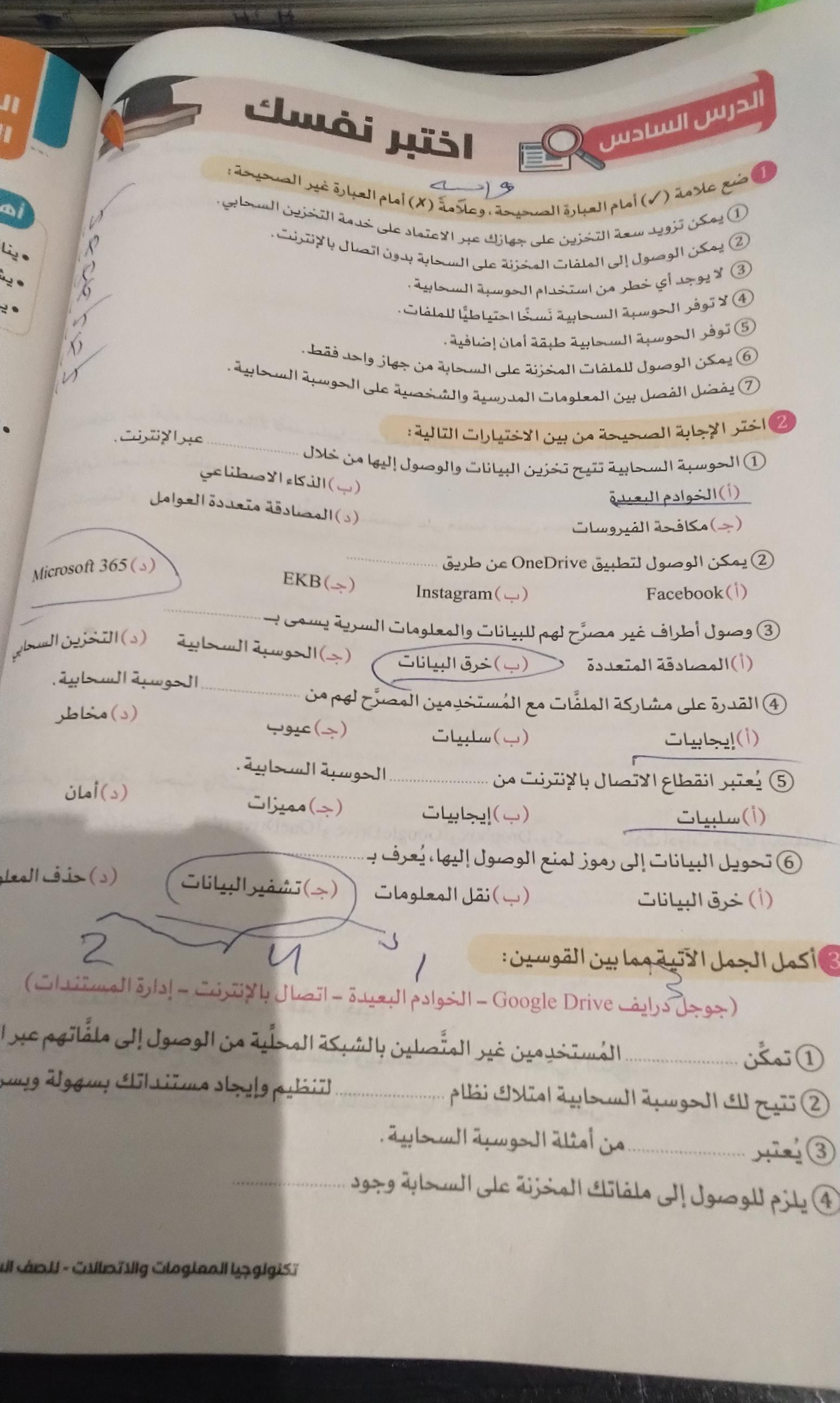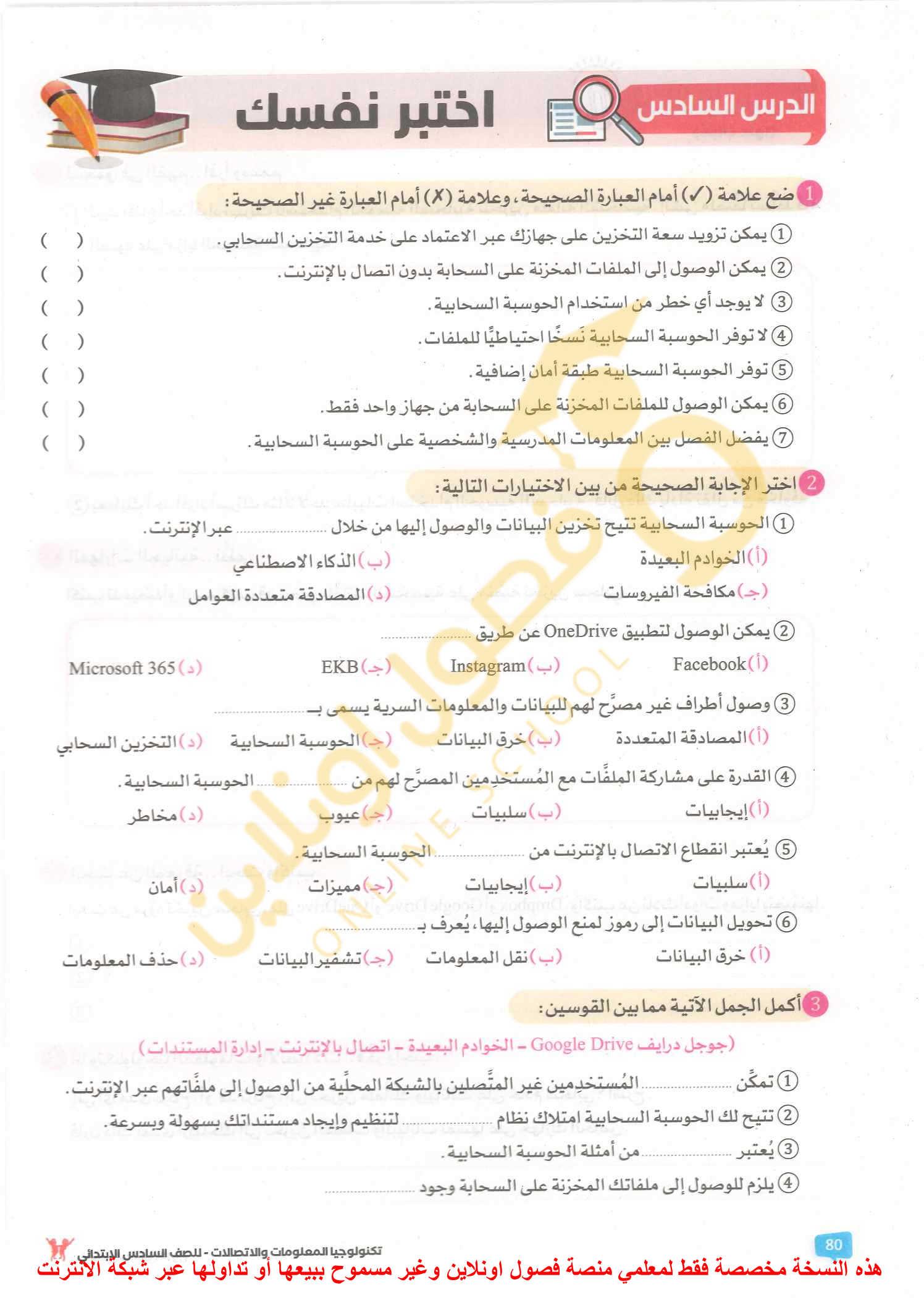 درسنا اليوم الحوسبة السحابية الواجب ص80 كاملة