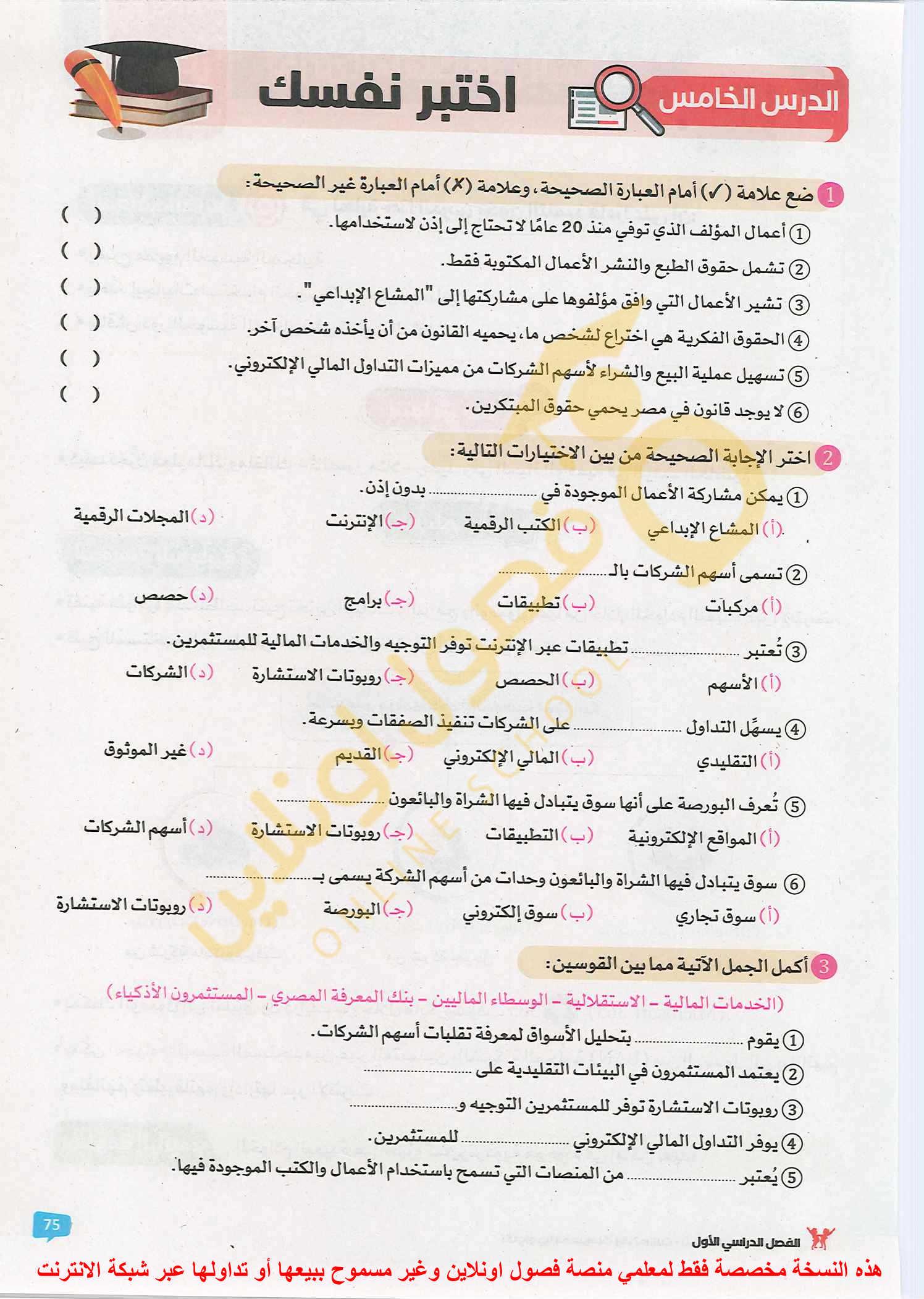 درسنا اليوم حقوق الطبع والنشر الواجب ص 75 السؤال الثاني
