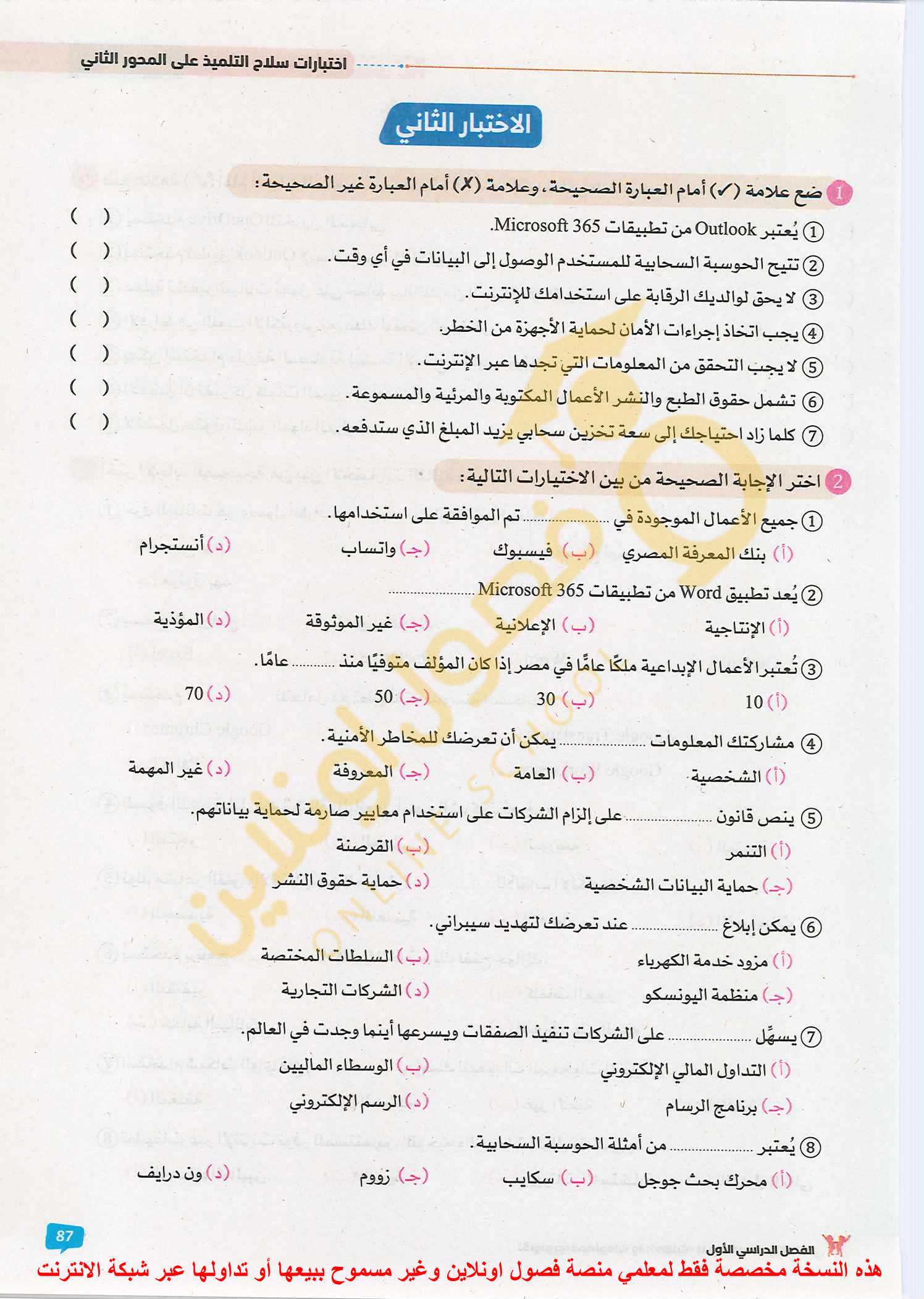 مراجعة الوحدة الاولي الواجب الامتحان الالكتروني