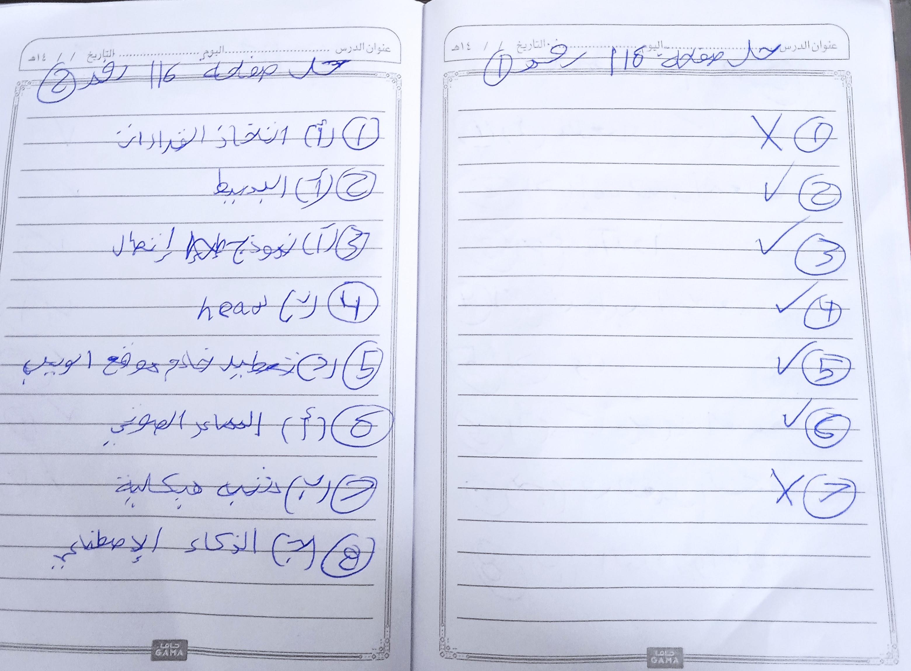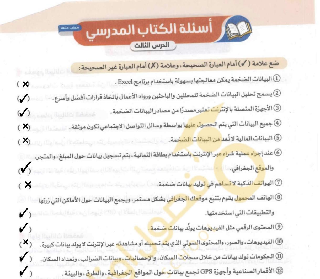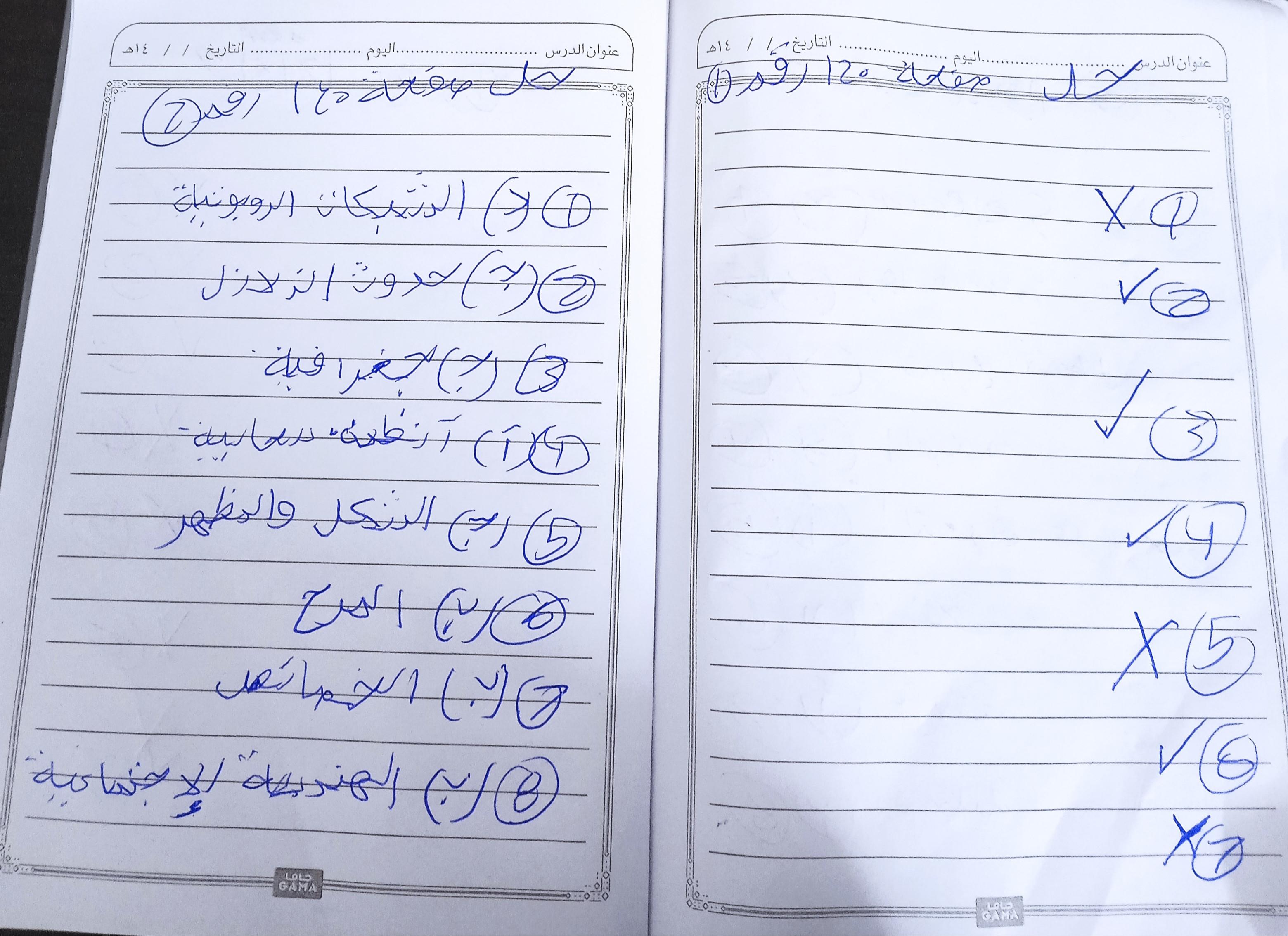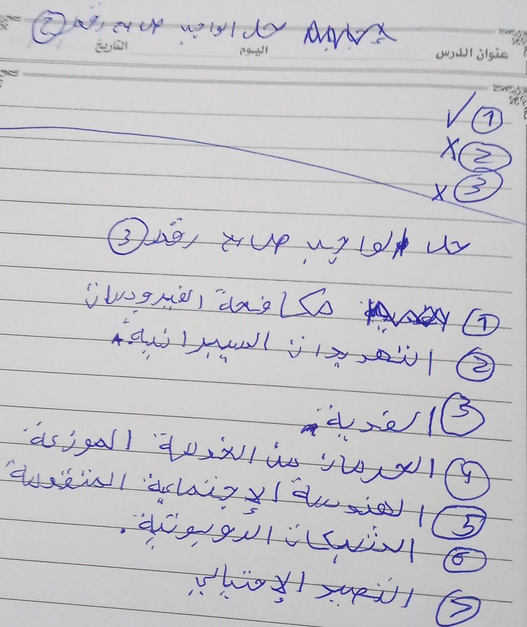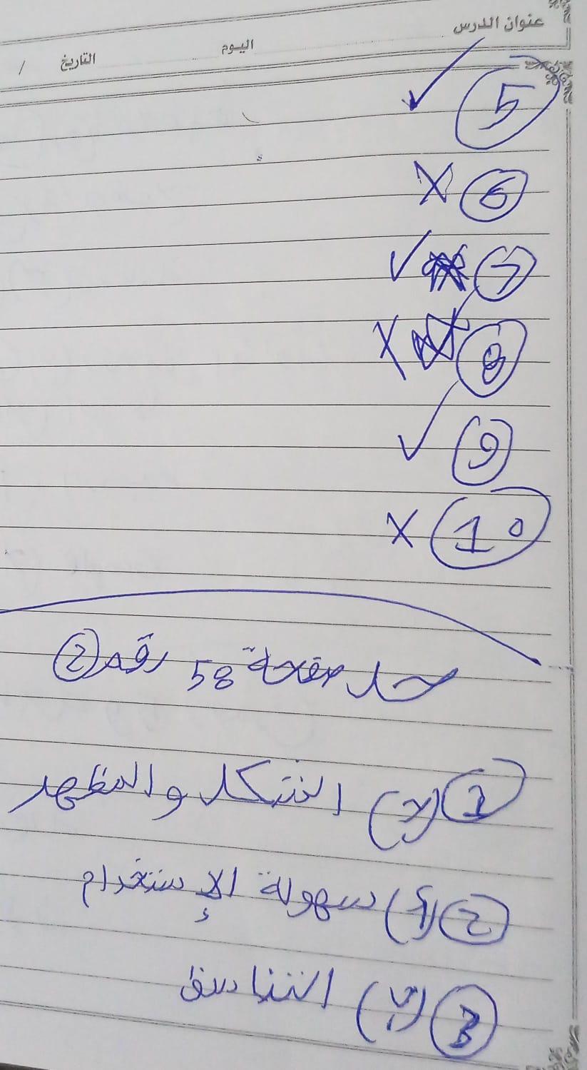 الواجب حل اسئلة الكتاب المدرسي ع الدرس