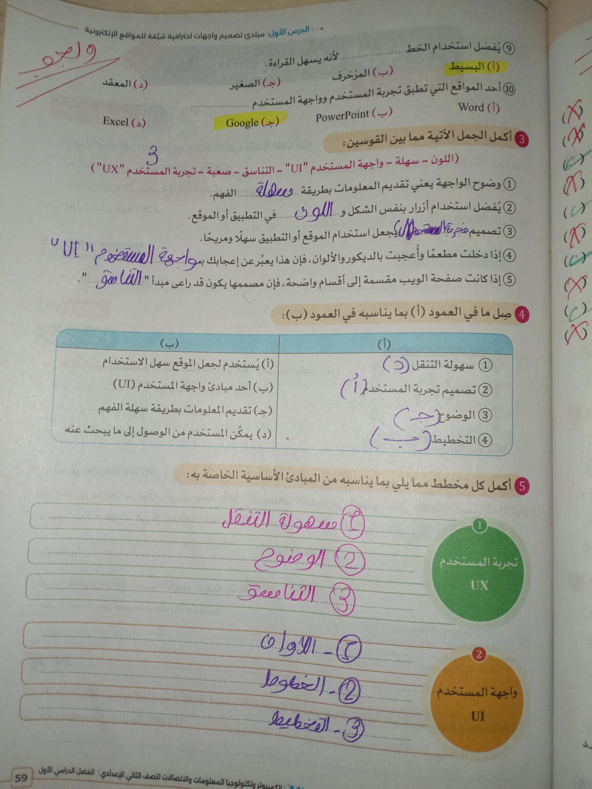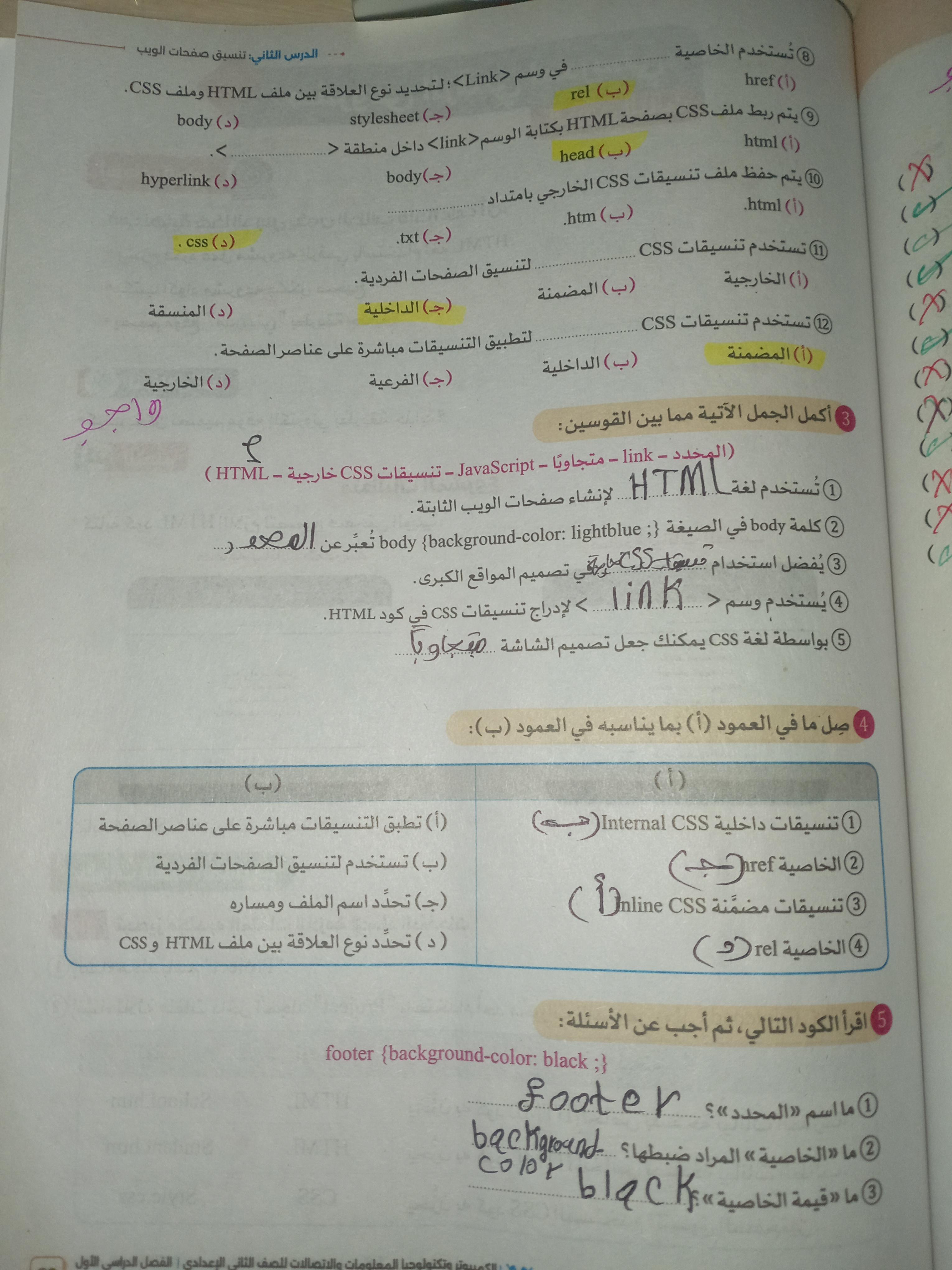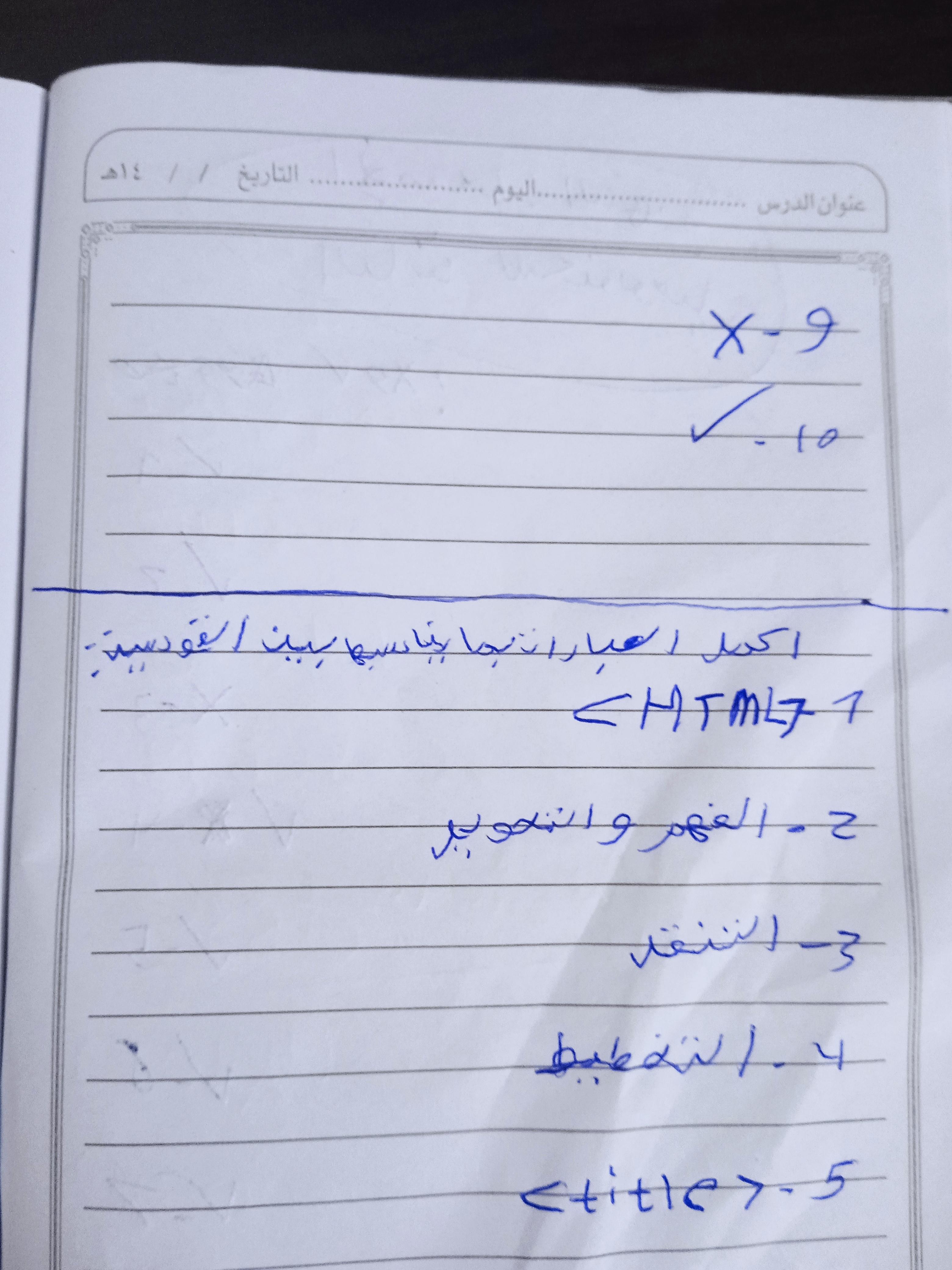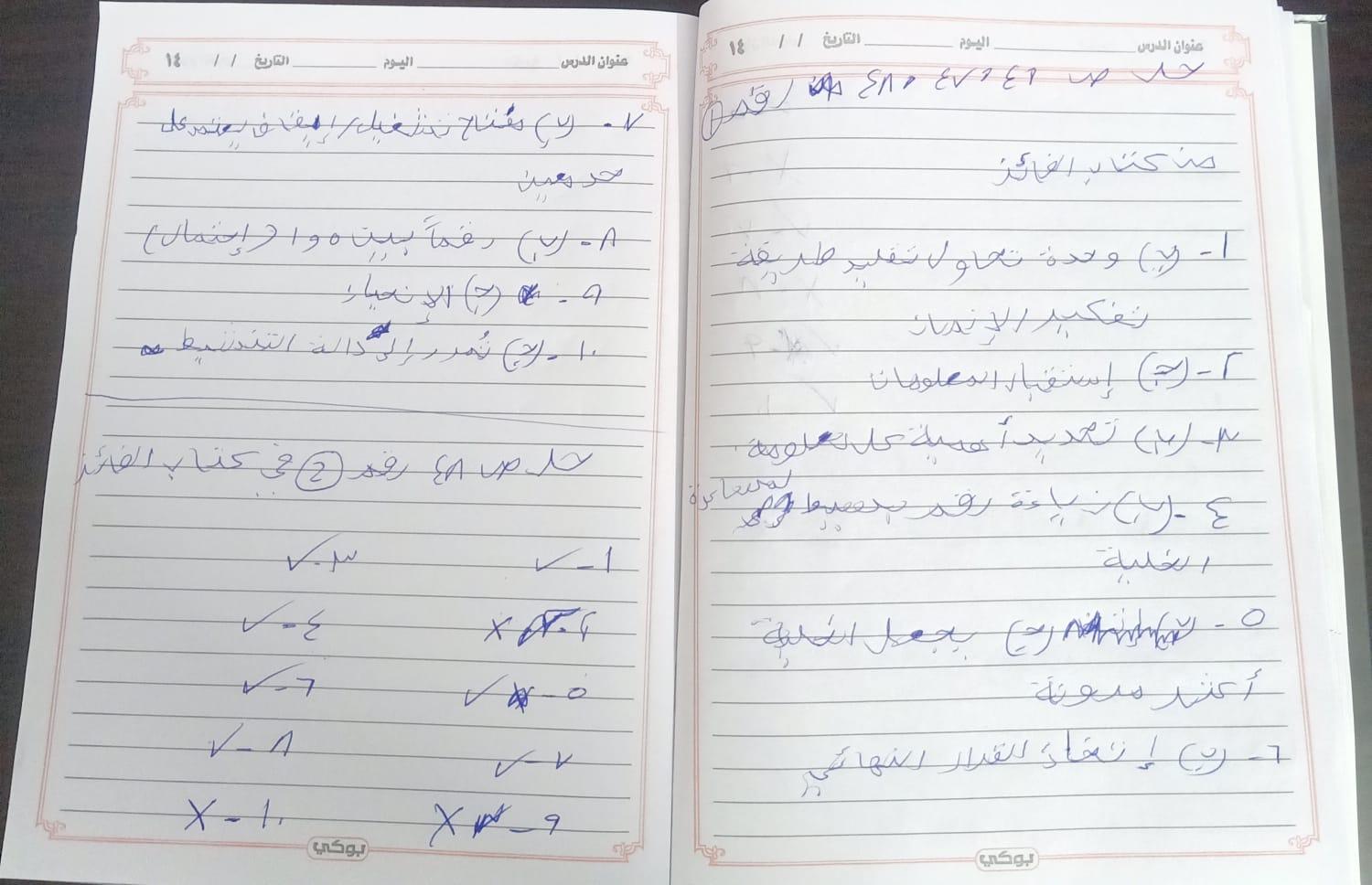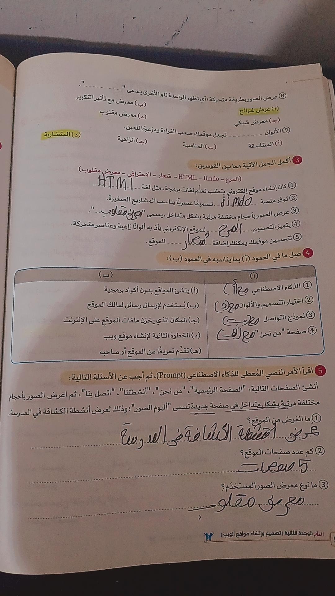 الواجب حل اسئلة الكتاب المدرسي ع الدرس