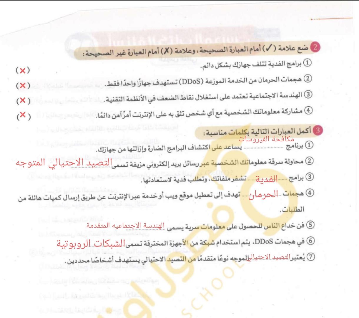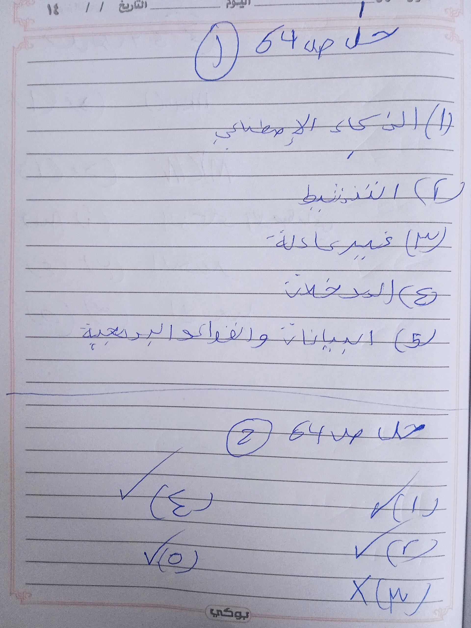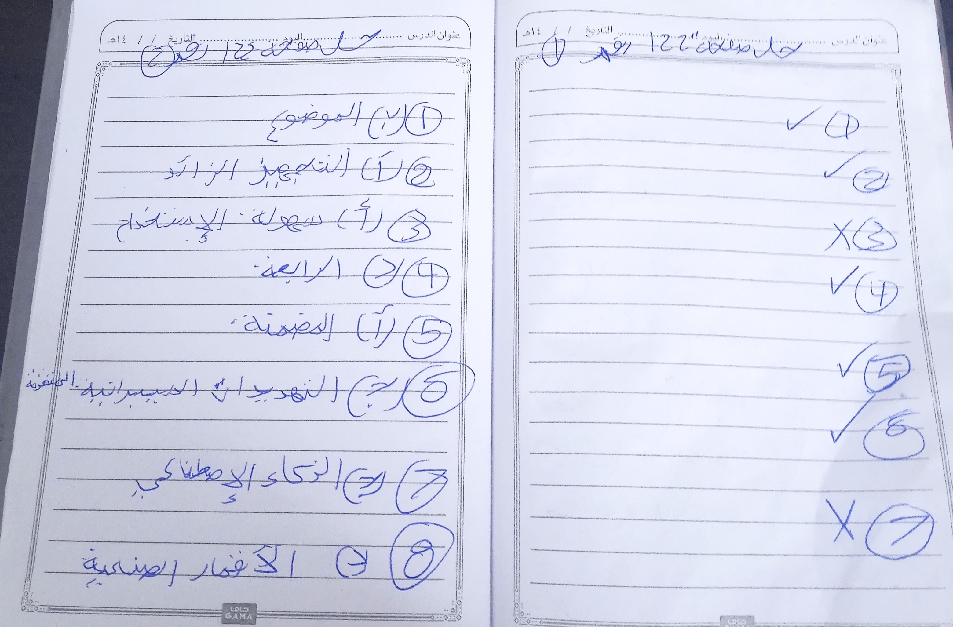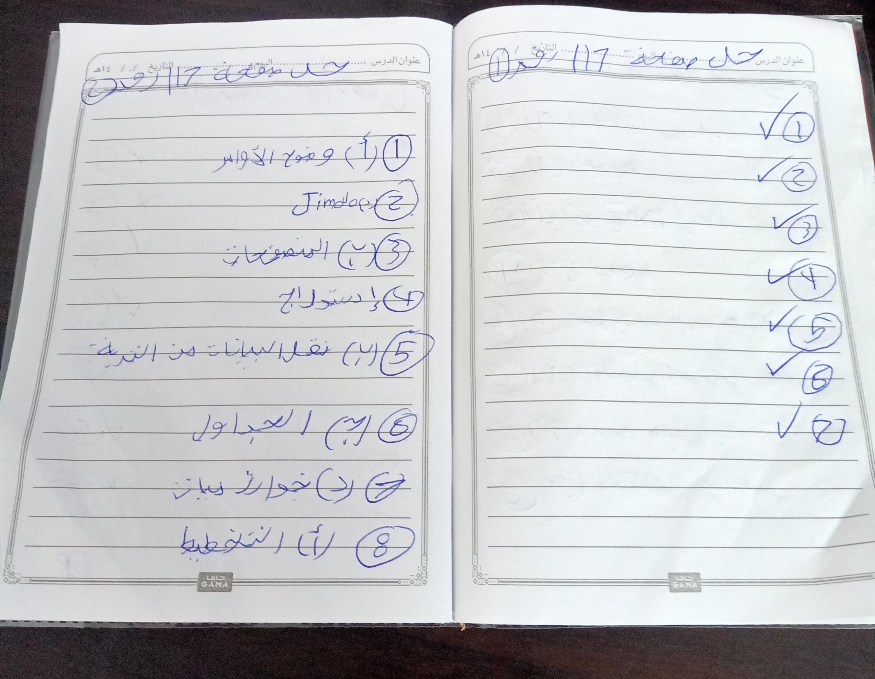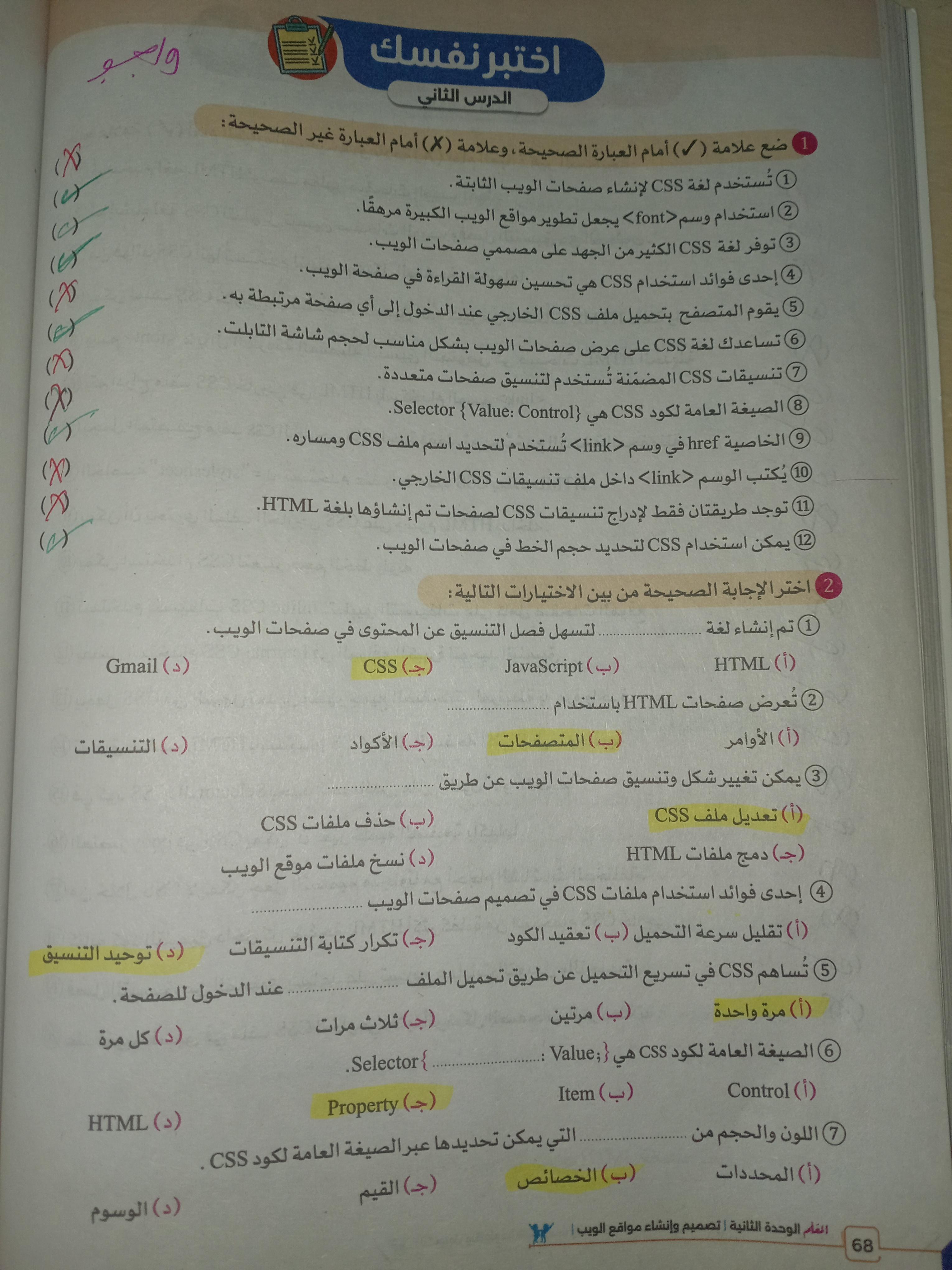 الواجب حل اسئلة الكتاب المدرسي ع الدرس