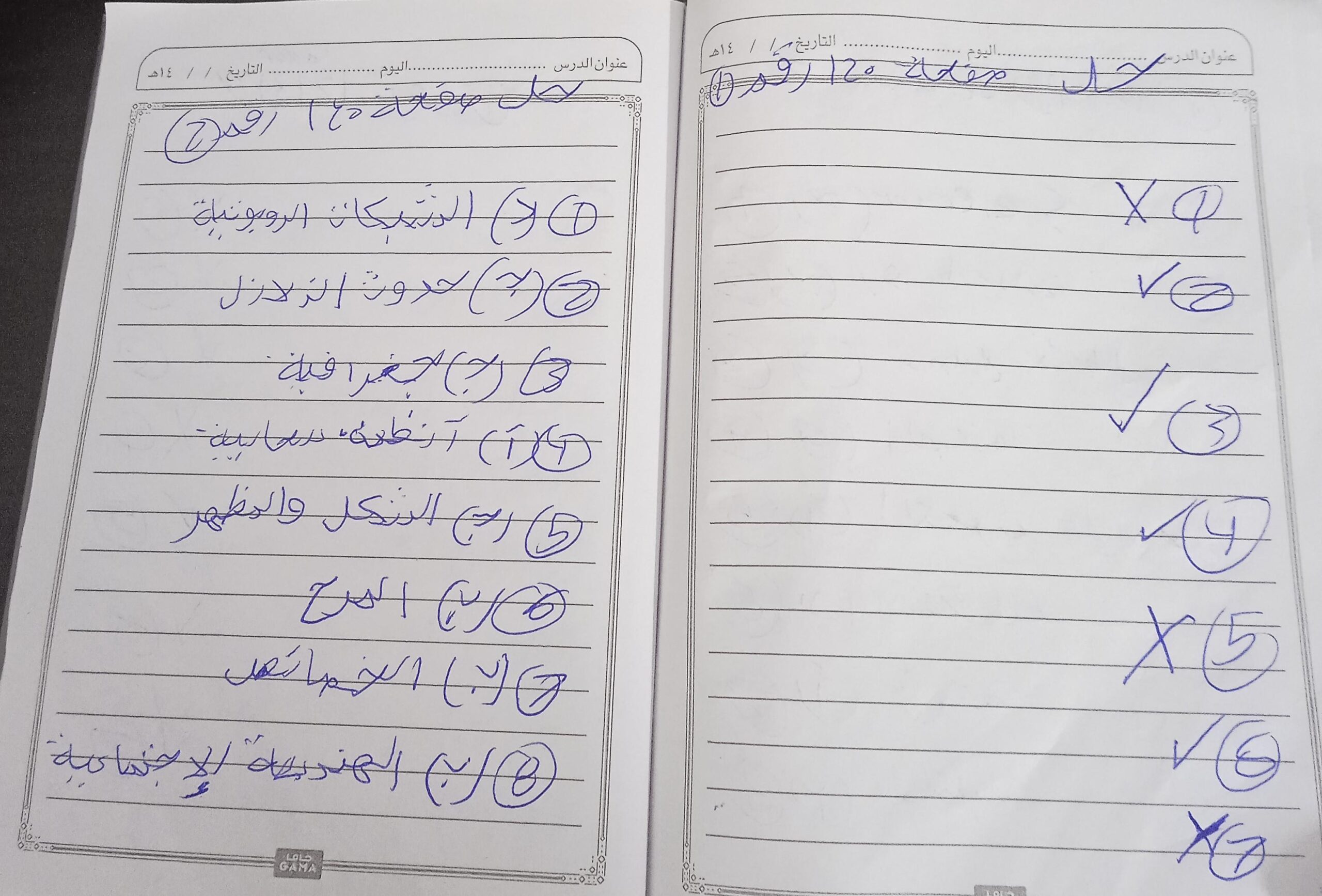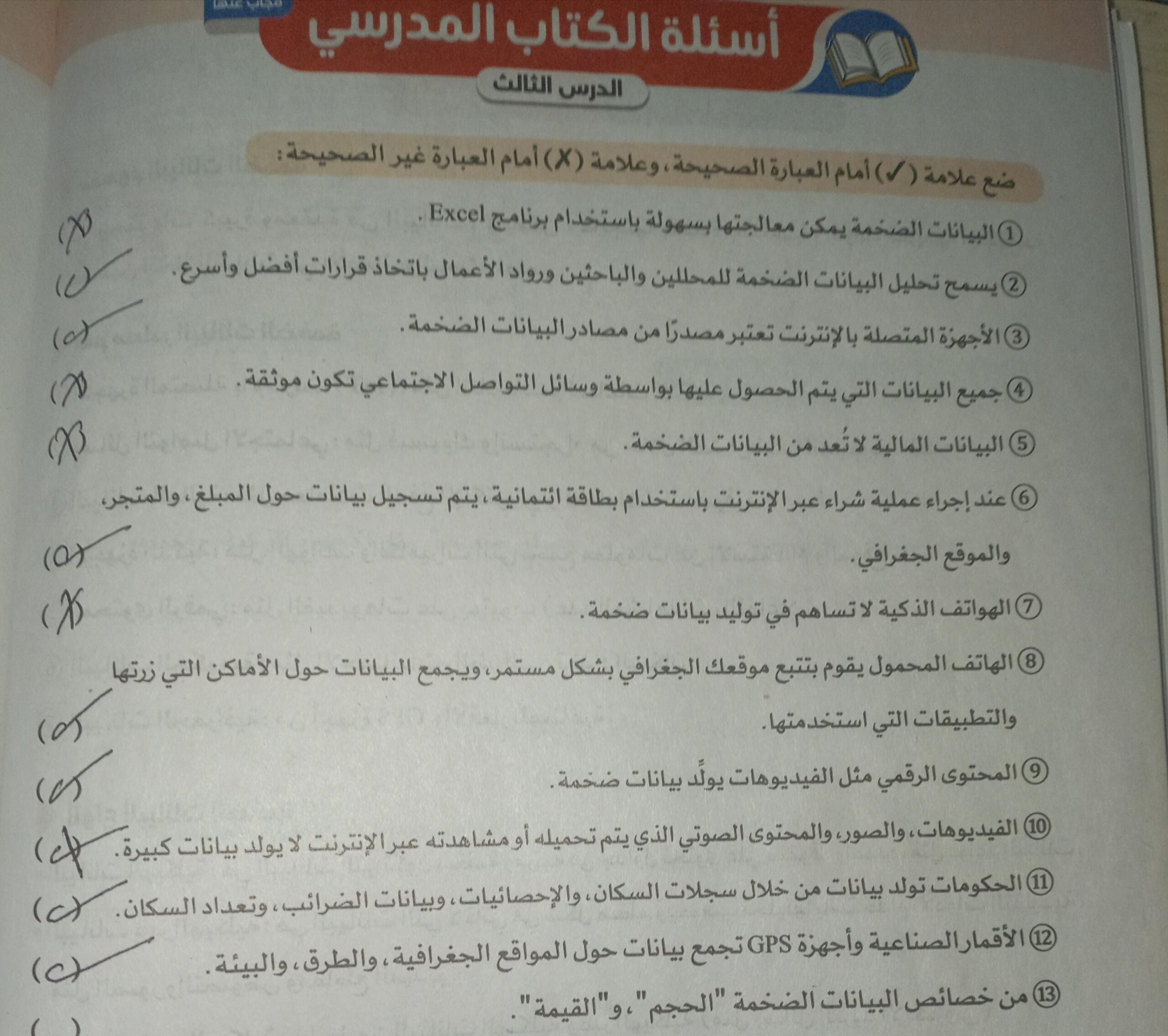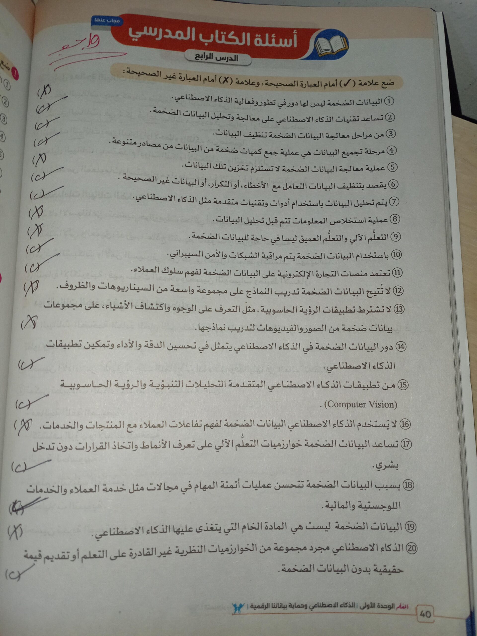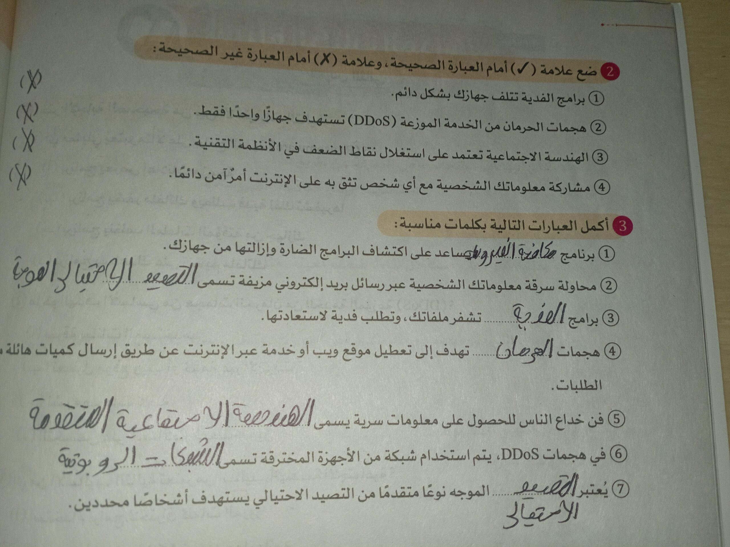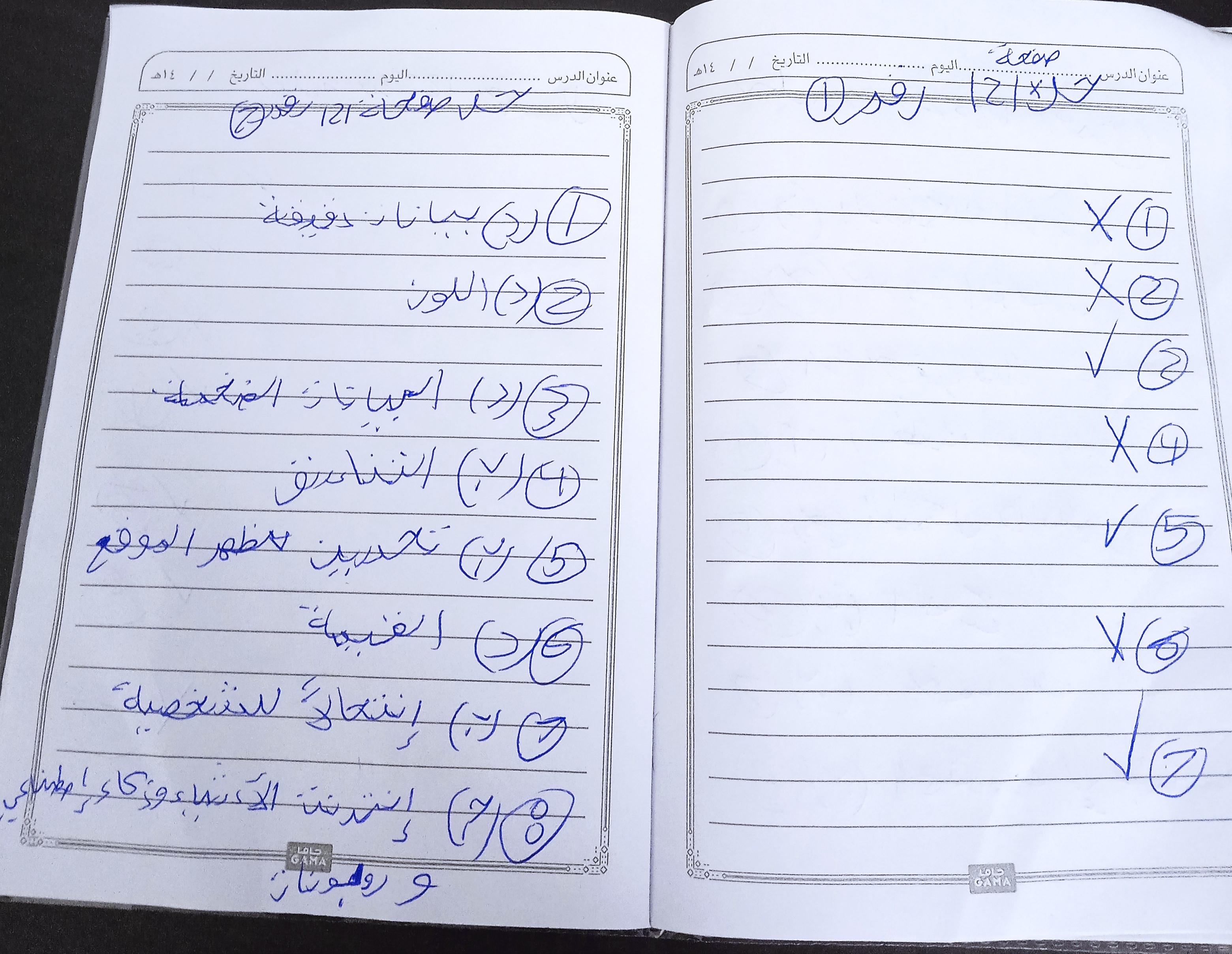 الواجب حل اسئلة الكتاب المدرسي ع الدرس