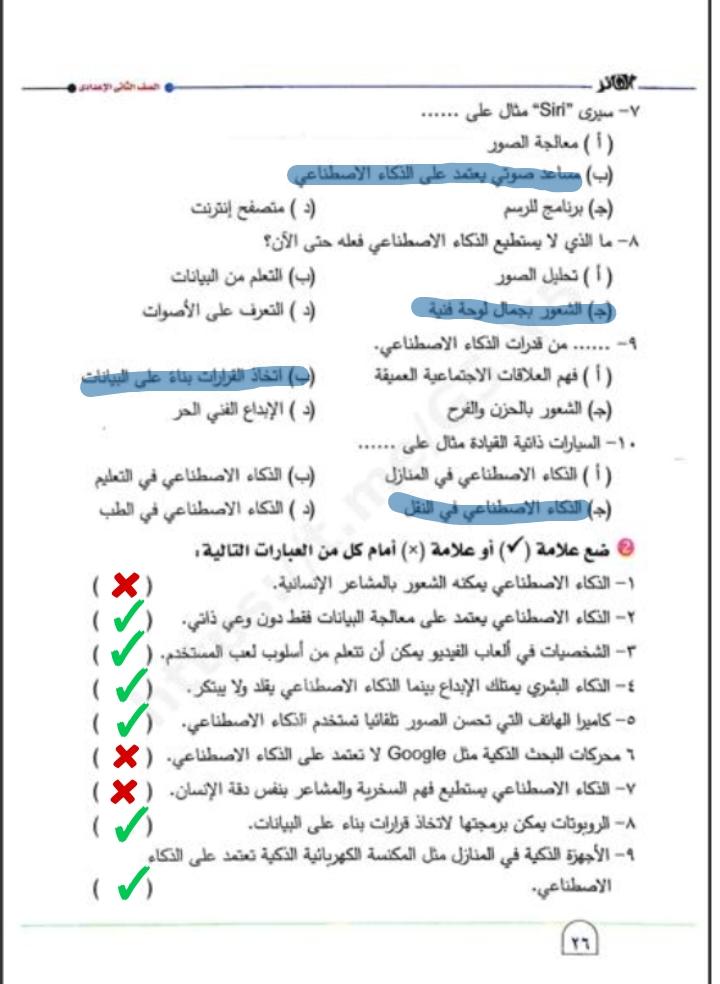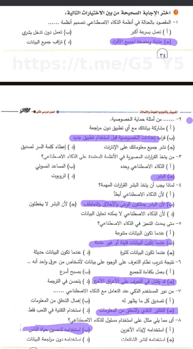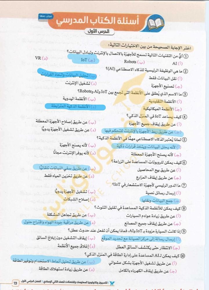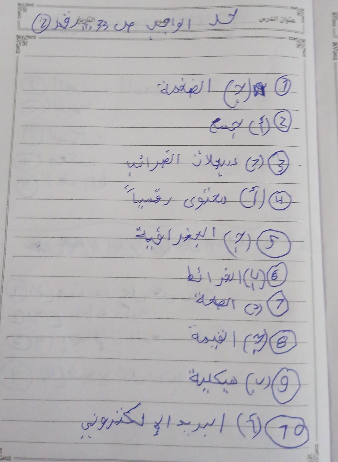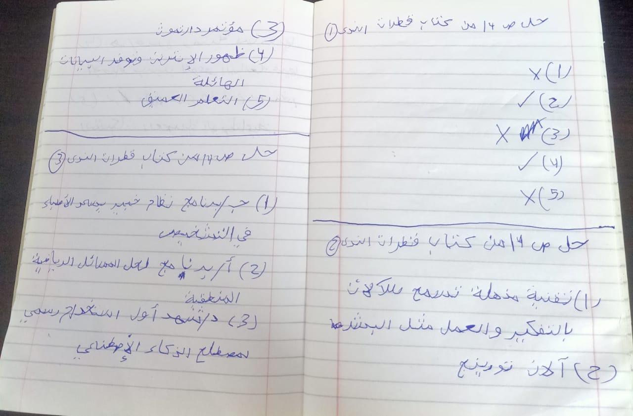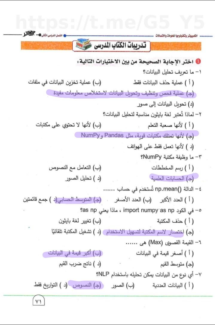 تم حل واجب التكنولوجيا والمعلومات + مش متأكد من الواجب ميه في الميه فا يمس صحيحلي الواجب وشوفي إذا كان أخطاء أم لا + أبعتيلي الكتاب يأما هحاول أتواصل معاكي بطريقه تانيه…