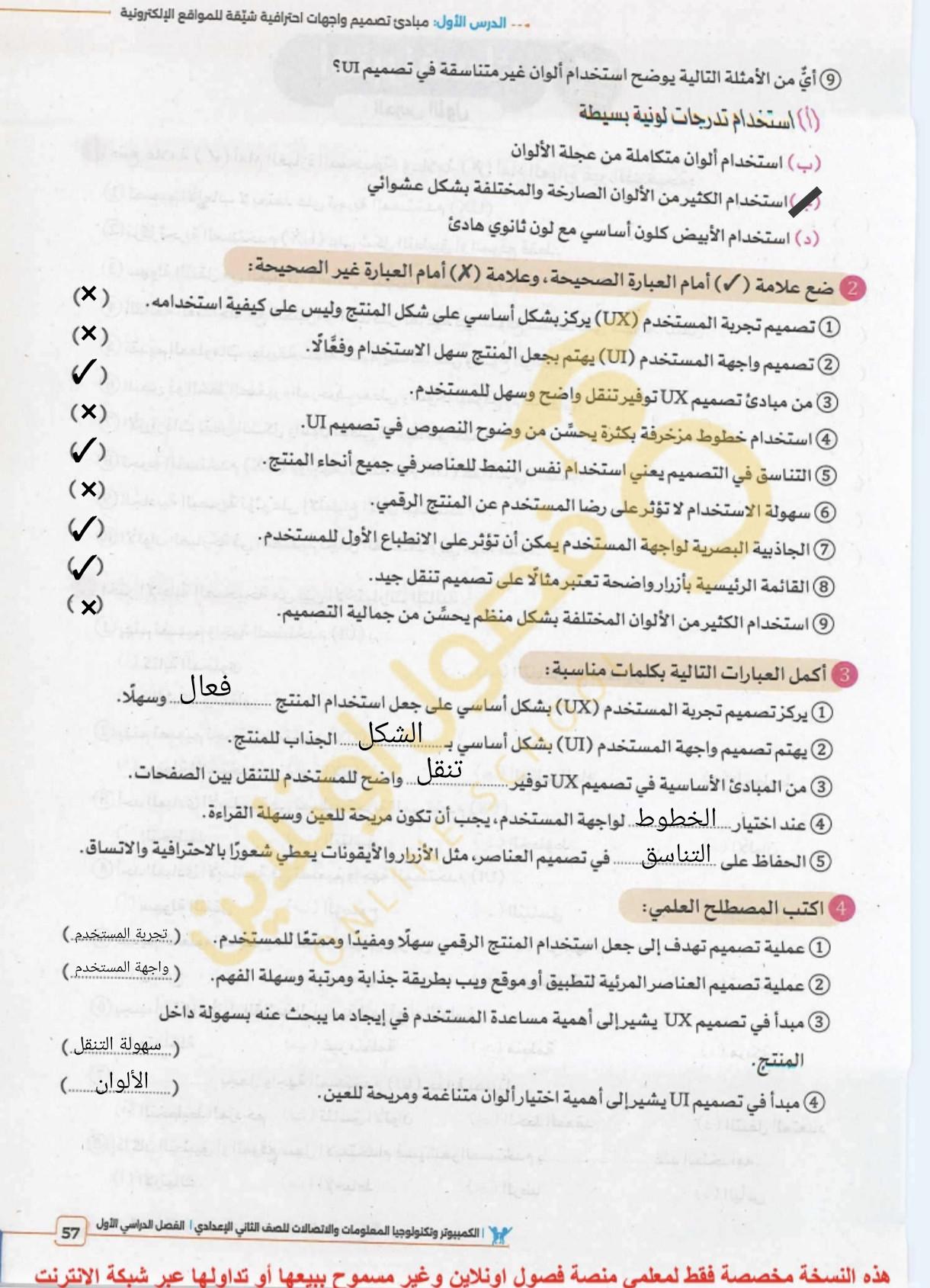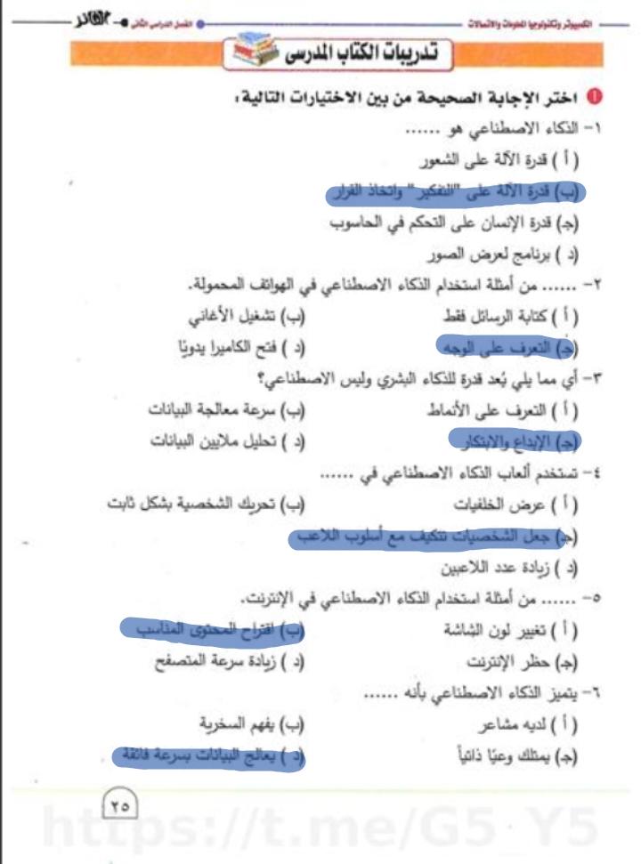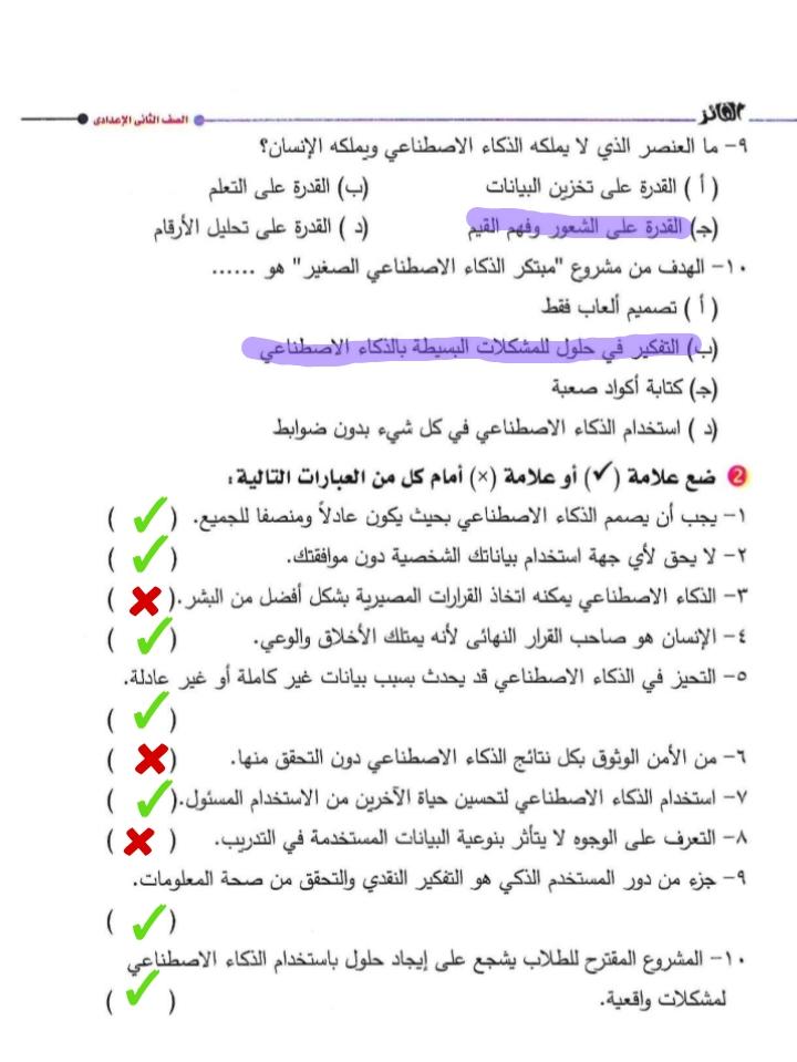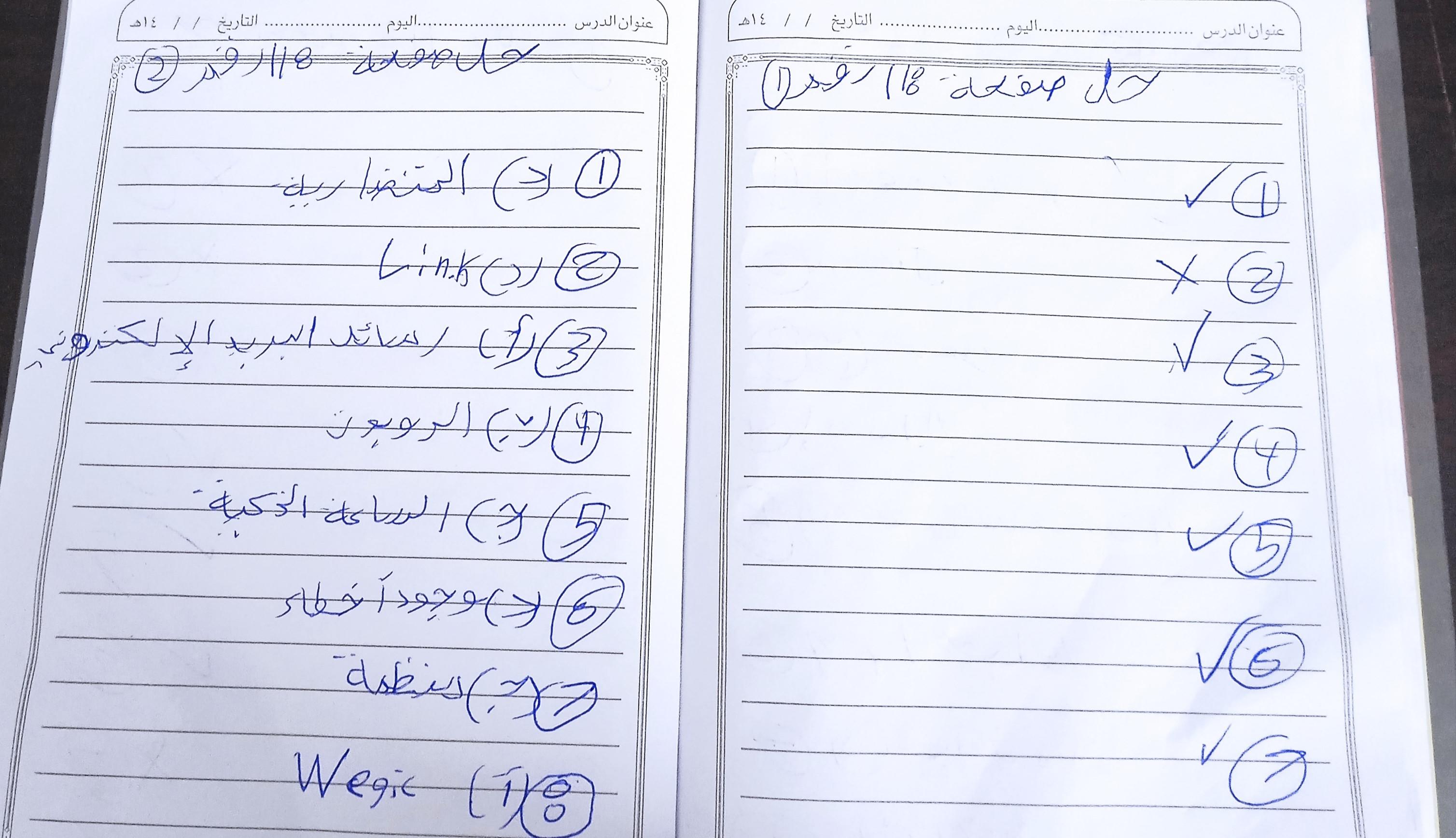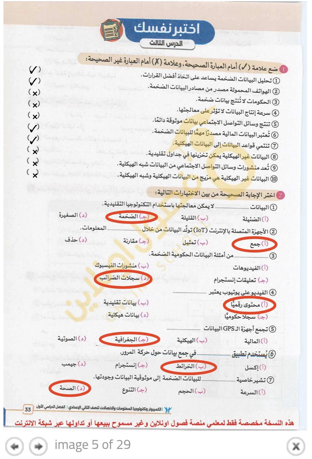 تم حل واجب التكنولوجيا والمعلومات + مش متأكد من الواجب ميه في الميه فا يمس صحيحلي الواجب وشوفي إذا كان أخطاء أم لا + أبعتيلي الكتاب يأما هحاول أتواصل معاكي بطريقه تانيه…