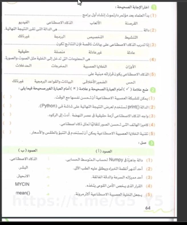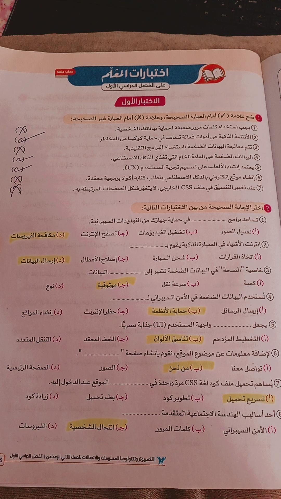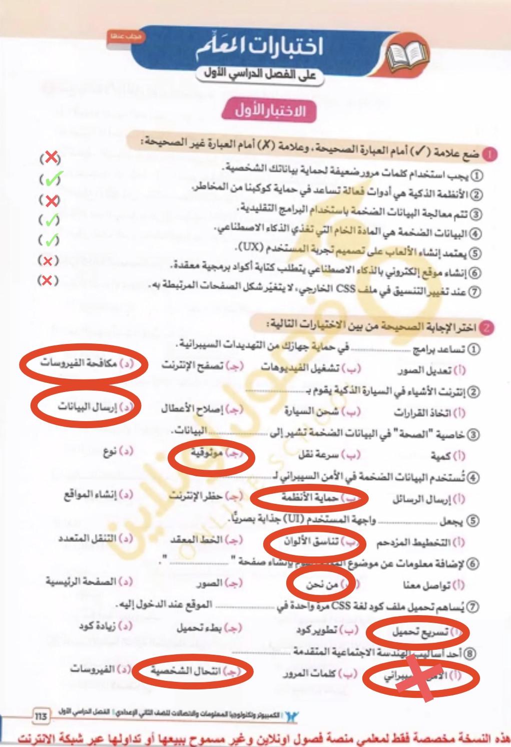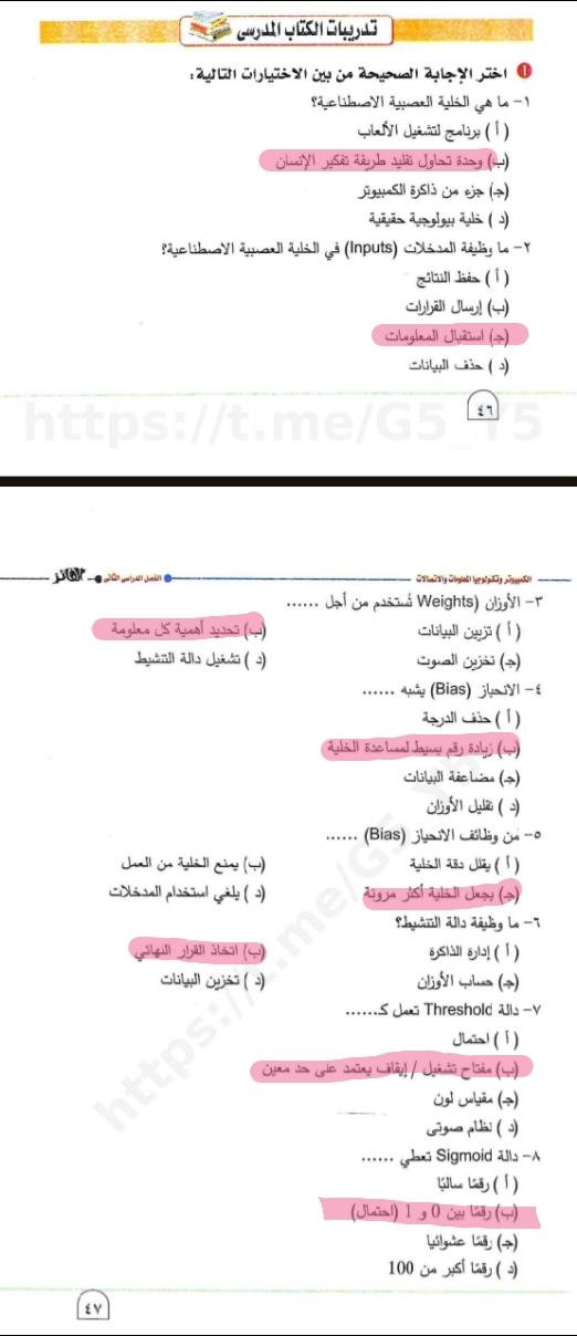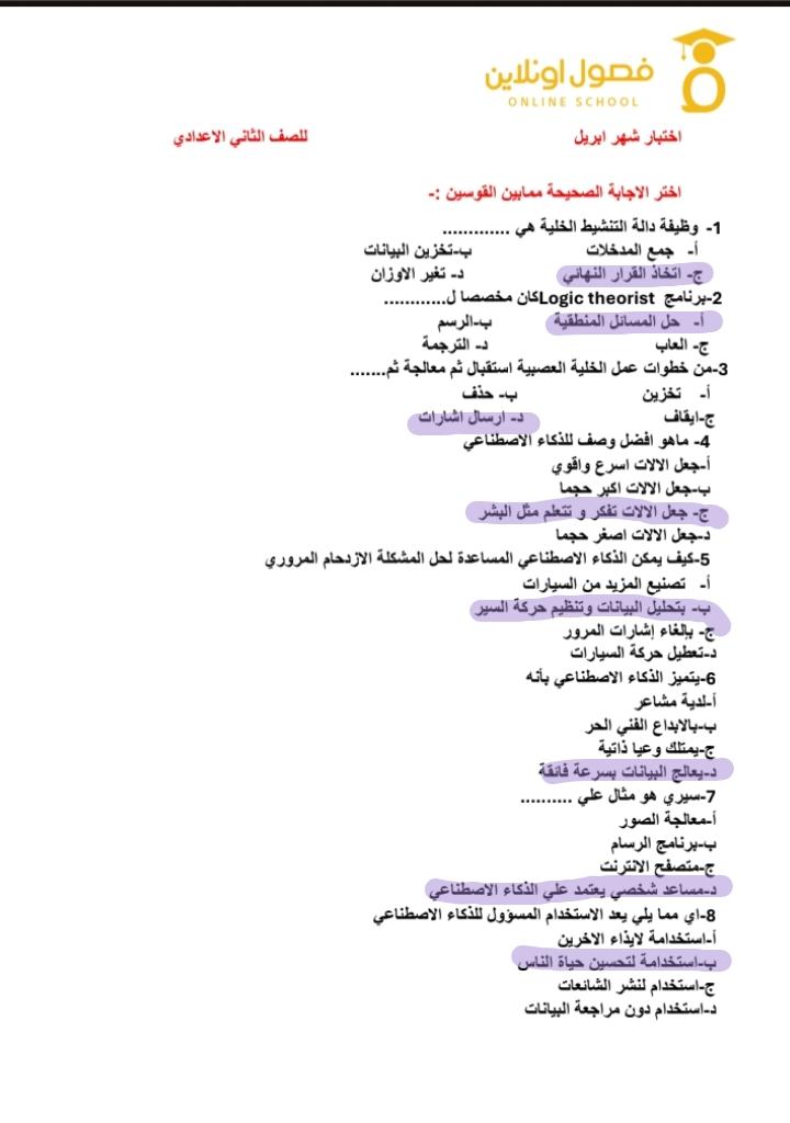 تم حل واجب التكنولوجيا والمعلومات + مش متأكد من الواجب ميه في الميه فا يمس صحيحلي الواجب وشوفي إذا كان أخطاء أم لا + أبعتيلي الكتاب يأما هحاول أتواصل معاكي بطريقه تانيه…