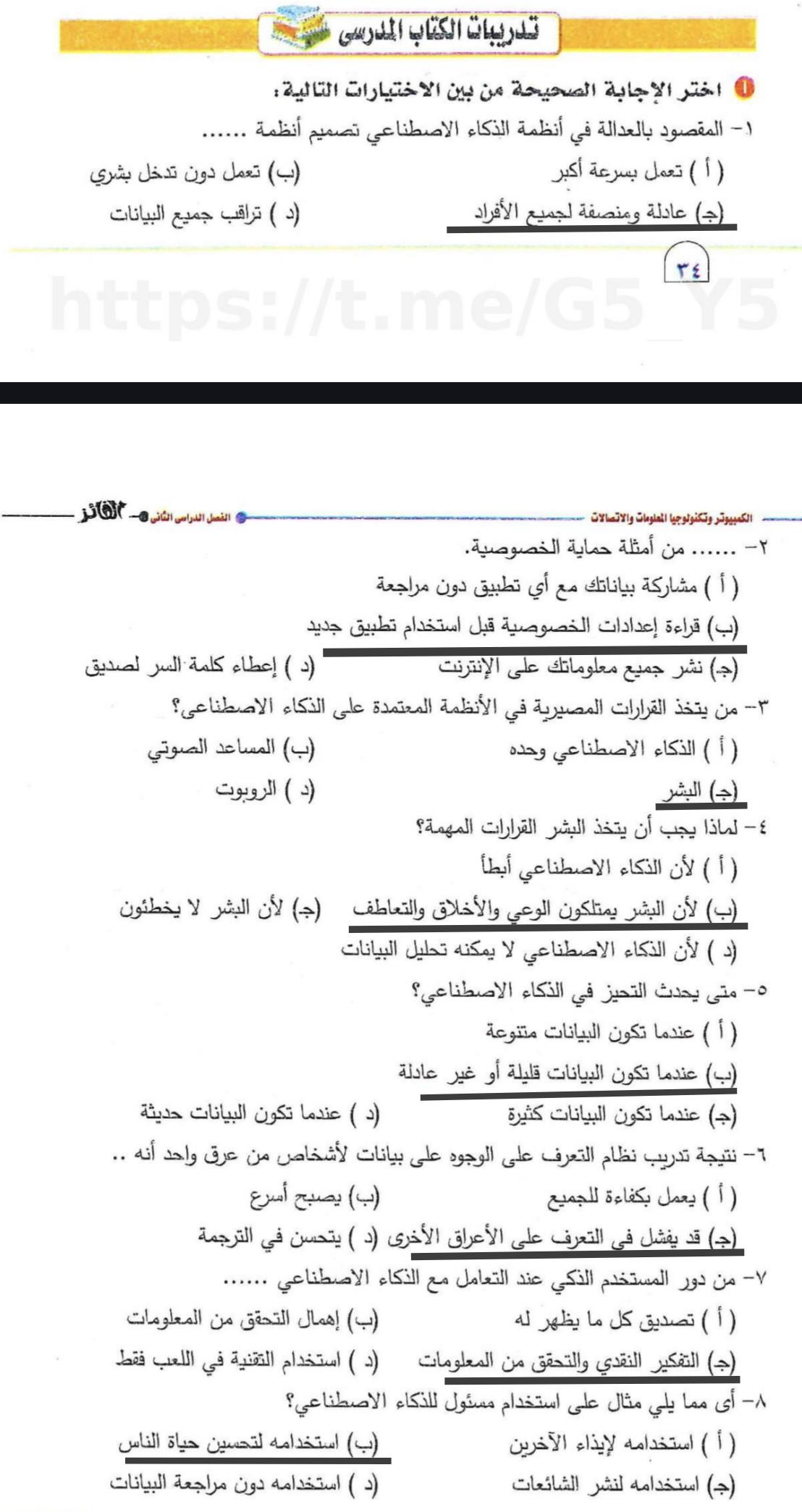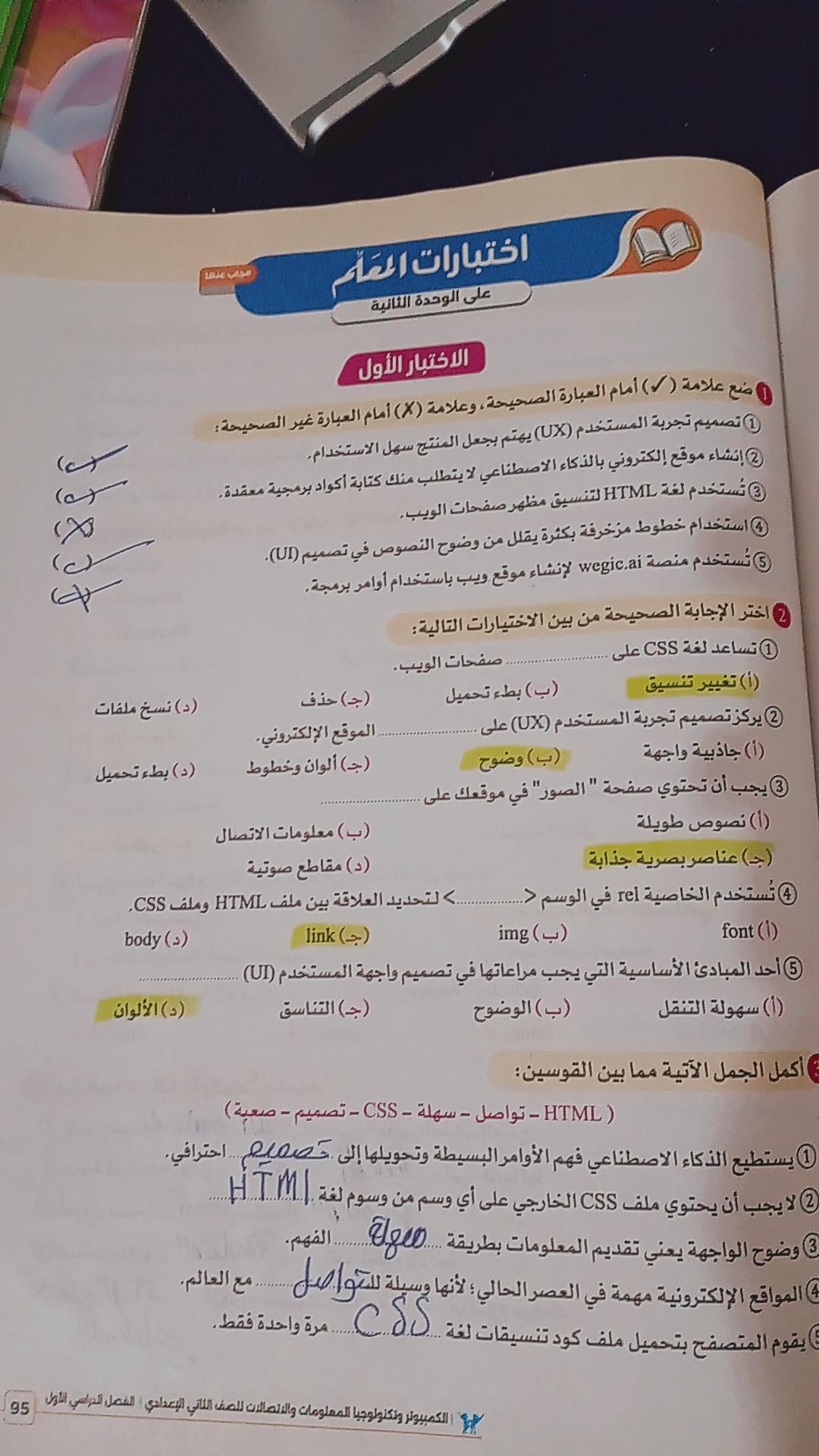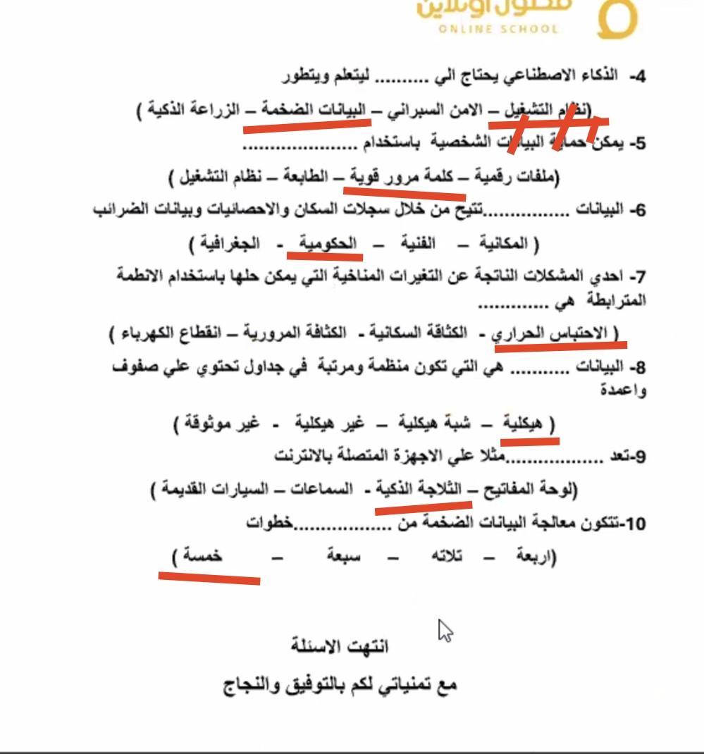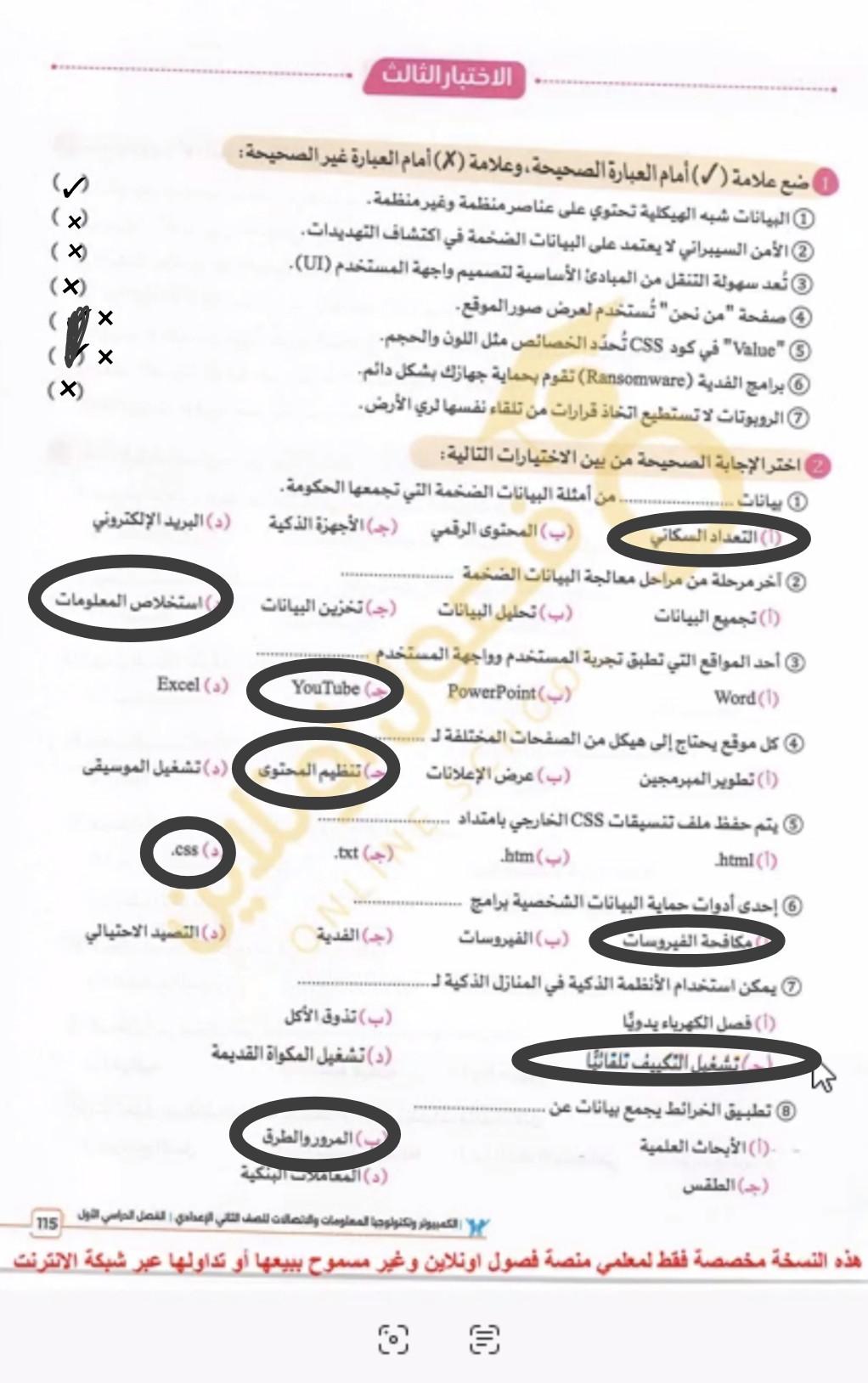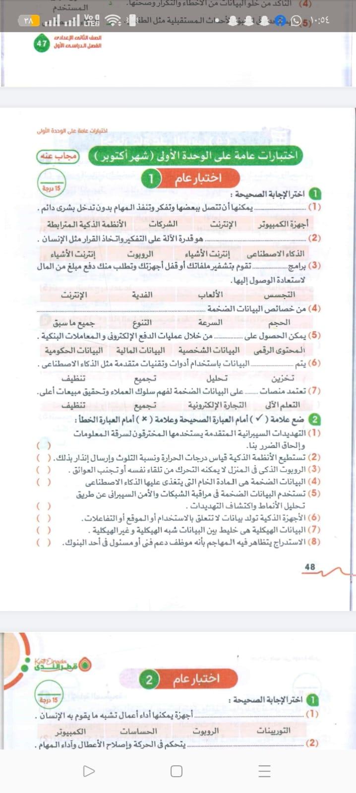 تم حل واجب التكنولوجيا والمعلومات + مش متأكد من الواجب ميه في الميه فا يمس صحيحلي الواجب وشوفي إذا كان أخطاء أم لا + أبعتيلي الكتاب يأما هحاول أتواصل معاكي بطريقه تانيه…