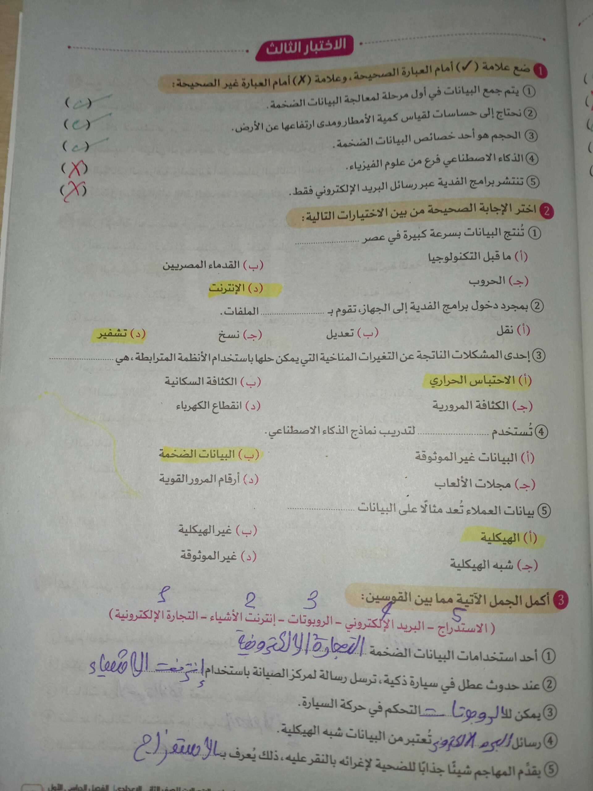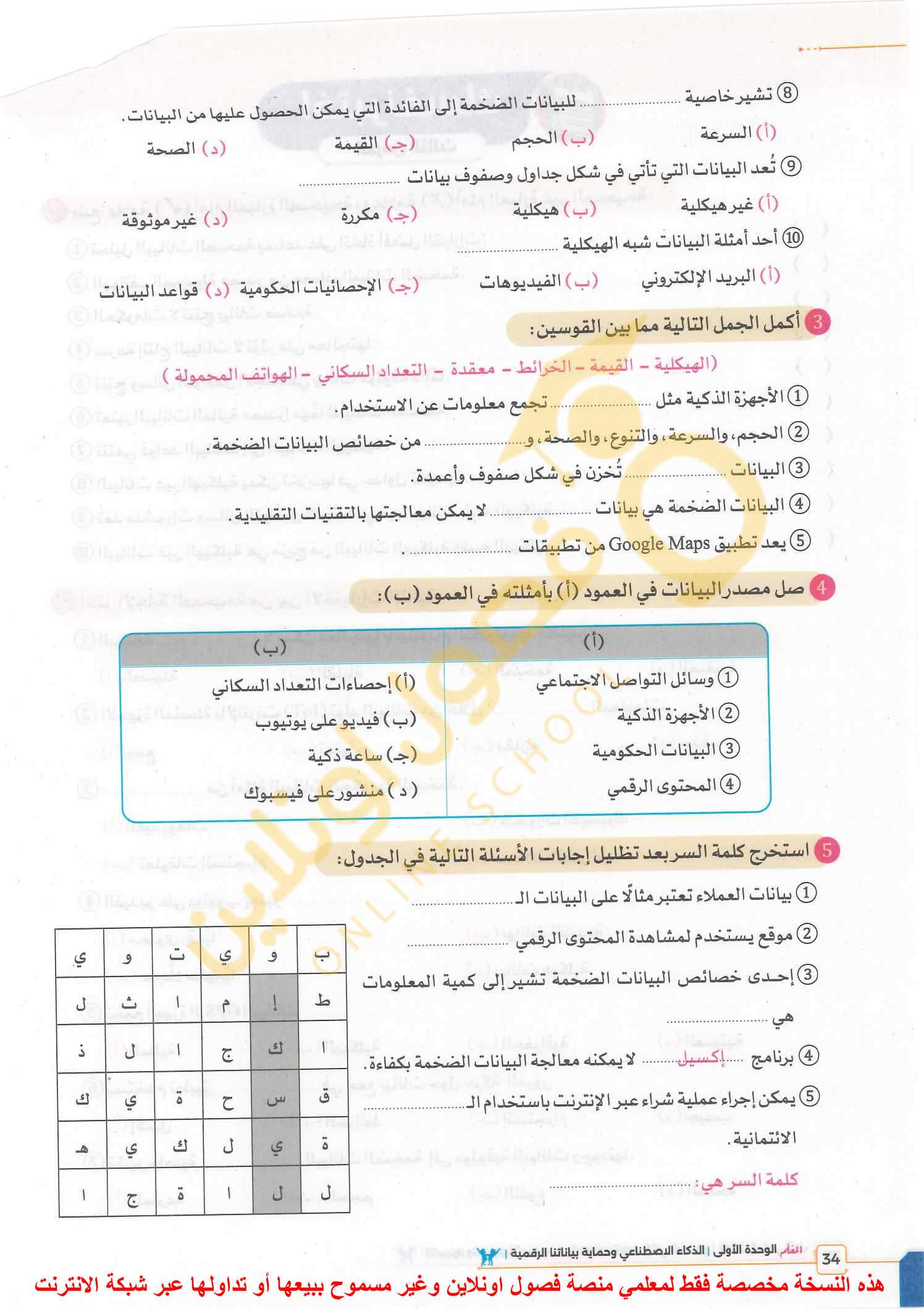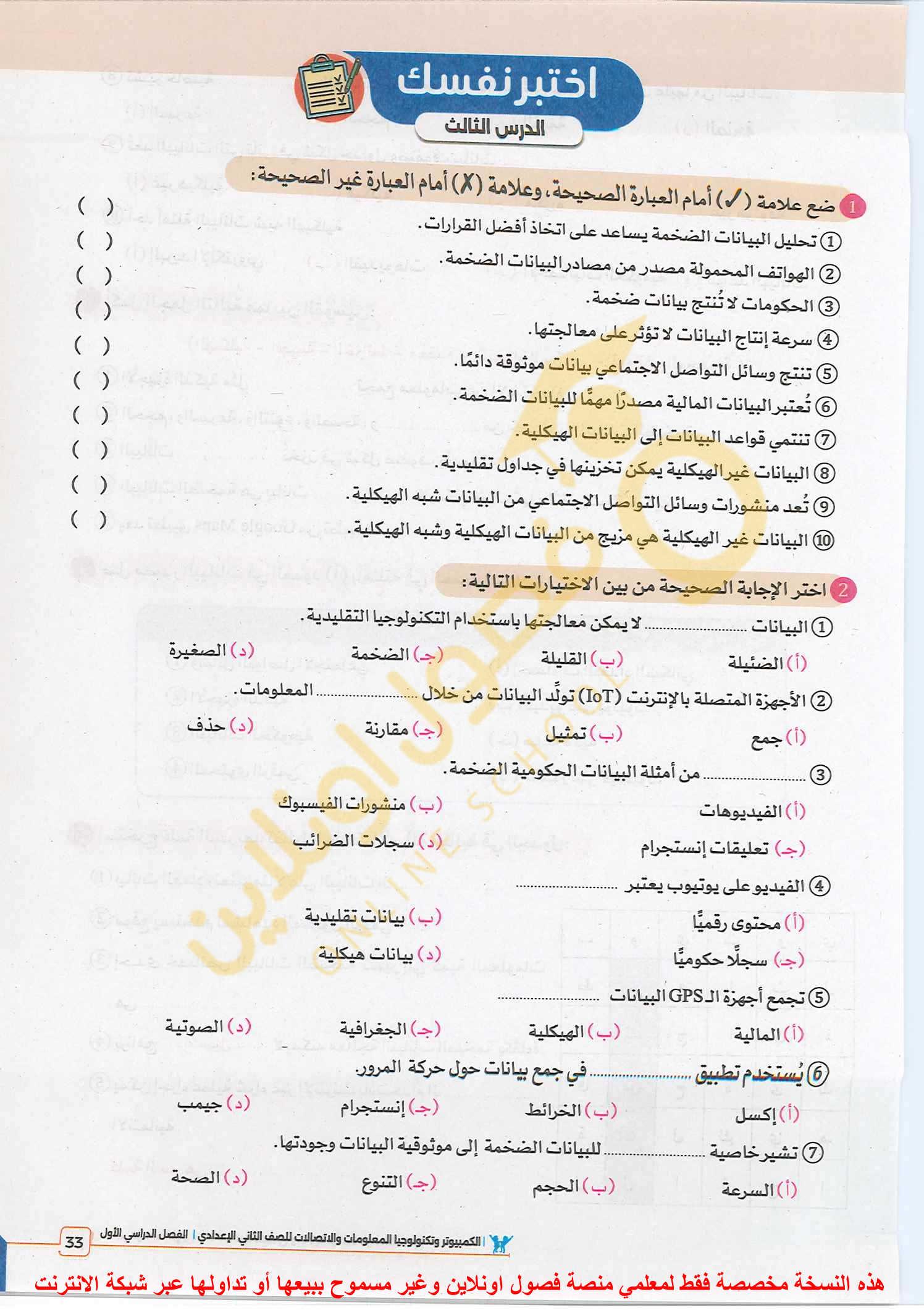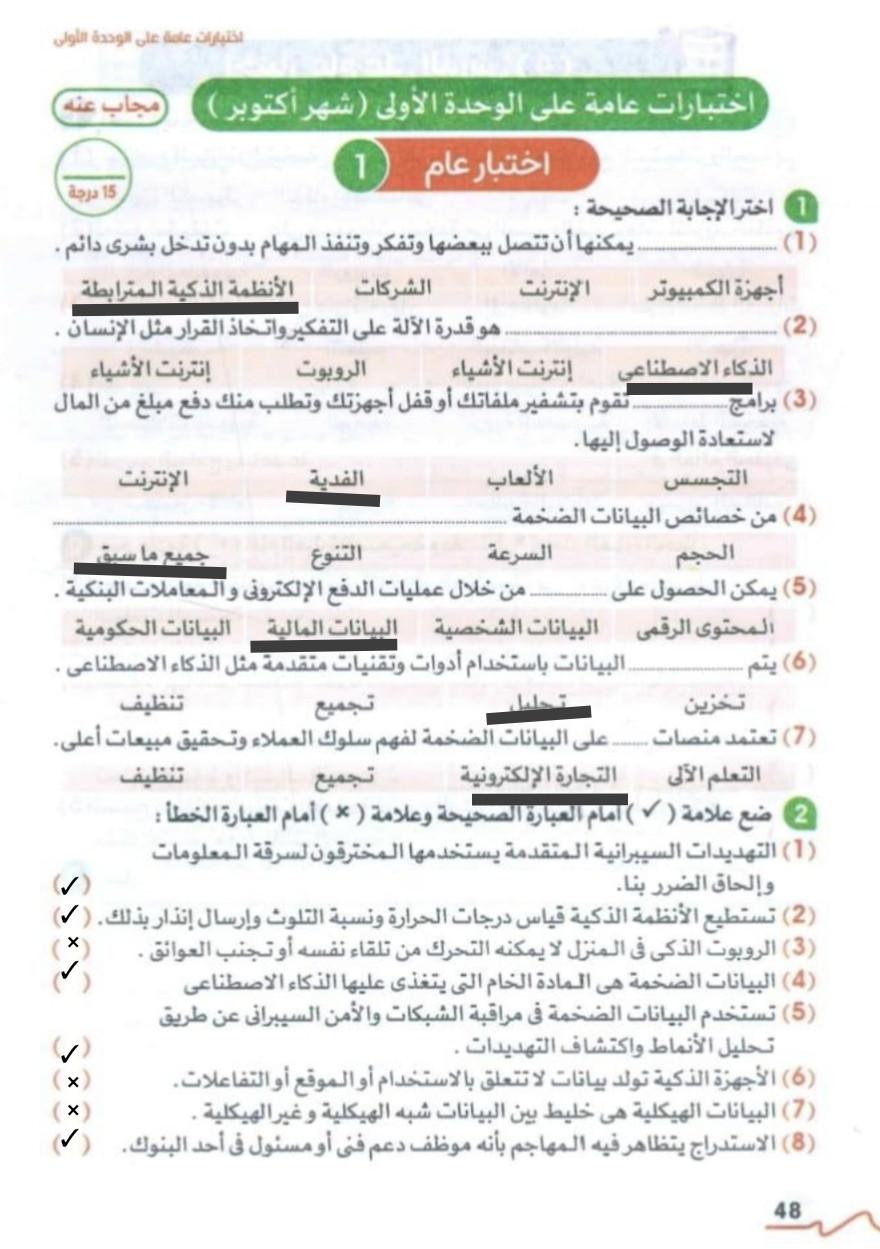 تم حل واجب التكنولوجيا والمعلومات + مش متأكد من الواجب ميه في الميه فا يمس صحيحلي الواجب وشوفي إذا كان أخطاء أم لا + أبعتيلي الكتاب يأما هحاول أتواصل معاكي بطريقه تانيه…