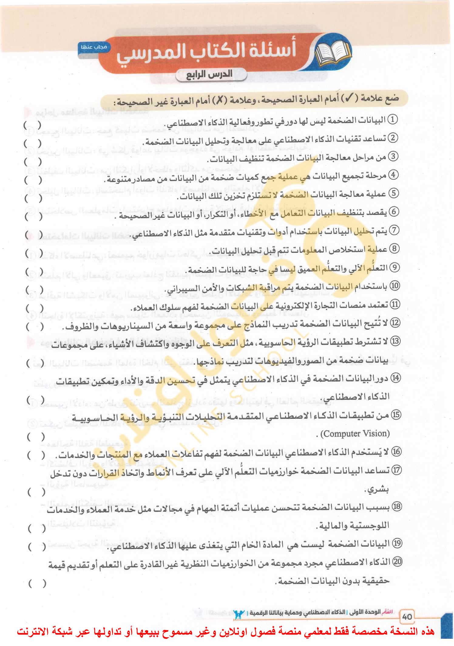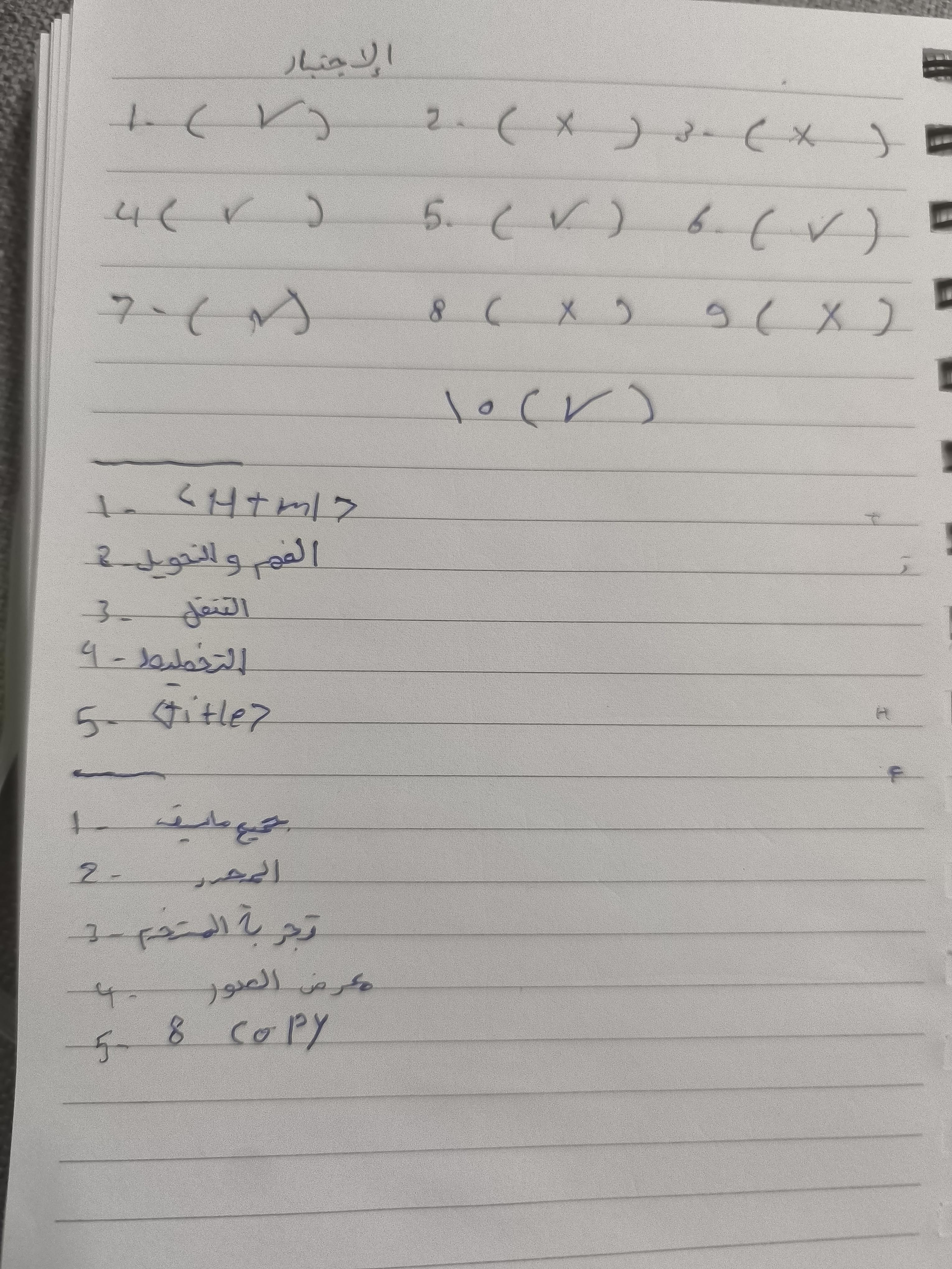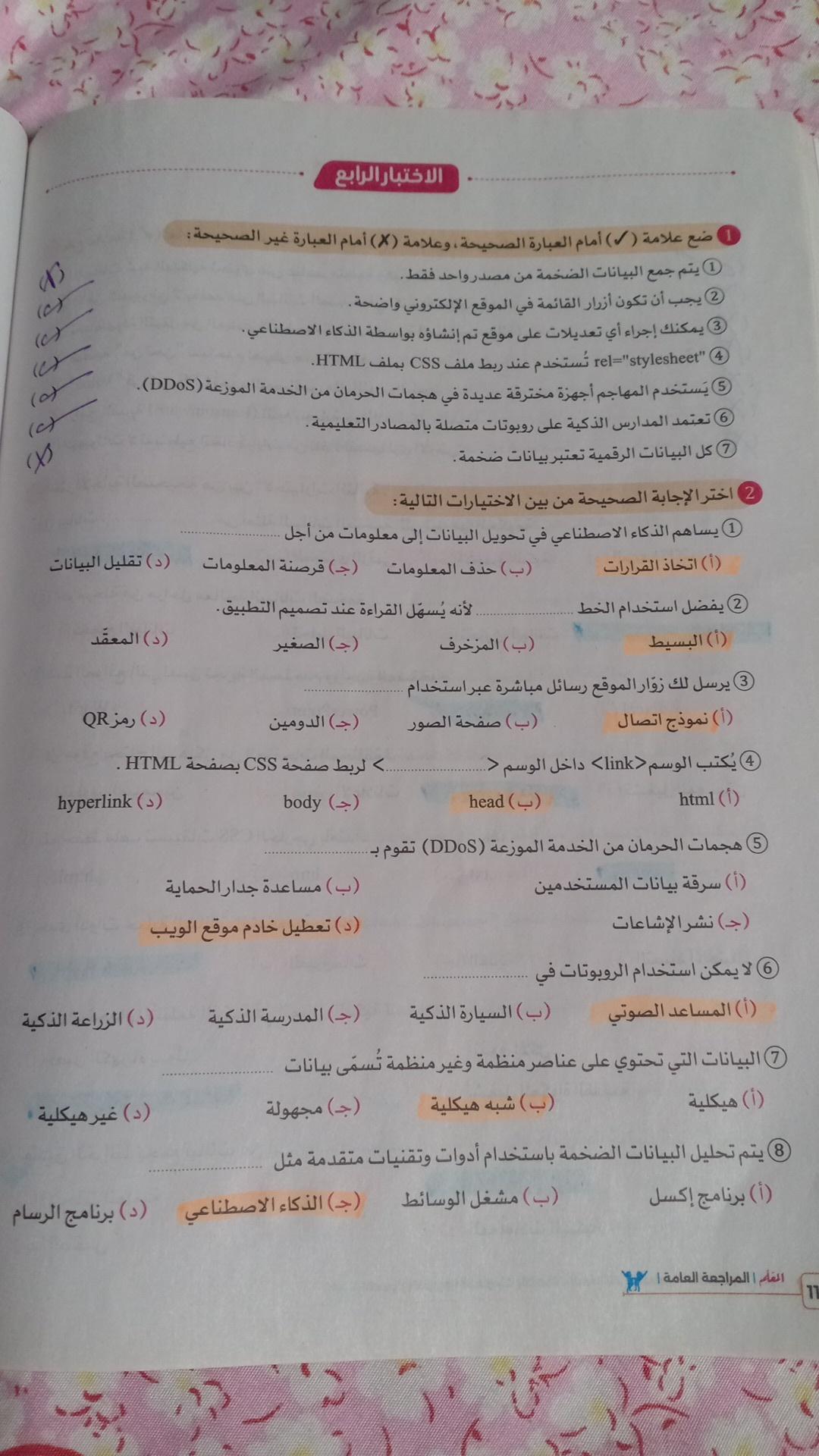 اختبار الحصه. 🌷سؤال 5 في صح وخطا الاجابة: خطأ