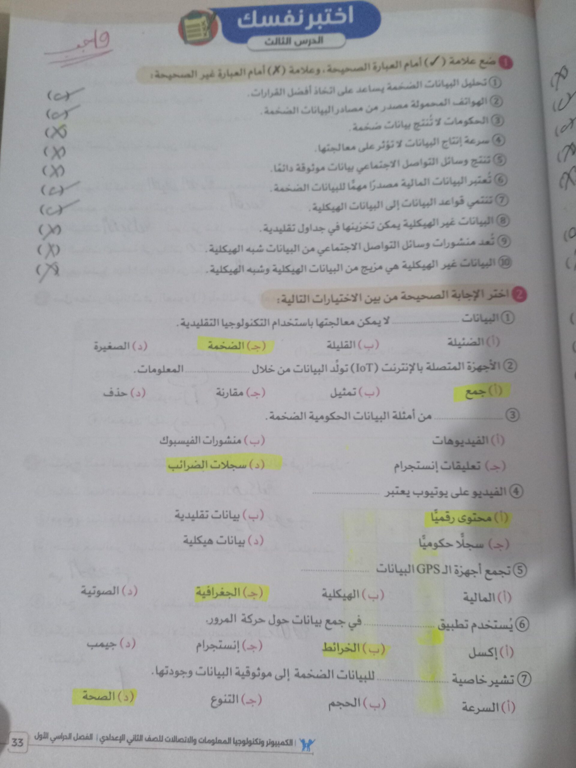إجابات الواجب ص 33 و 34