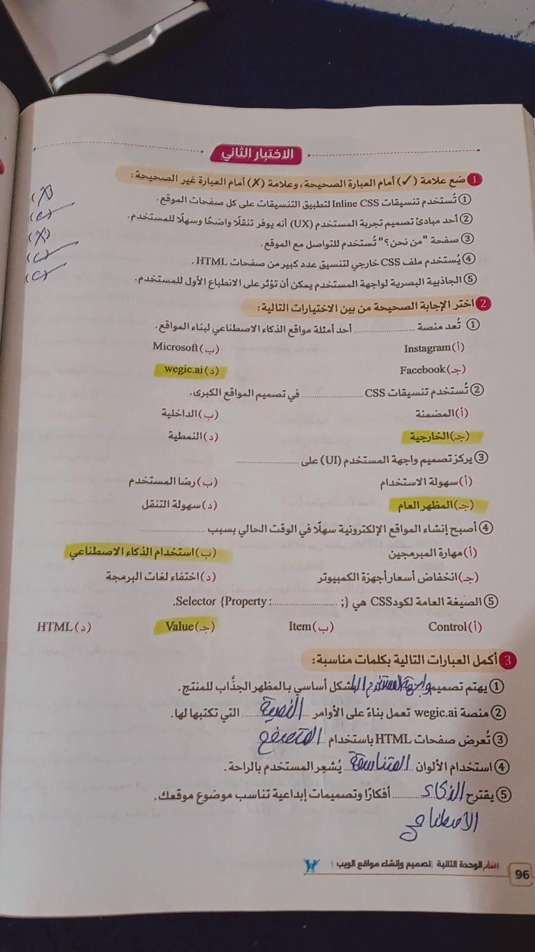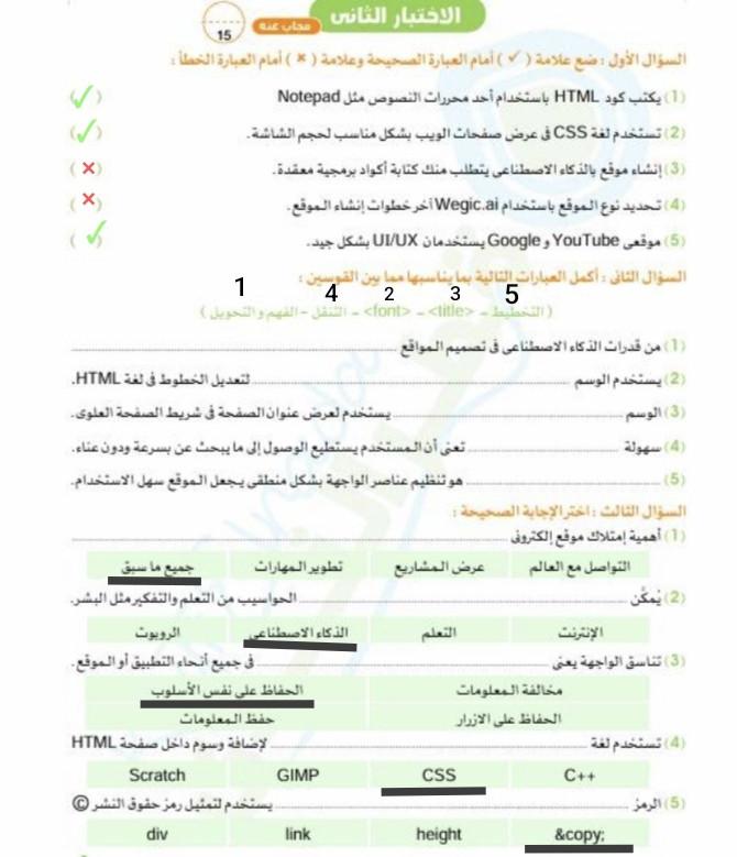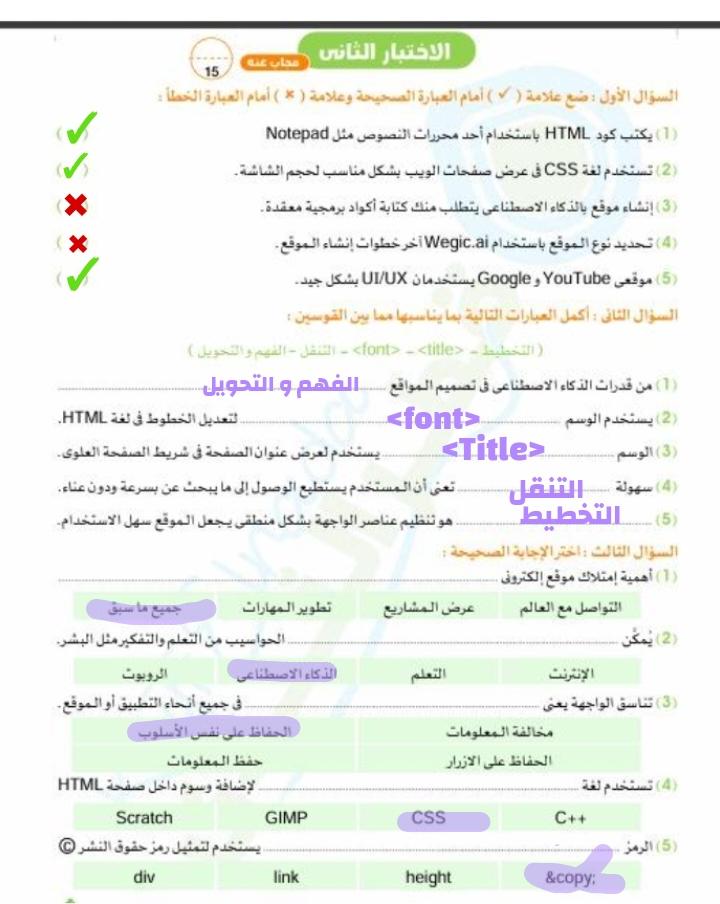 تم حل الاختبار الثاني وفي حاجه كنت محتاجها منك يا مس تحت التعليق ده