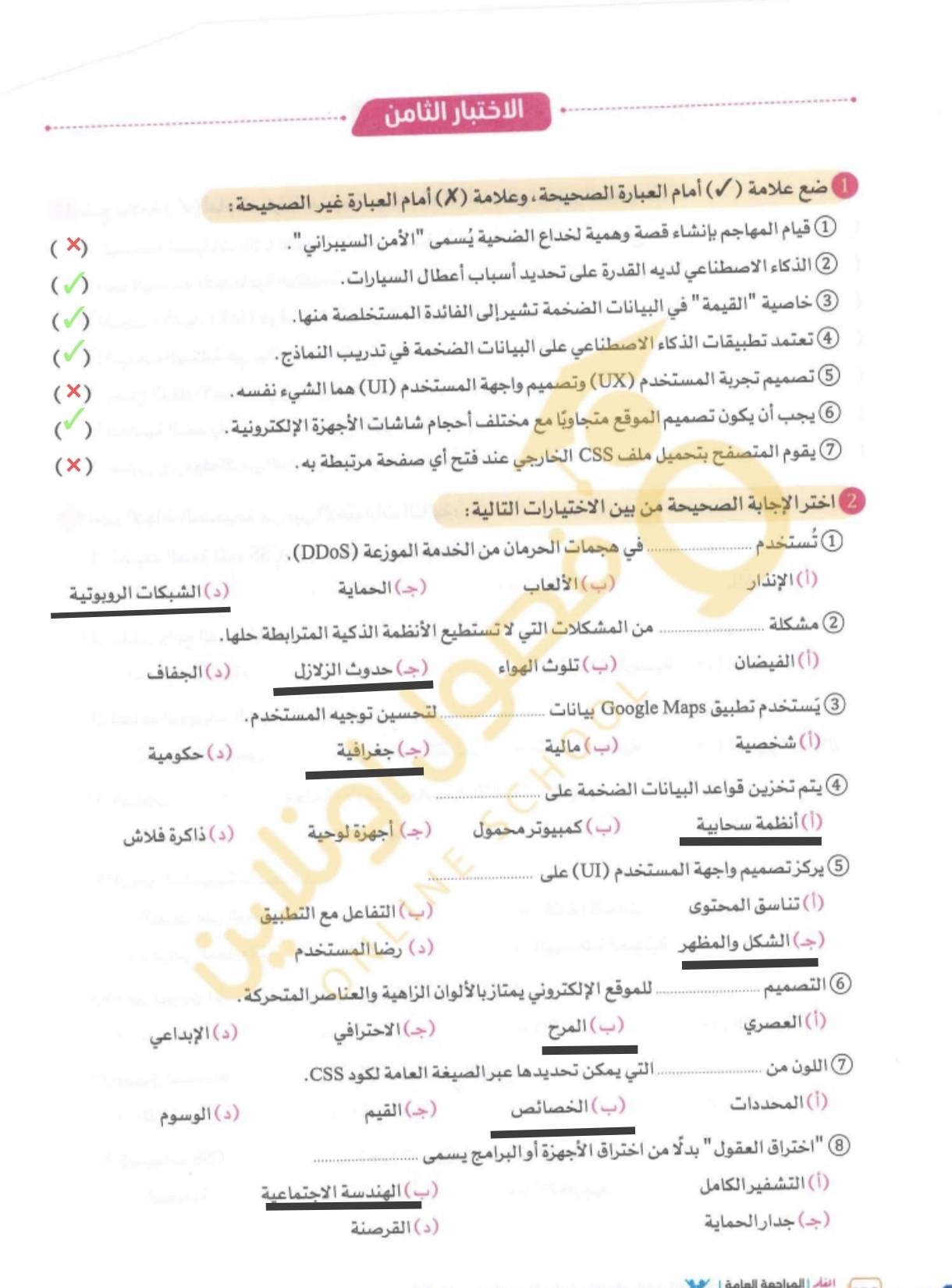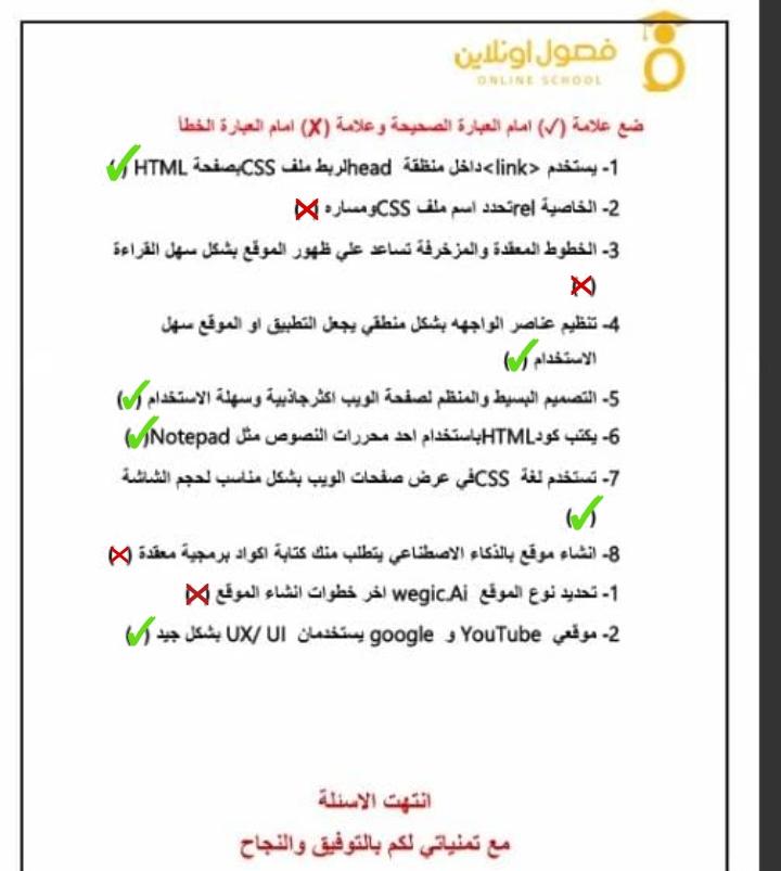 تم الواجب واللي هو الاختبار الثامن تحت