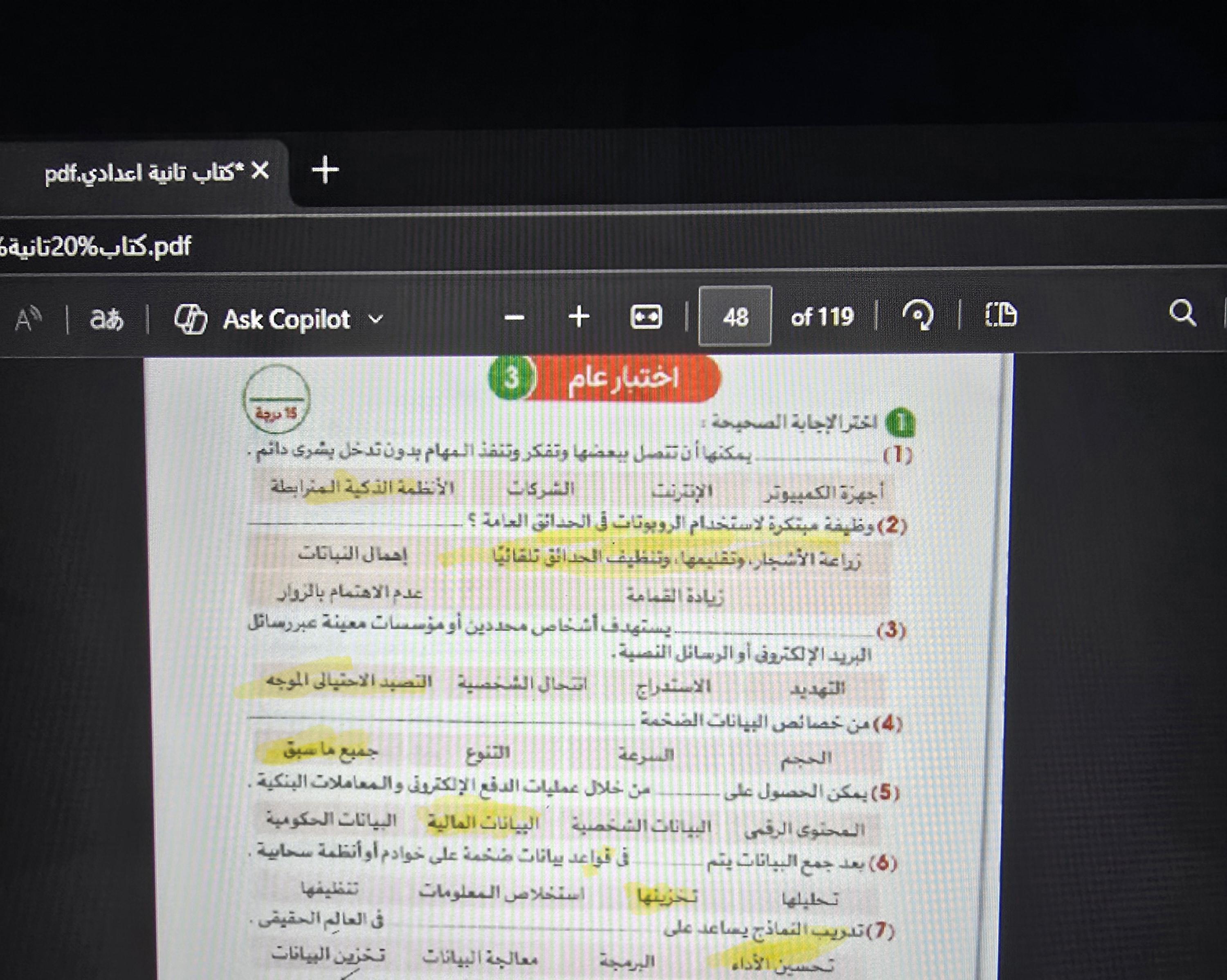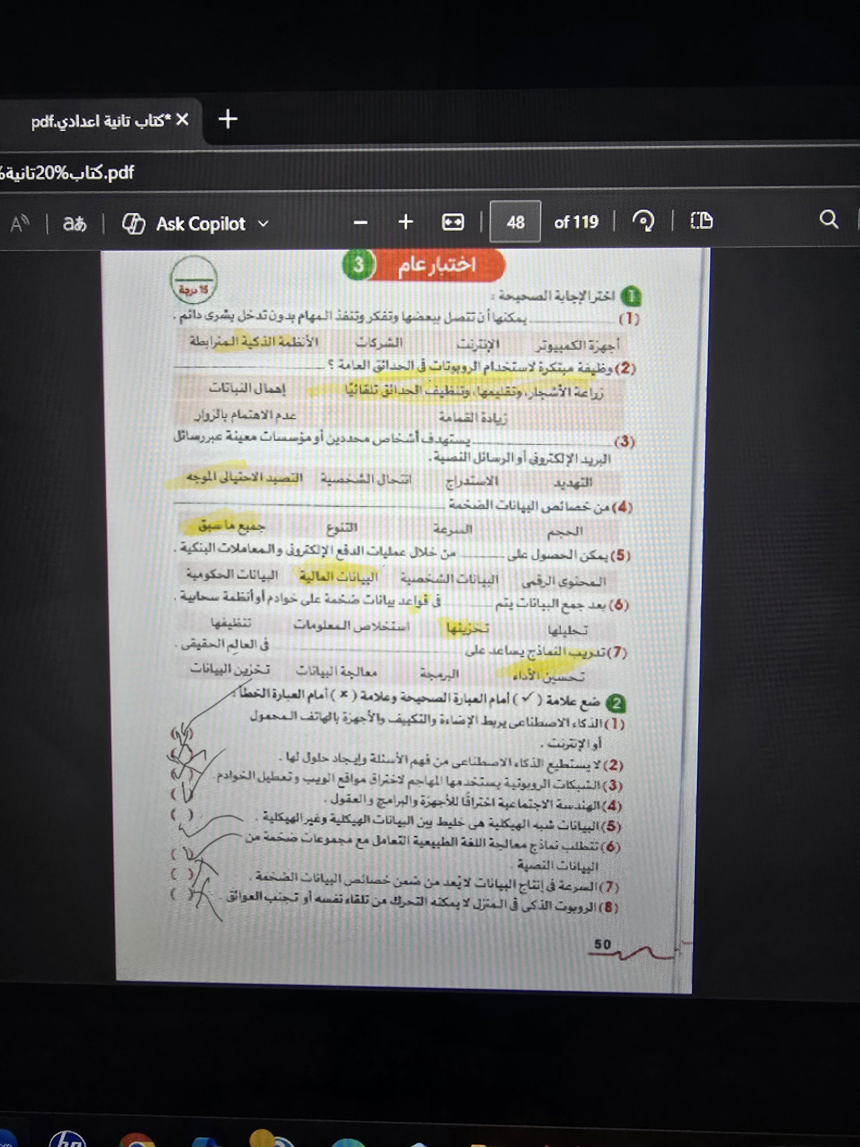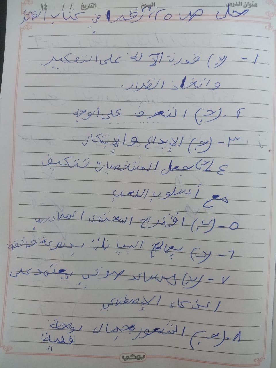 يا مس إبعتي الصفحة هنا علطول حضرتك مادتينيش فرصة أتكلم عشان أخد صورة للامتحان