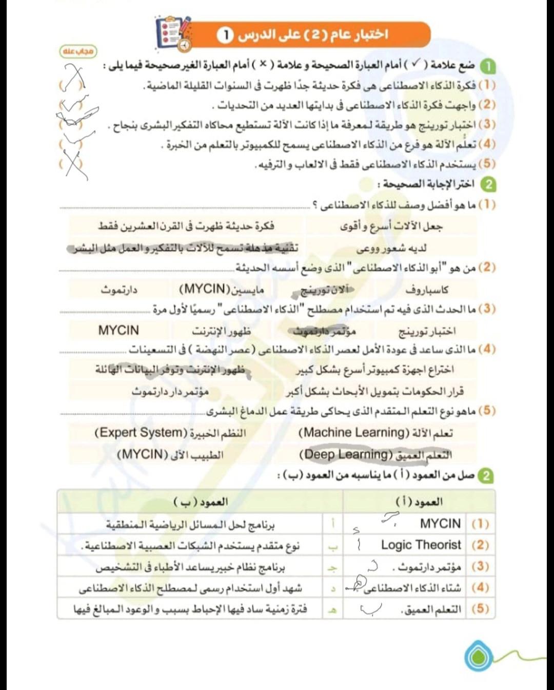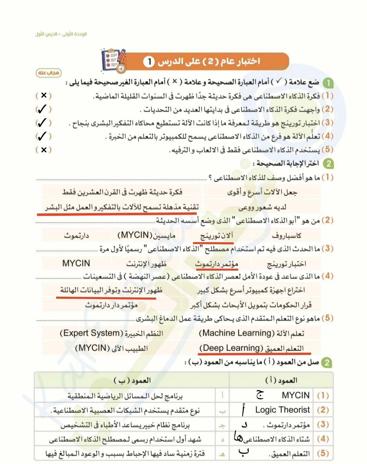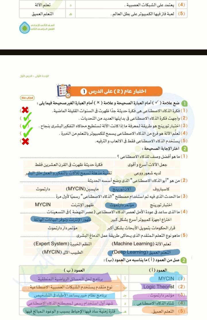 اليوم تم دراسة الدرس الاول التطور التاريخي للذكاء الاصطناعي