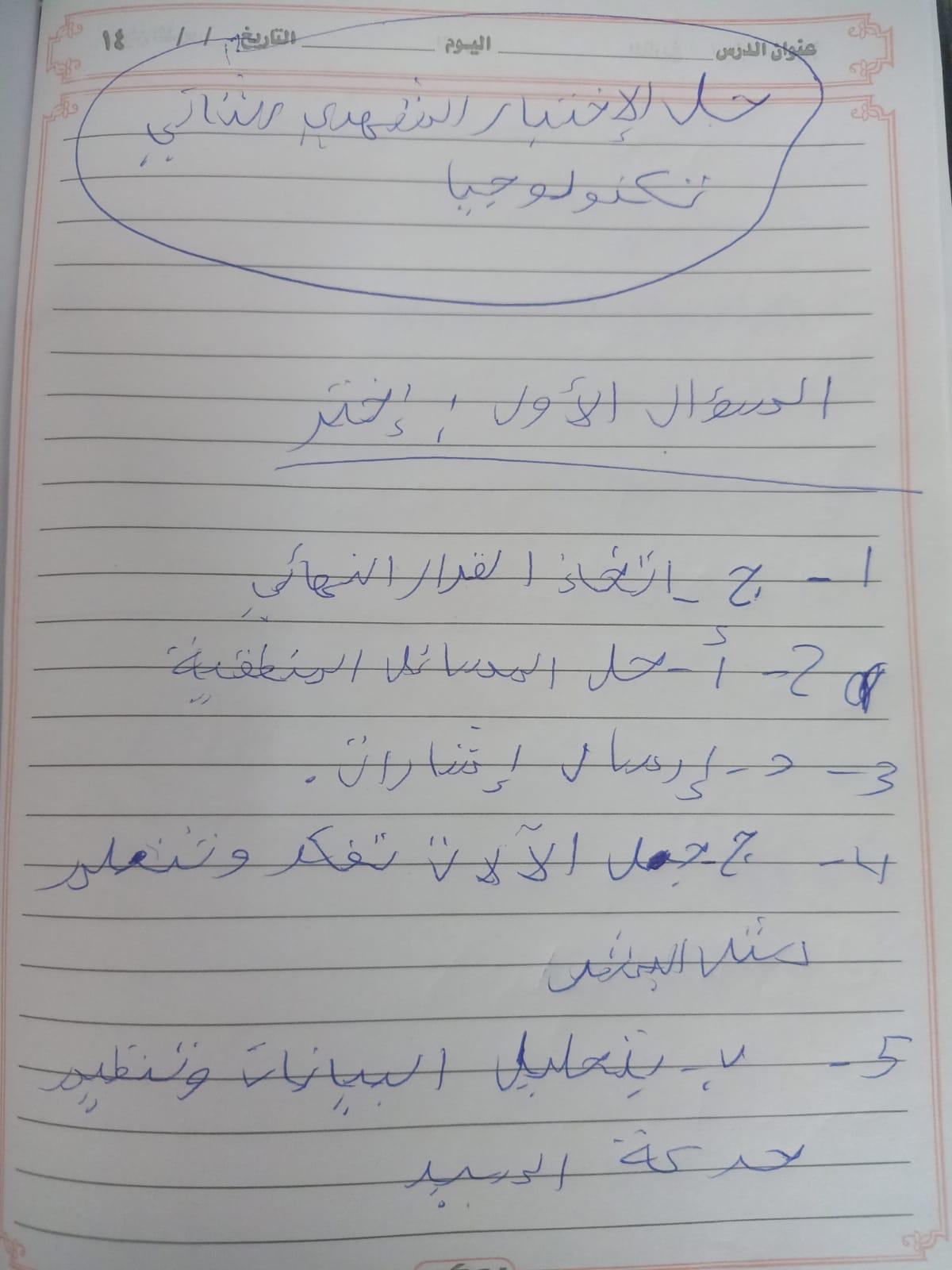 حل امتحان التكنولوجيا