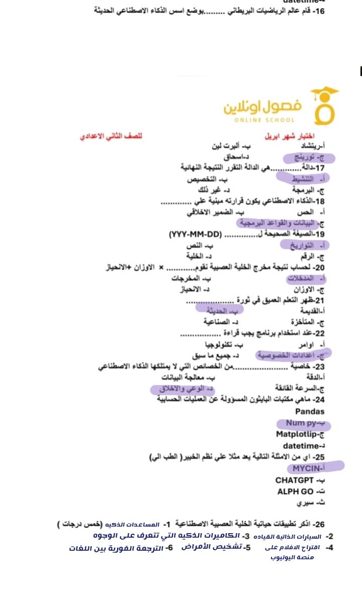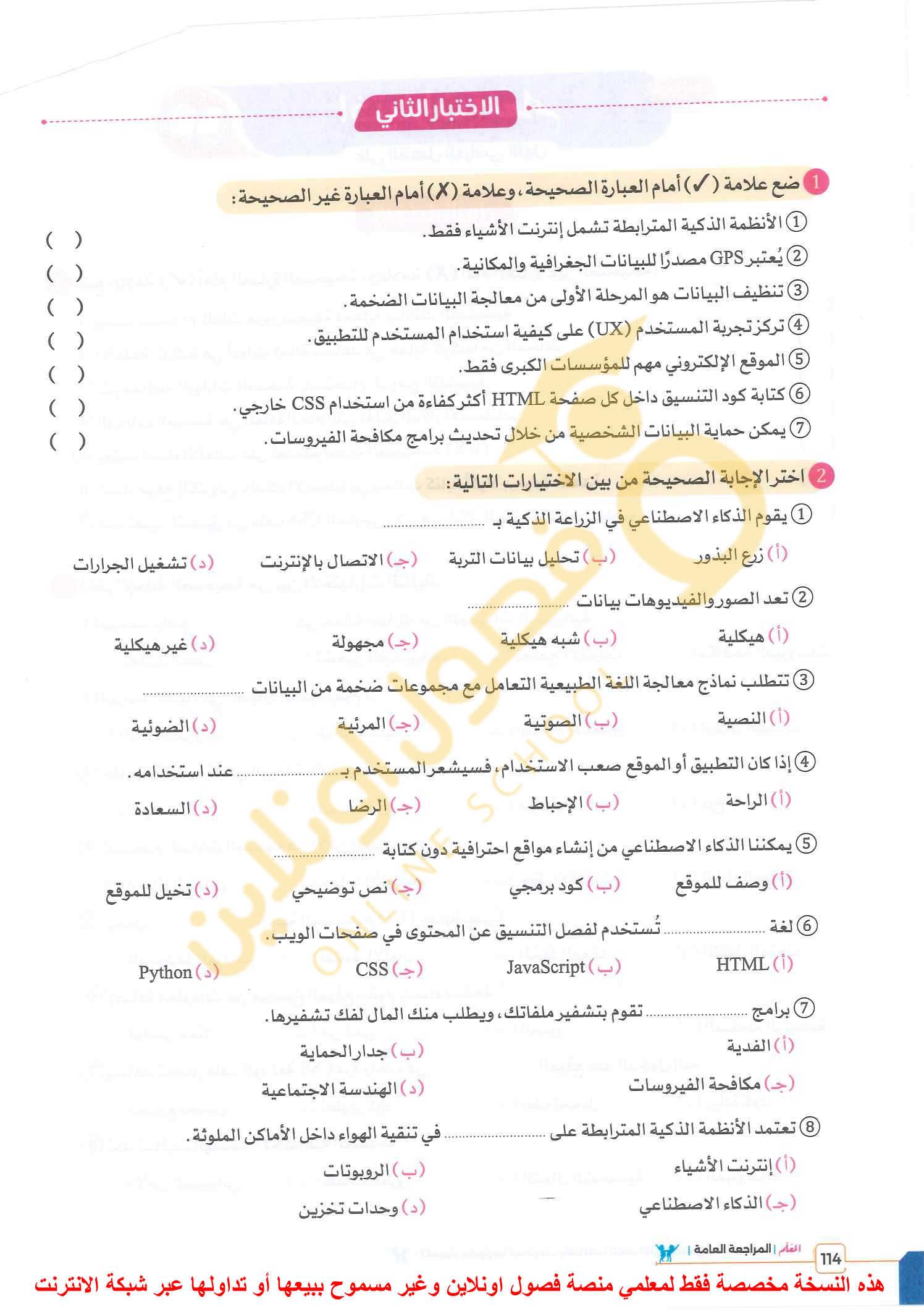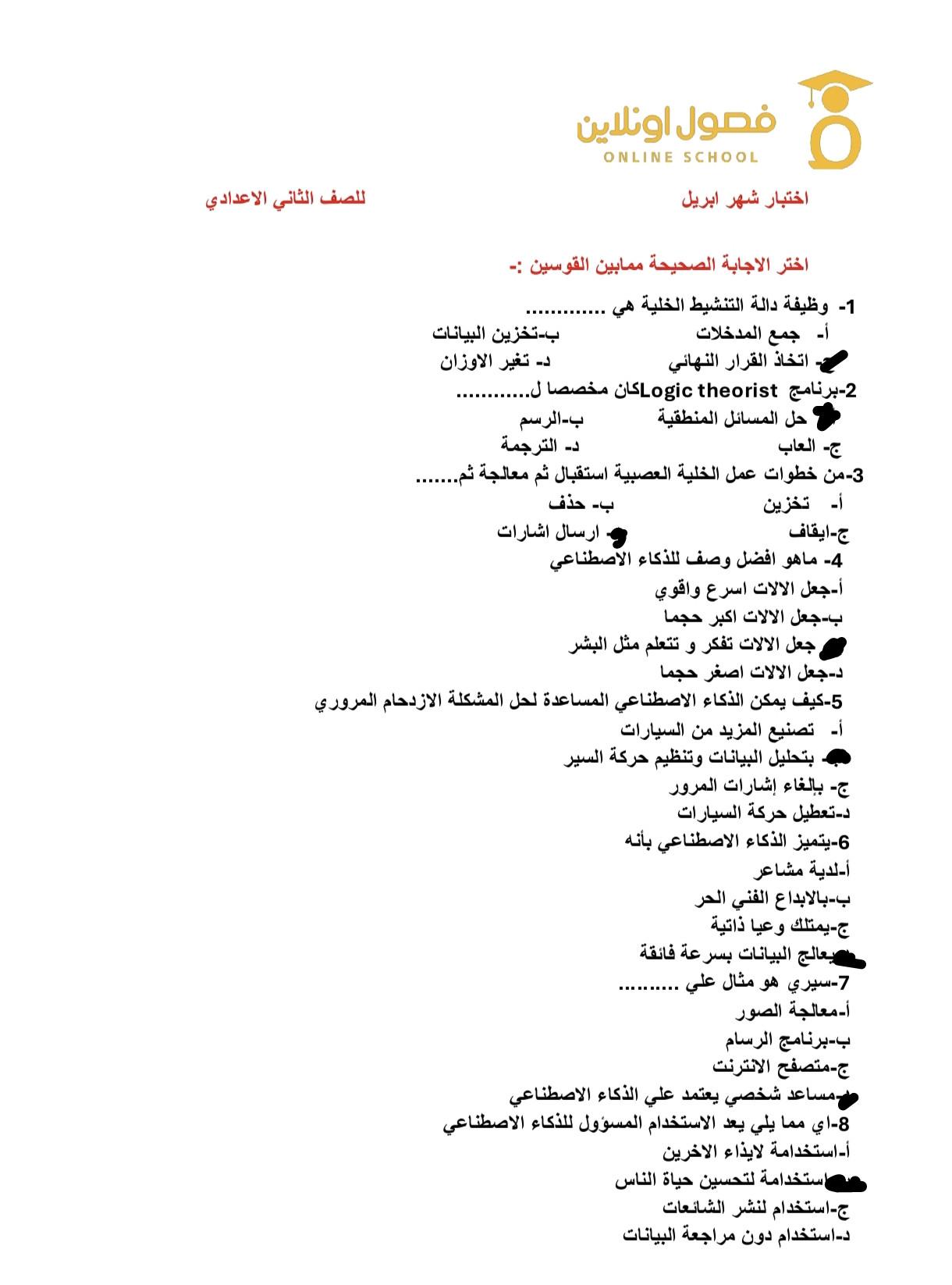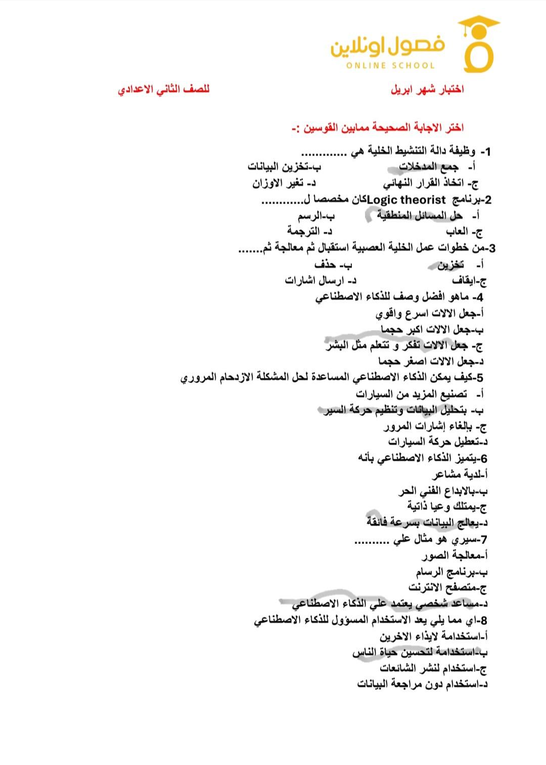 الاختبار الشهري الثاني للتكنولوجيا