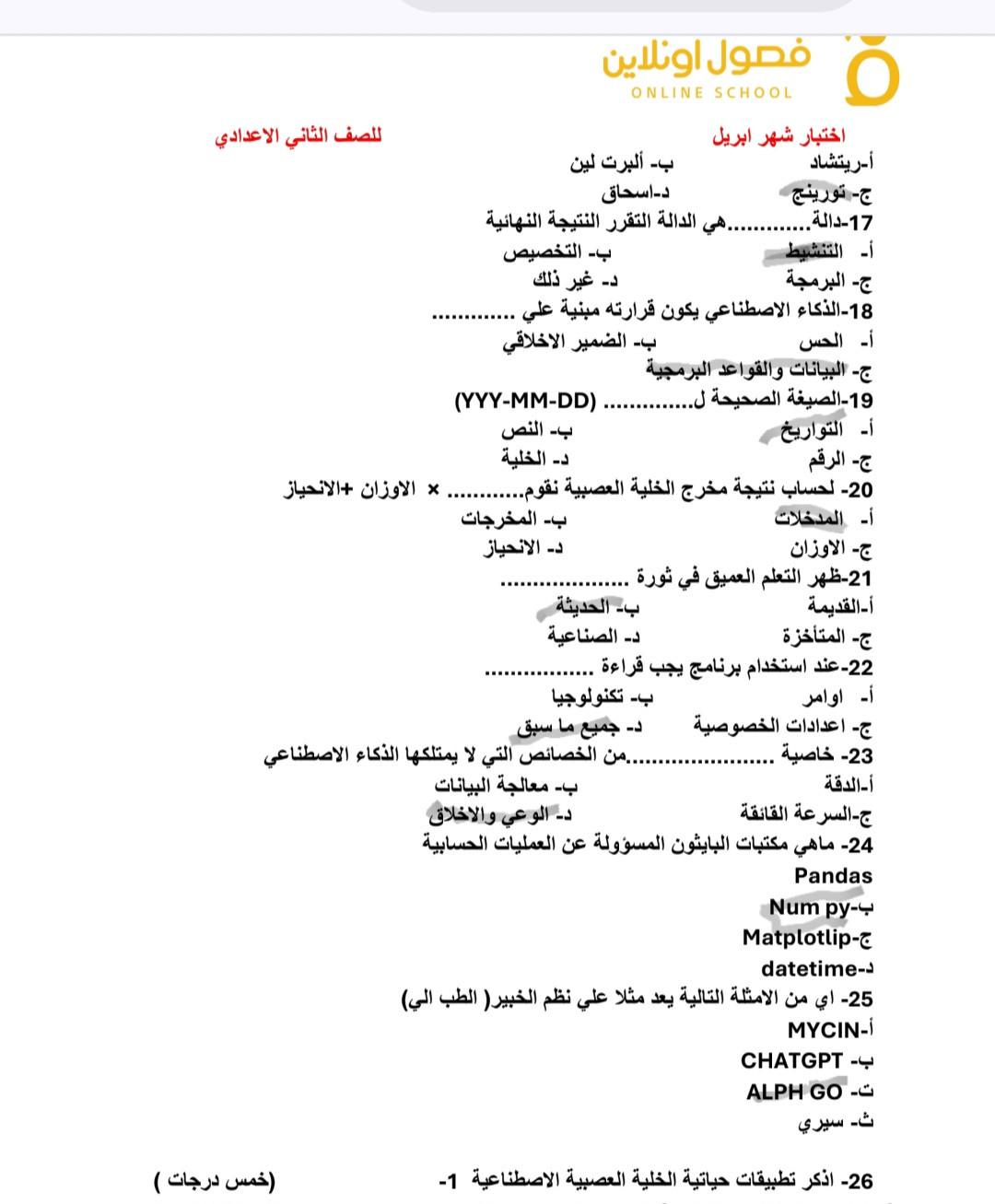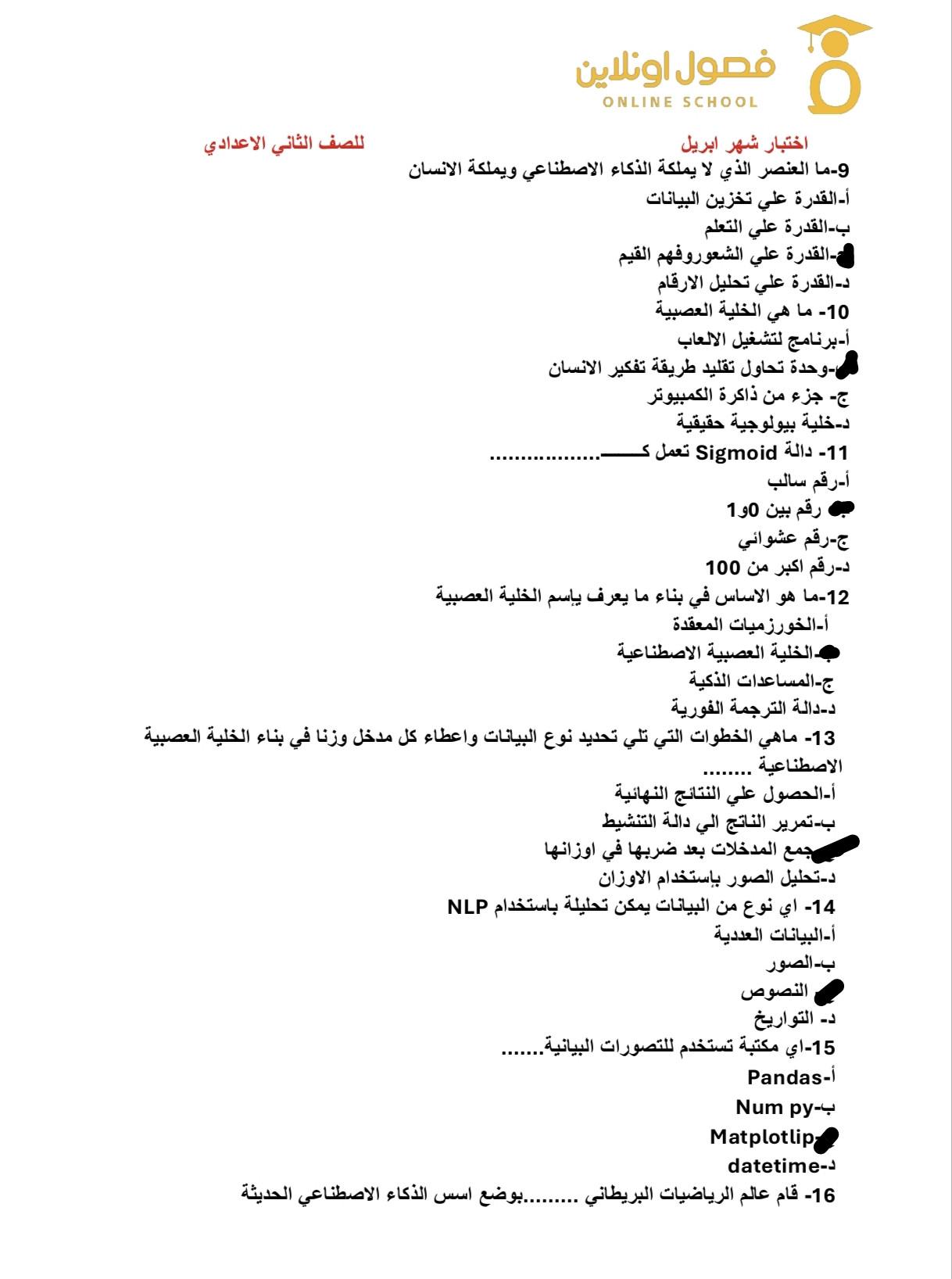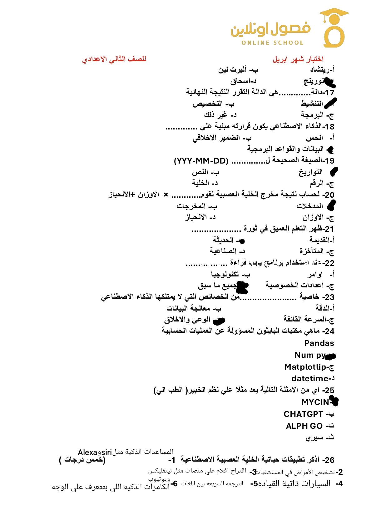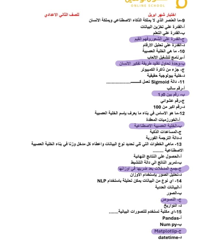 الاختبار الشهري الثاني للتكنولوجيا