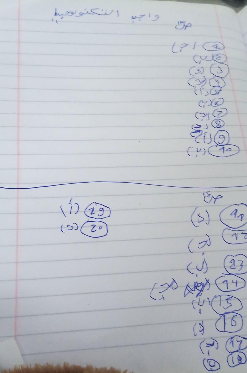 تم حل واجب التكنولوجيا وهبعت الباقي