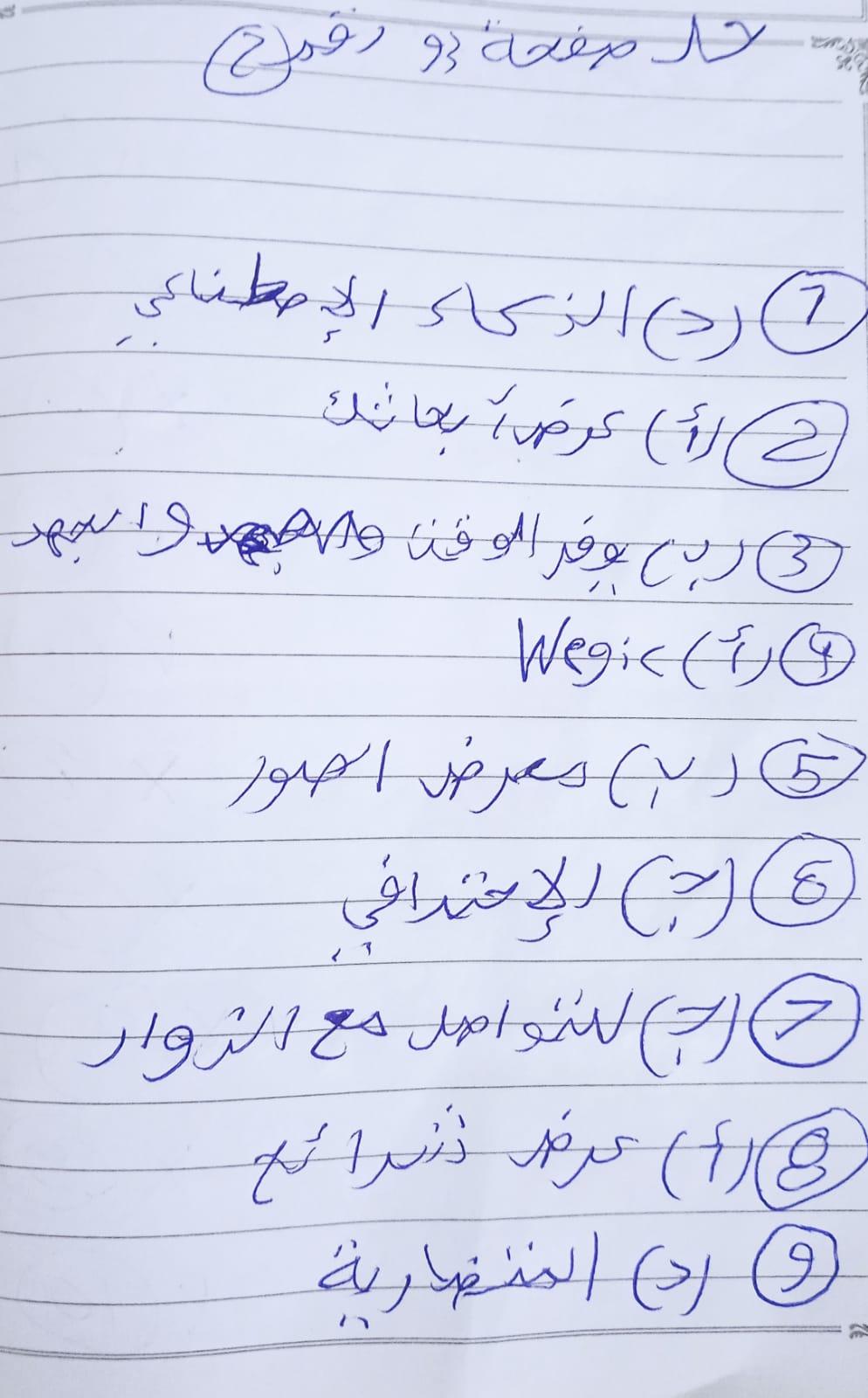 تم حل الواجب2 بس يا مس ليه يا مس مبعتليش الاختبار اللي بعد الاختبار الشامل