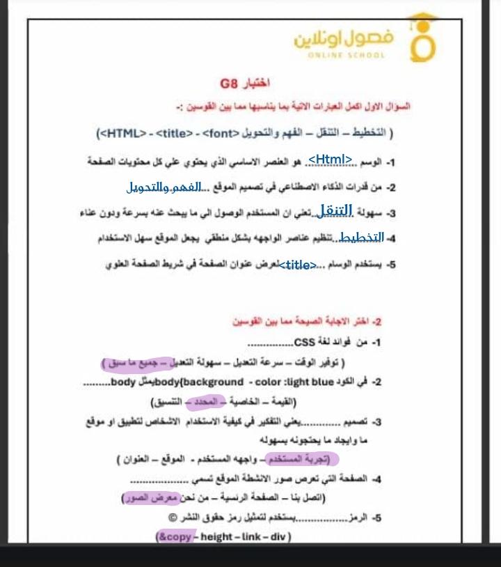 2- تكنولوجيا المعلومات (G8 ) – Google Forms