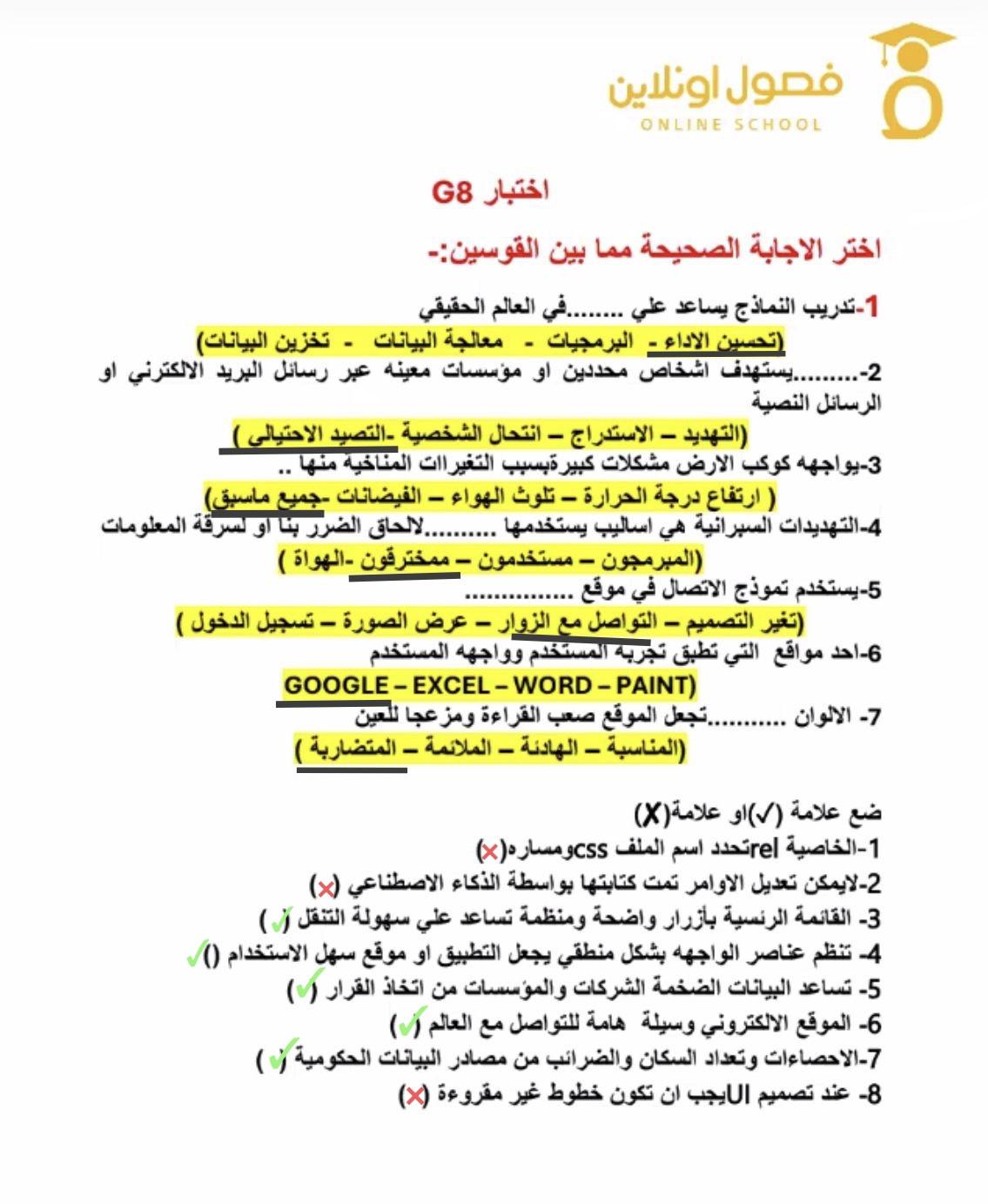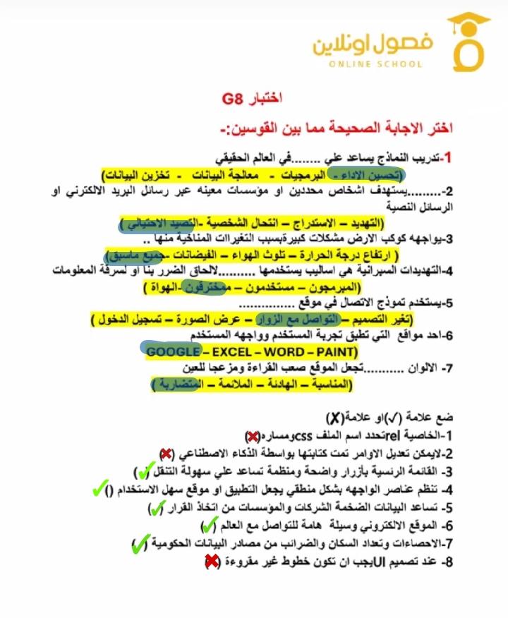 3- تكنولوجيا المعلومات (G8 ) – Google Forms