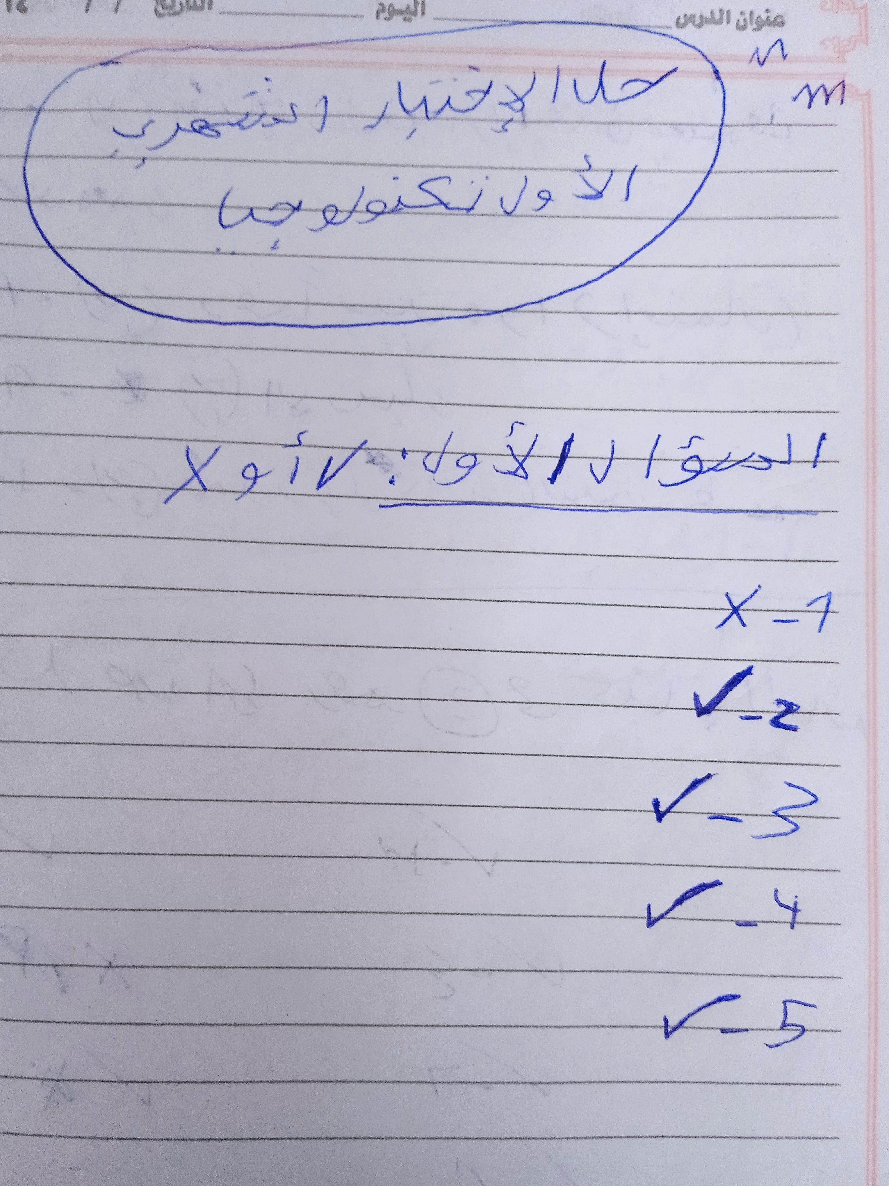 الاختبار الأول🌺