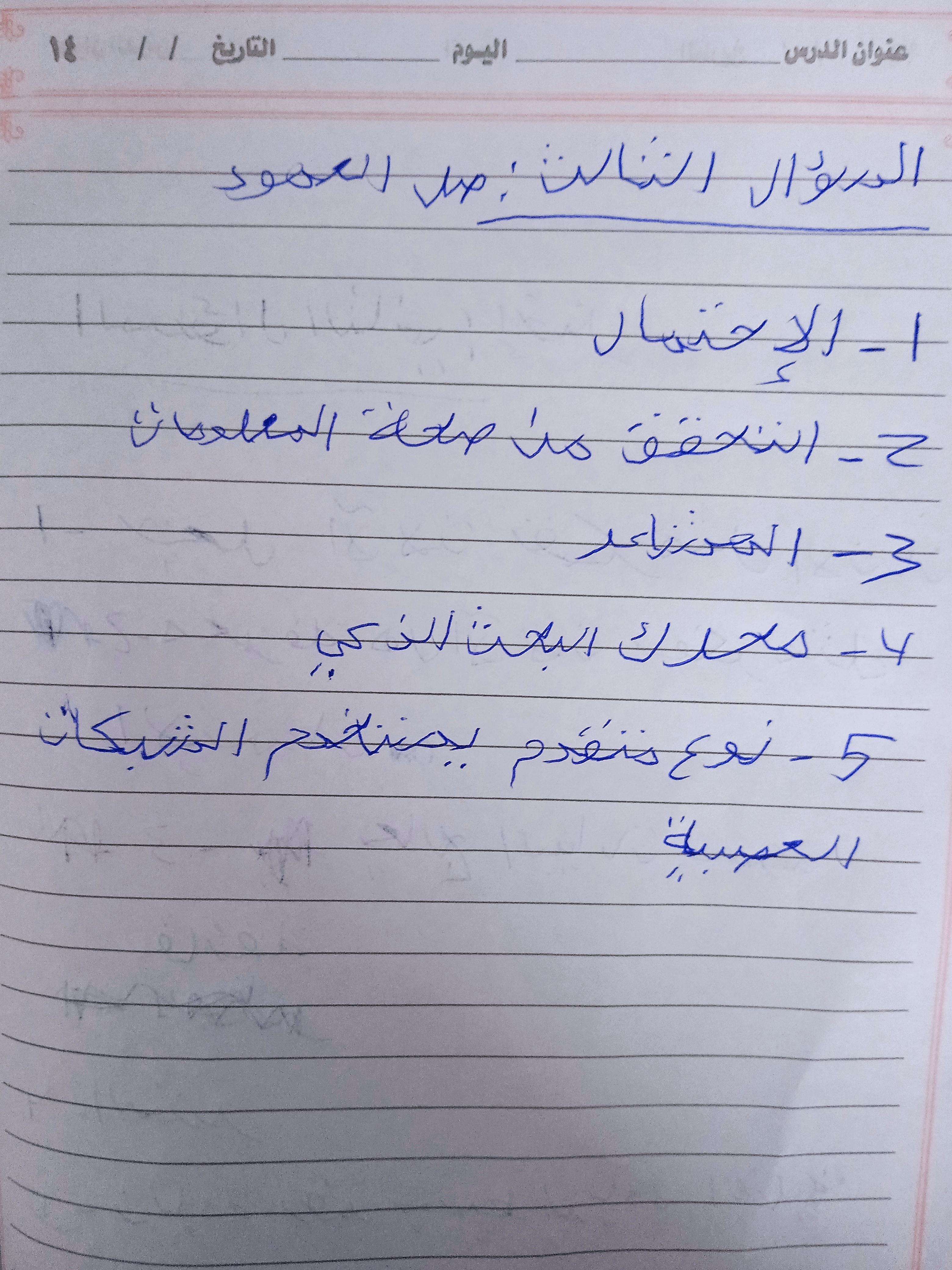 تم اليوم دراسة الجزء الاول من الدرس الثانب المحور الاول