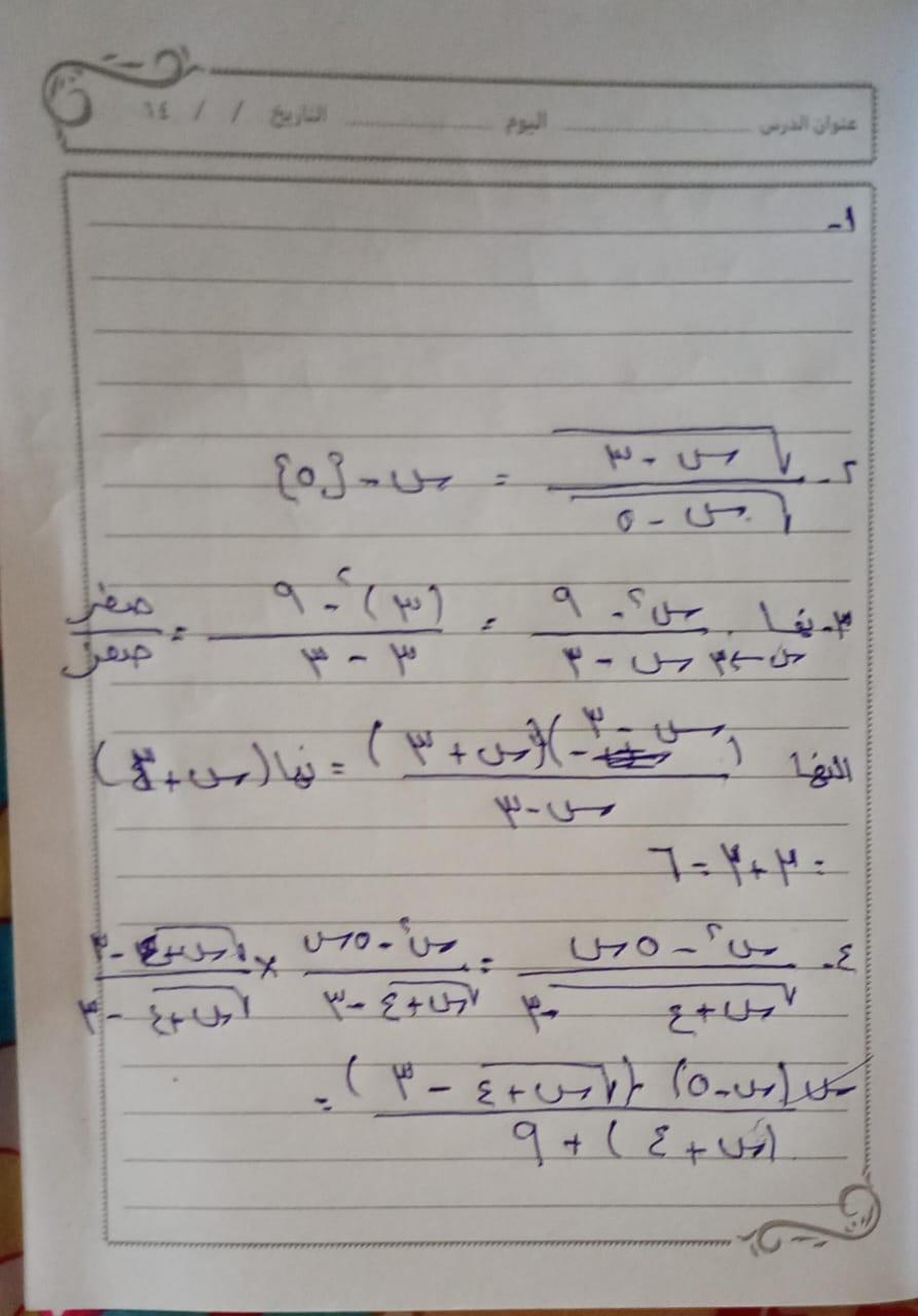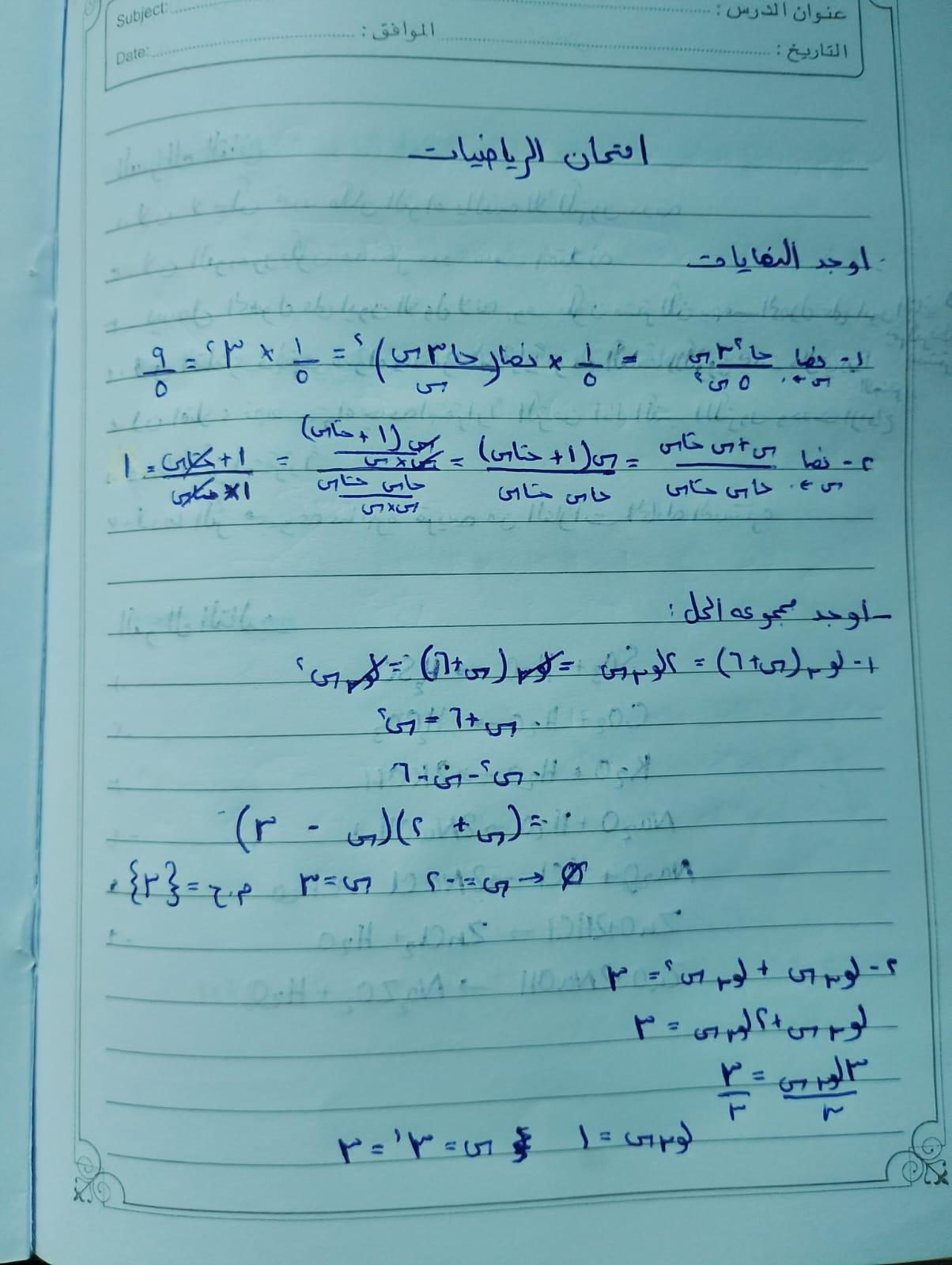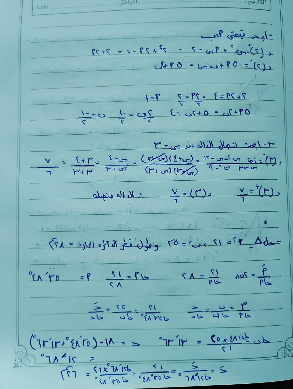 مذاكرة ما تم دراسته اليوم في اول درس بالتفاضل