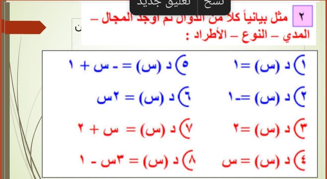 تم شرح العمليات علي الدوال وحل تدريبات علي الدرس من كتاب المعاصر