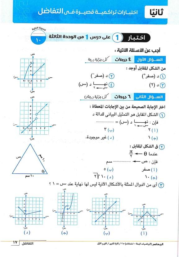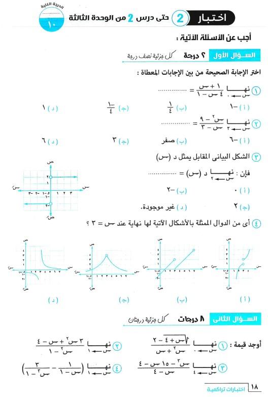 الاختبار الوحده الثانيه جبر + حل المثلث + من تفاضل الدوال المثلثيه حتى الاتصال