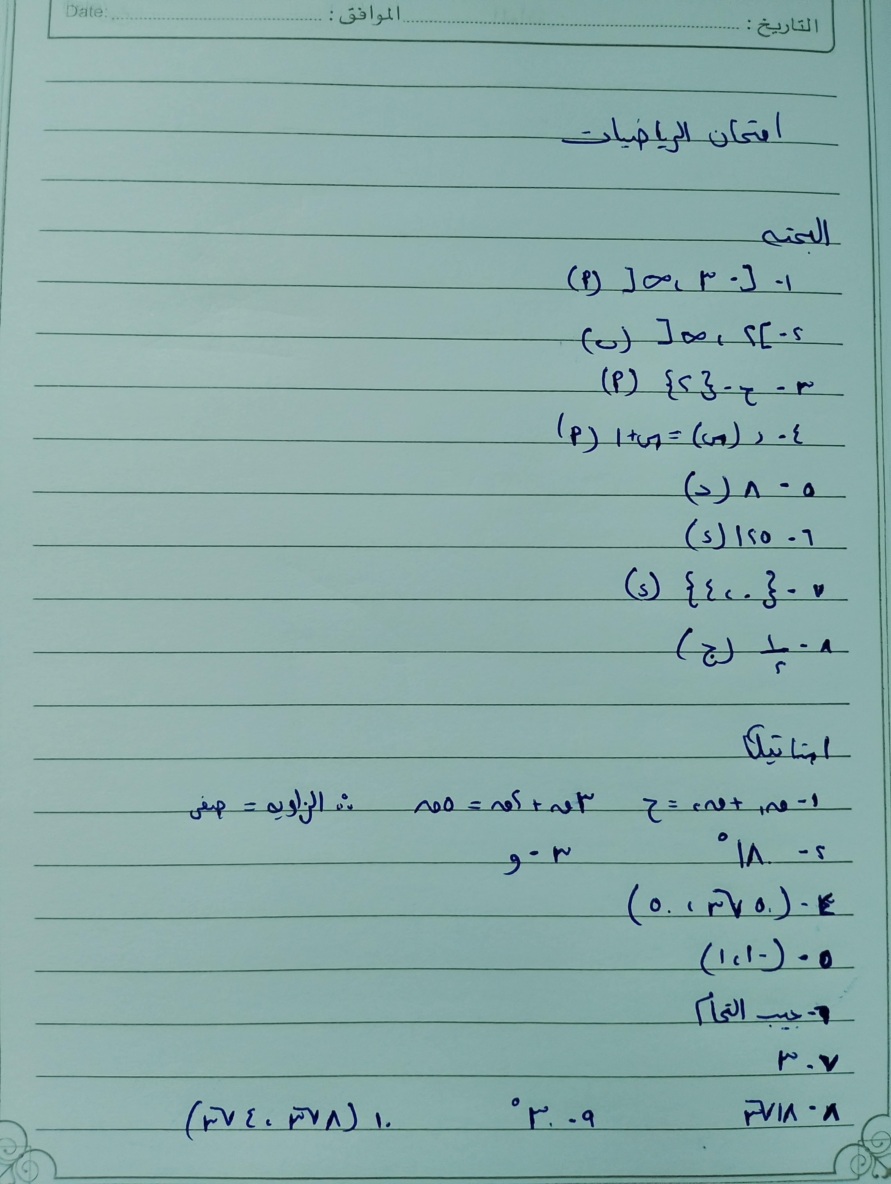 الاختبار الريااضيات