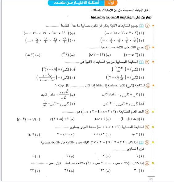 اسئلة الاختيار من متعدد صفحة 44