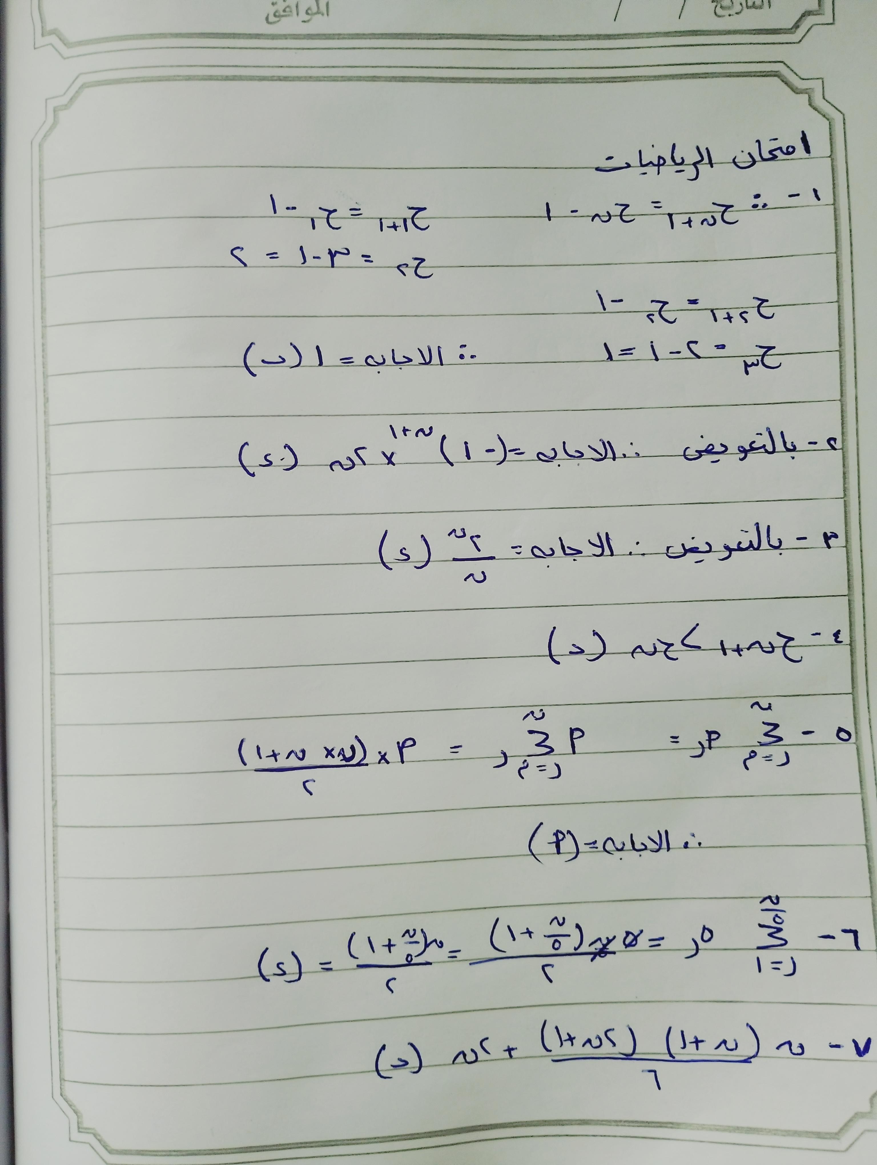 تمارين 3 علي المتتابعة الحسابية