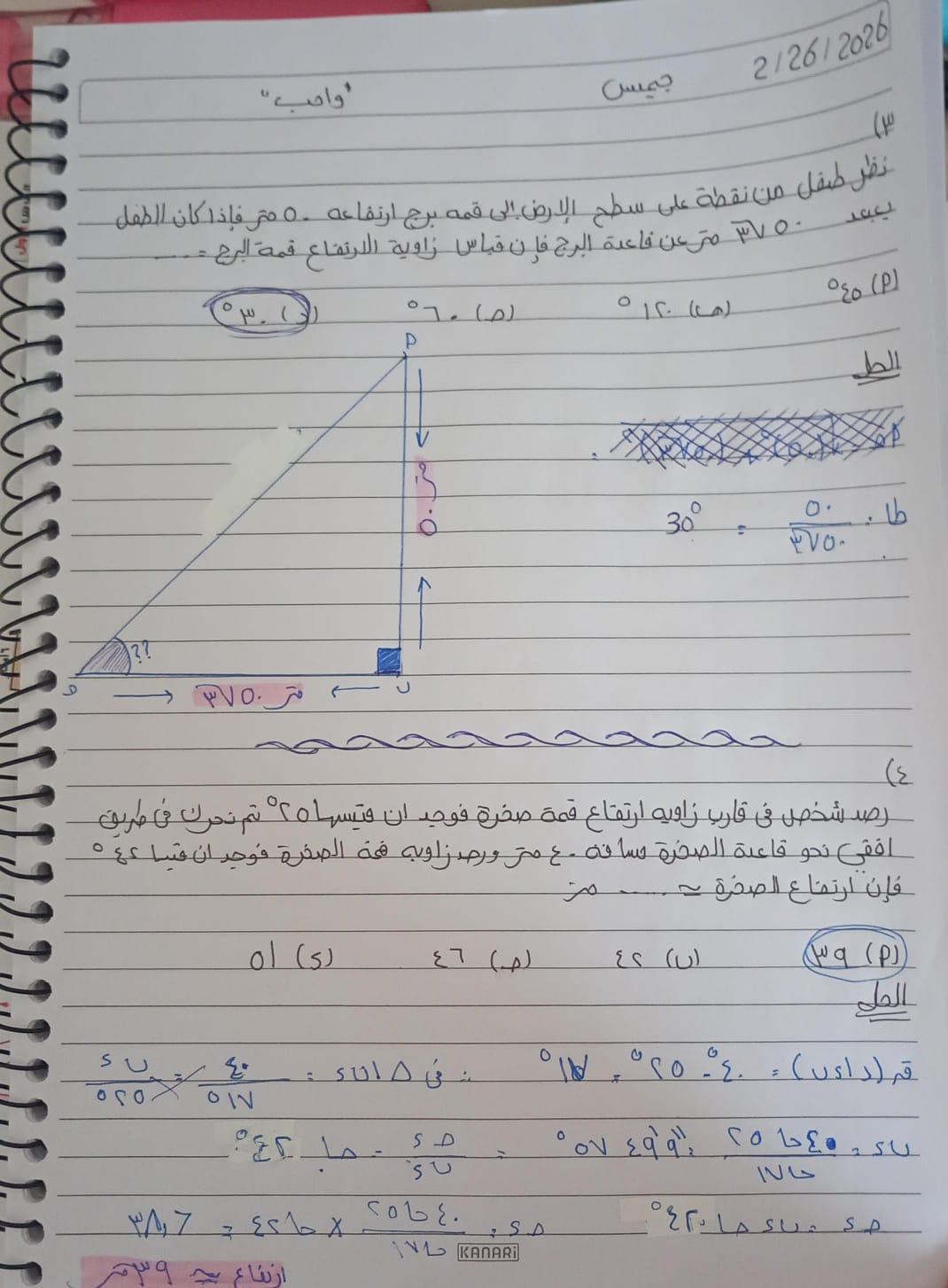 حل واجب الرياضيات
