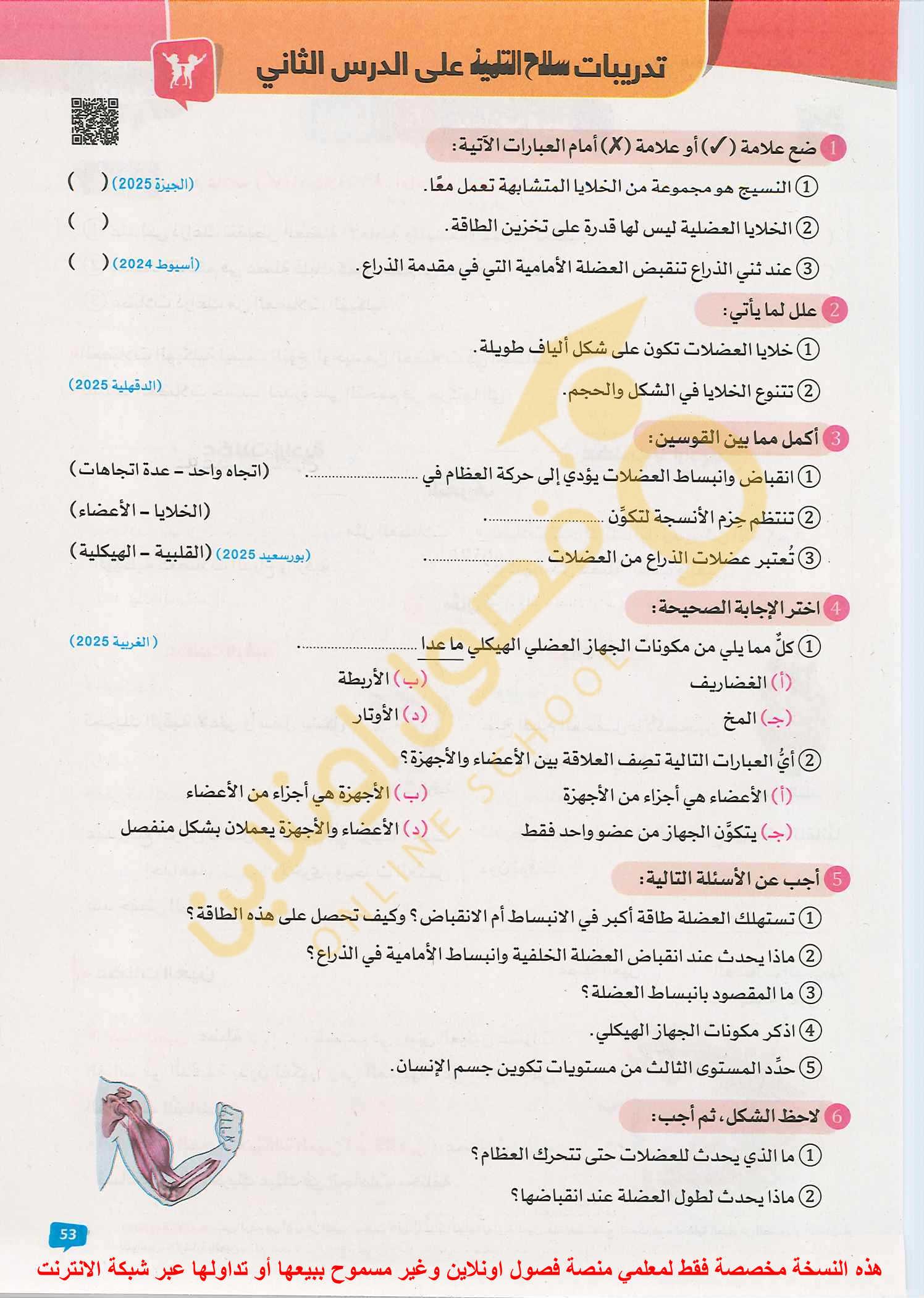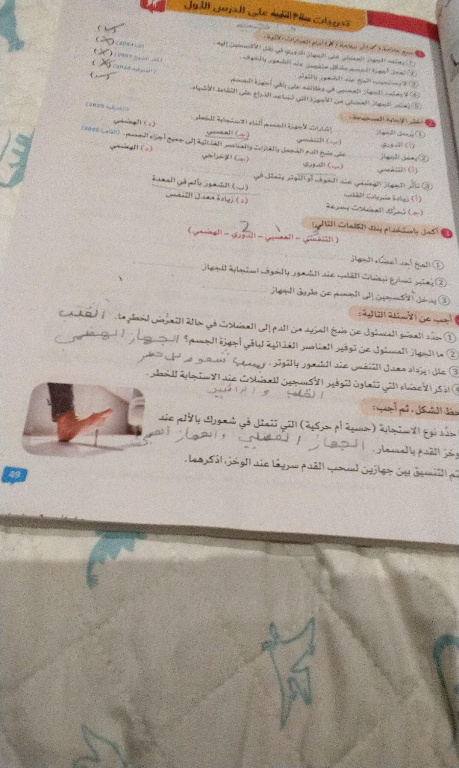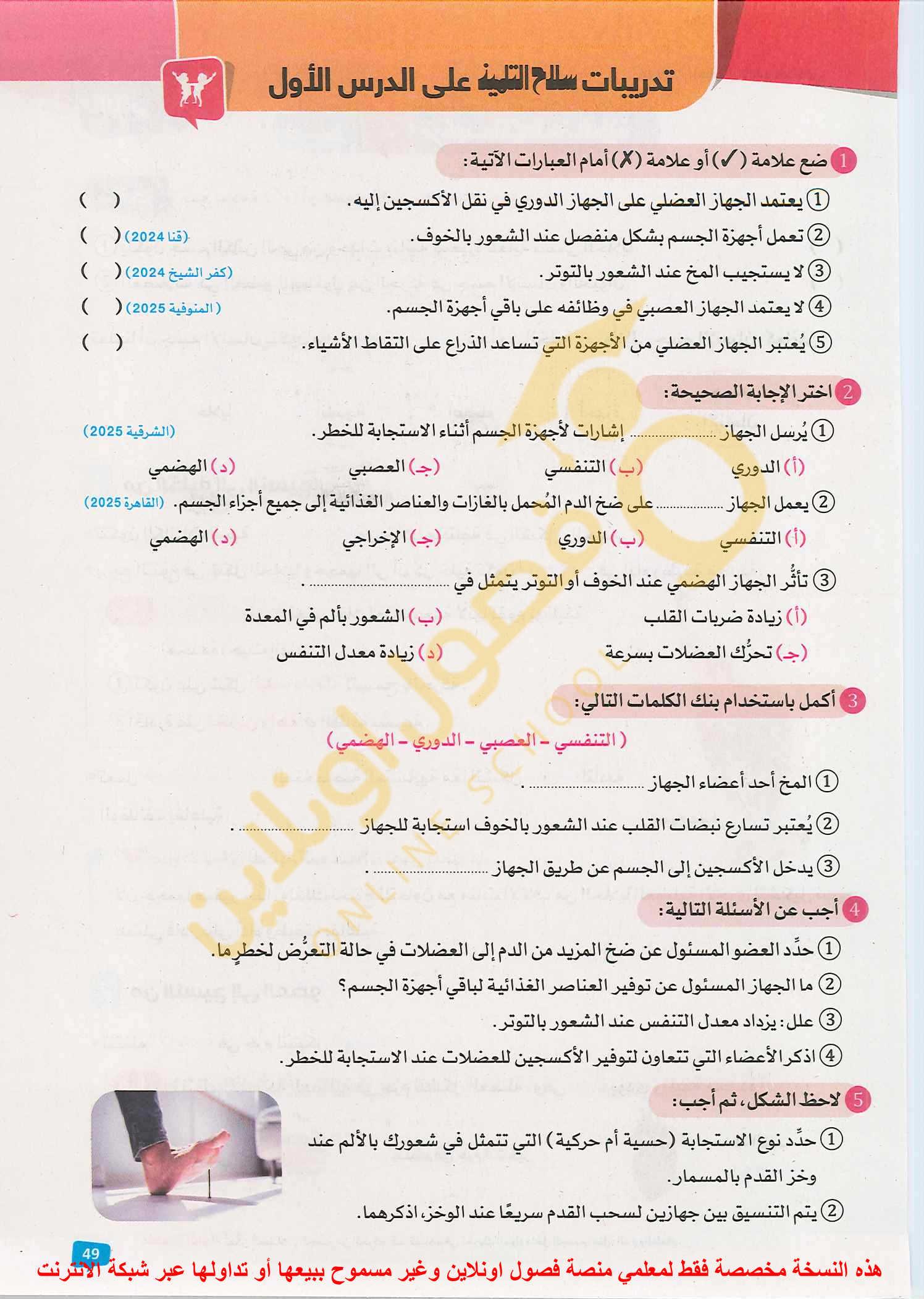 الواجب تدريبات سلاح التلميذ علي الدرس الثالث