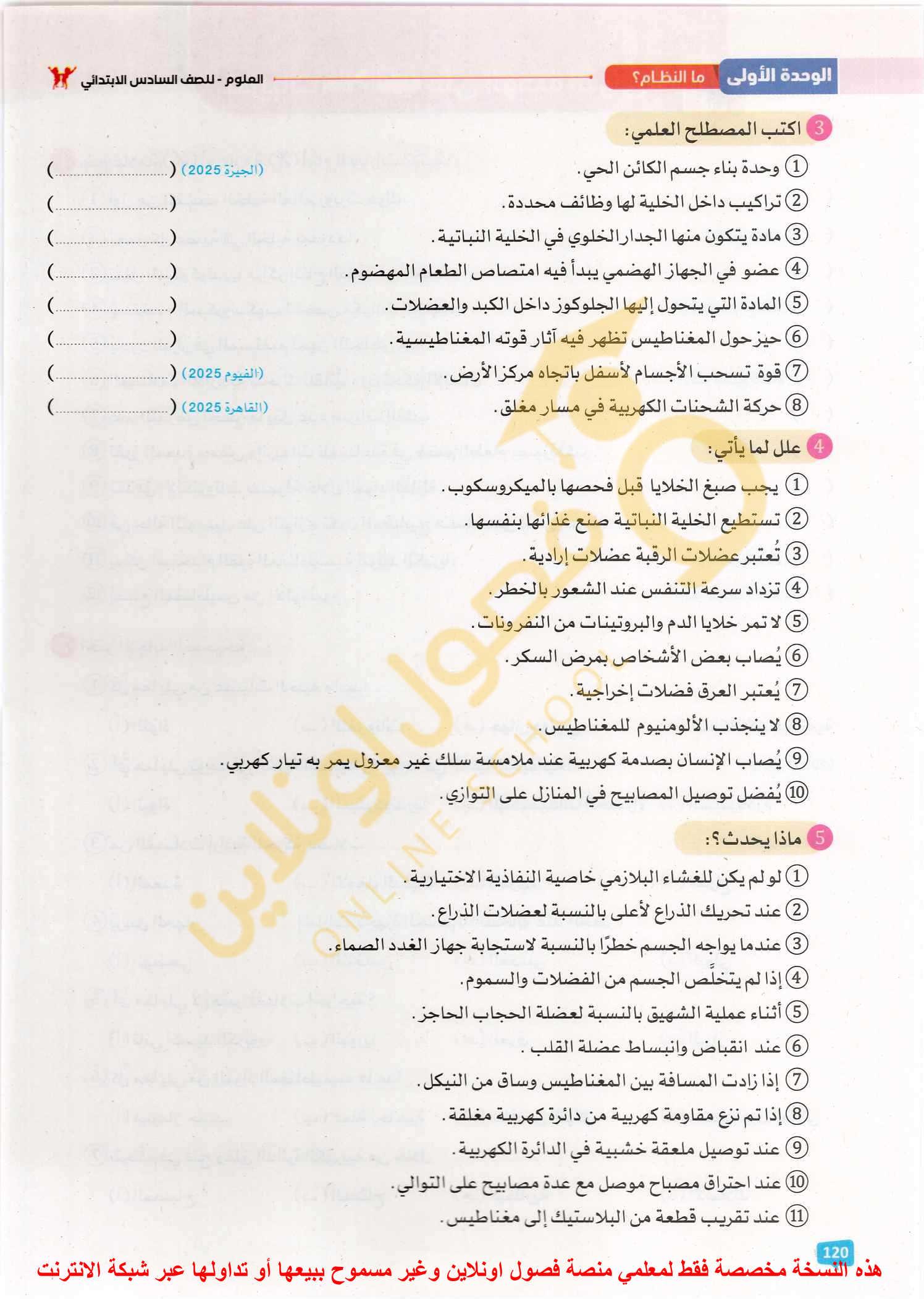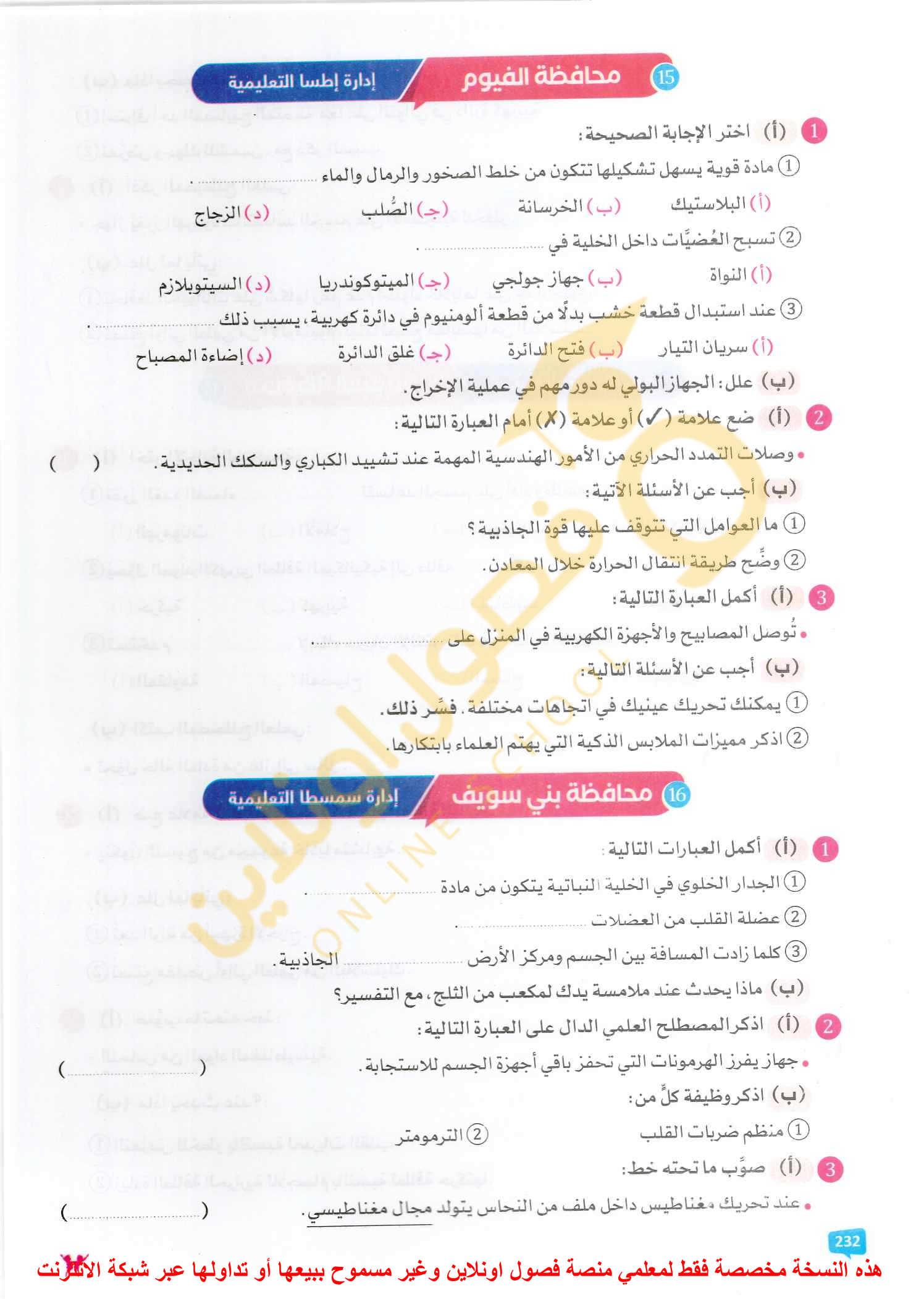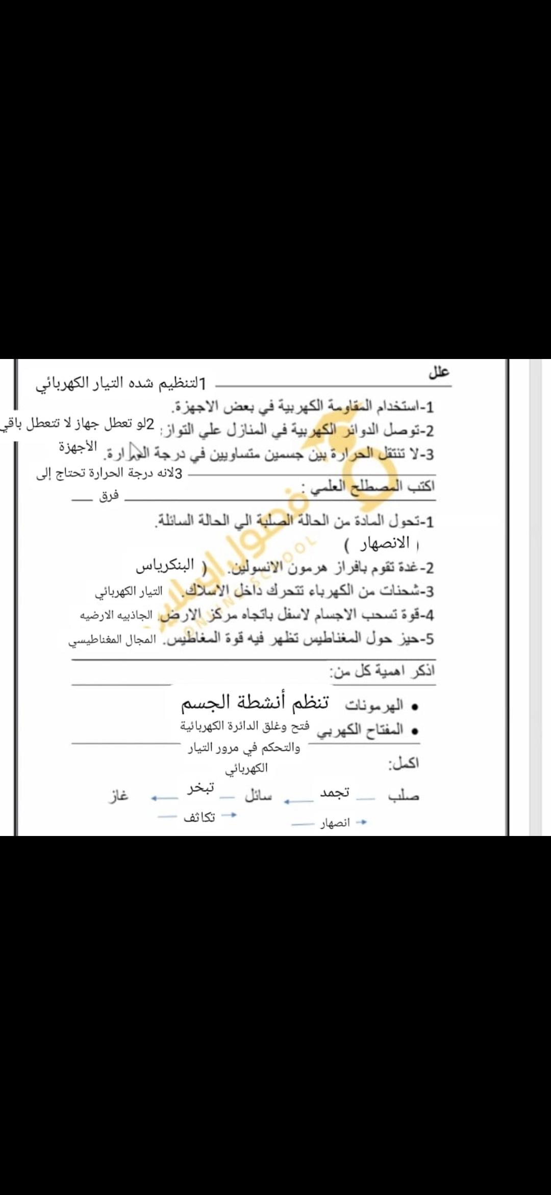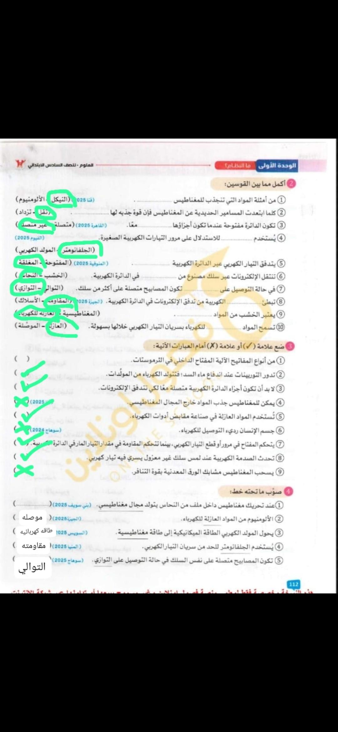 الامتحان العلوم ٦خ٨