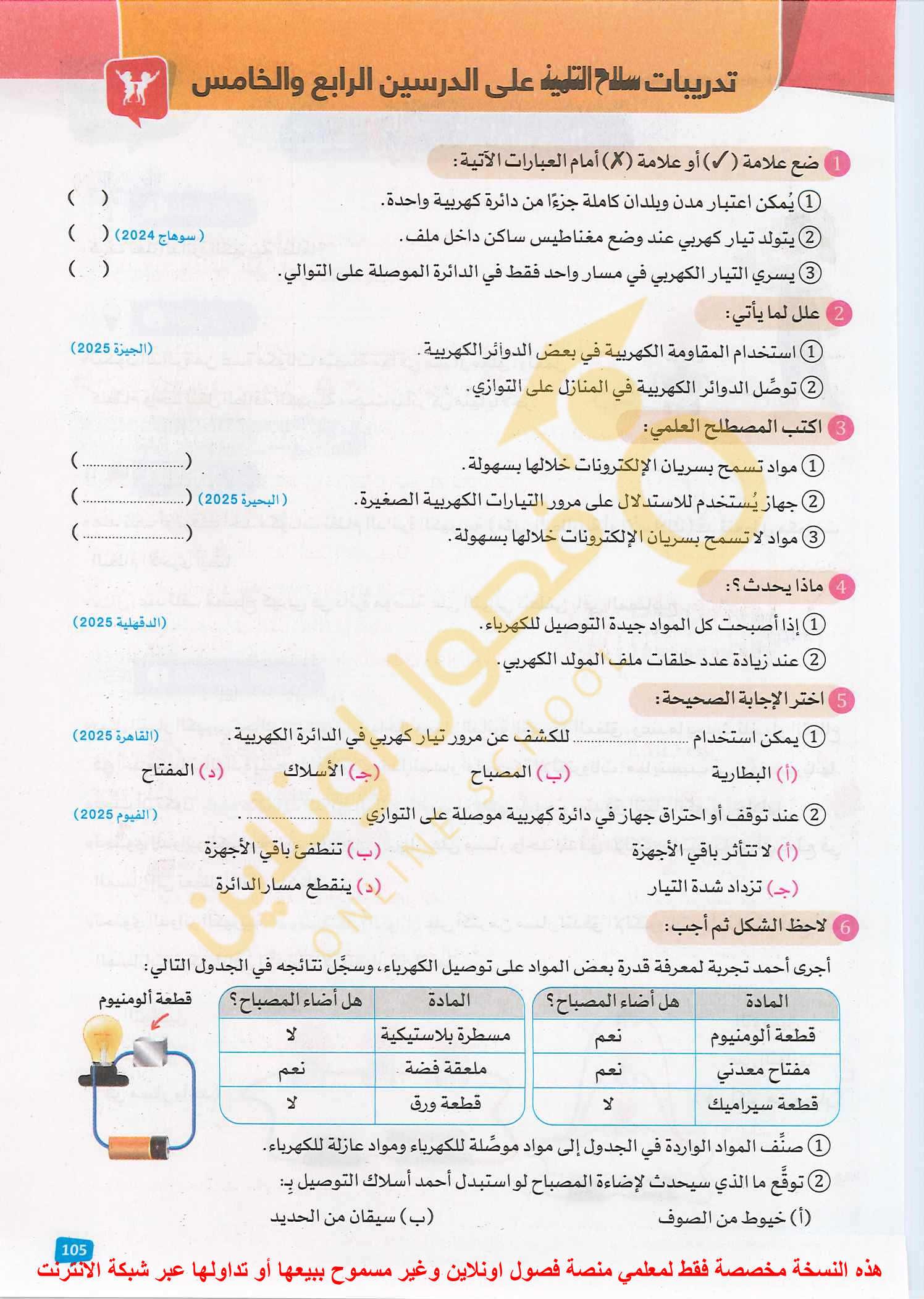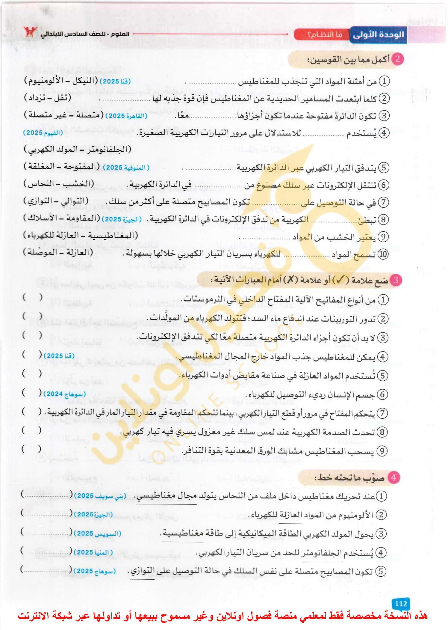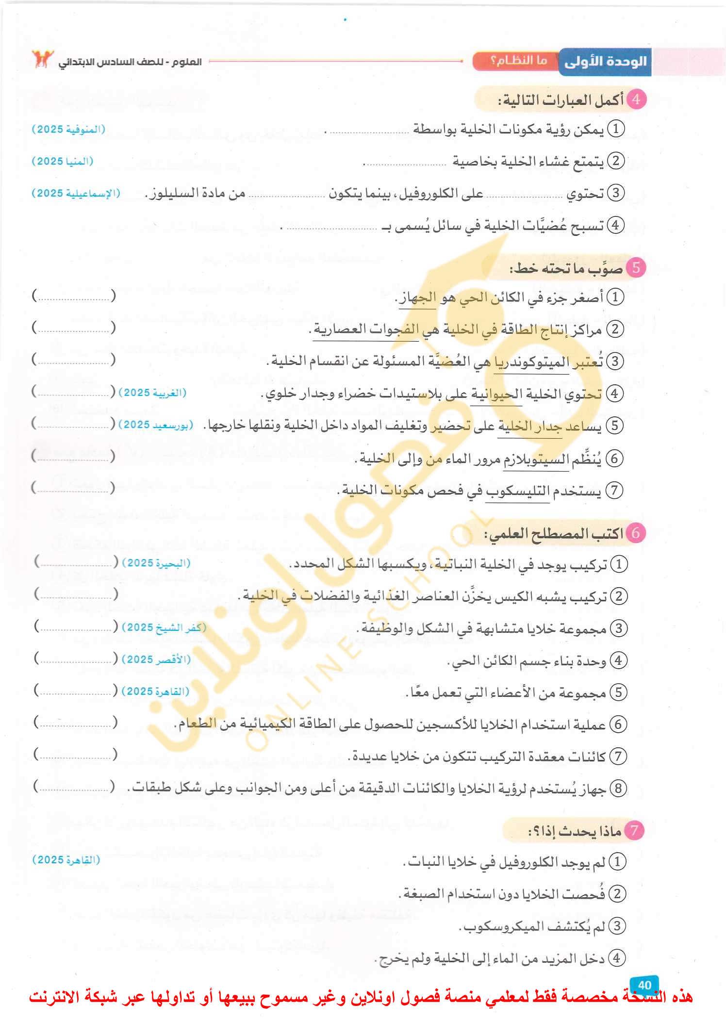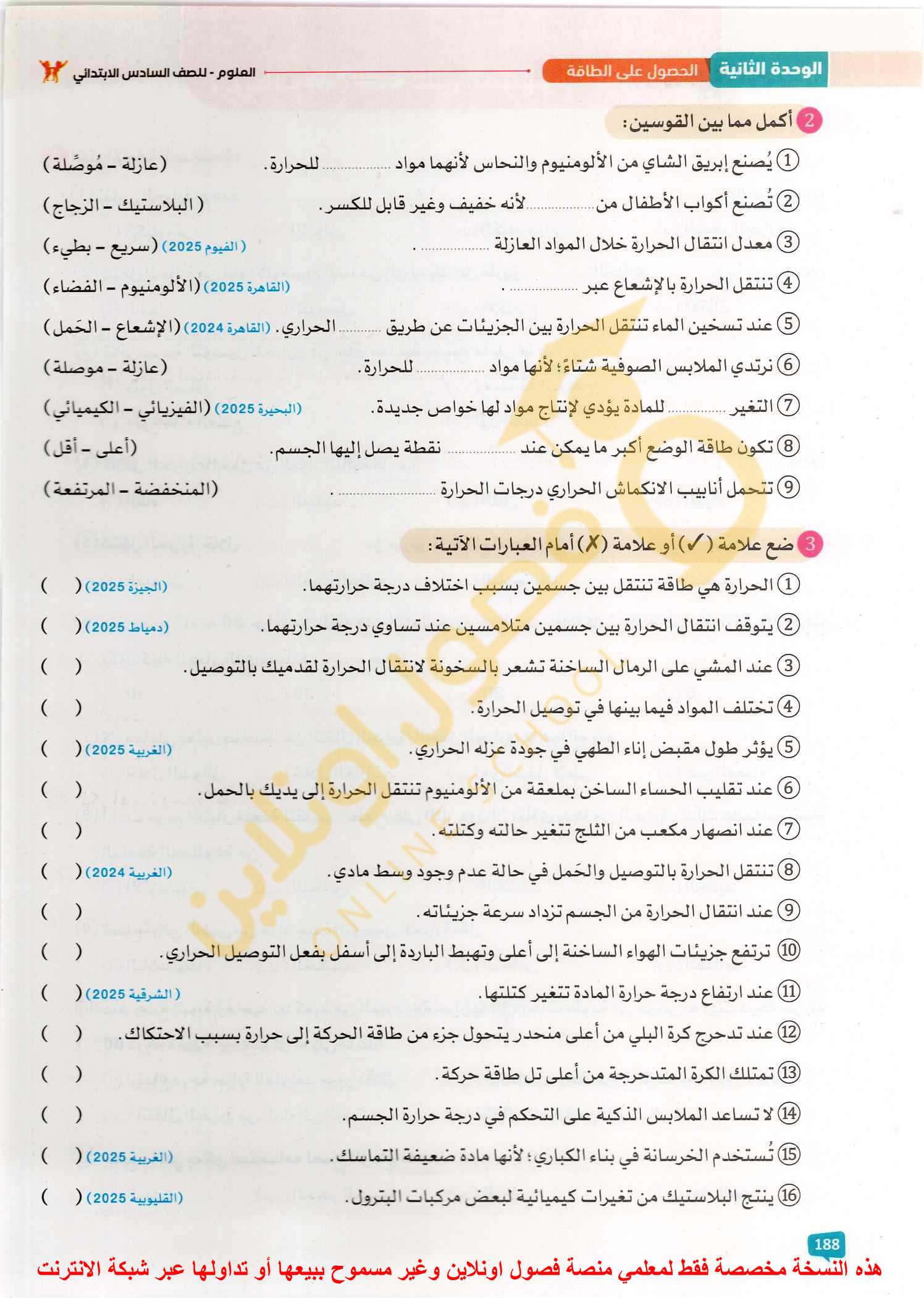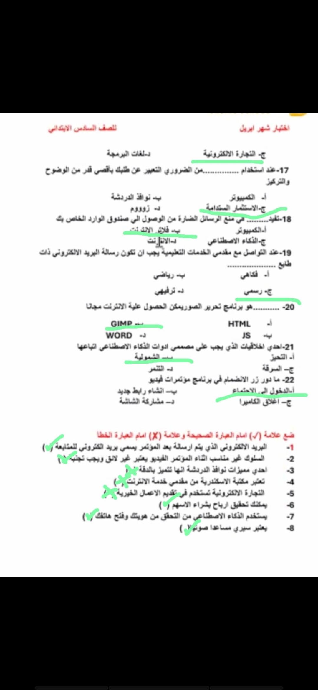 الامتحان العلوم ٦خ٨