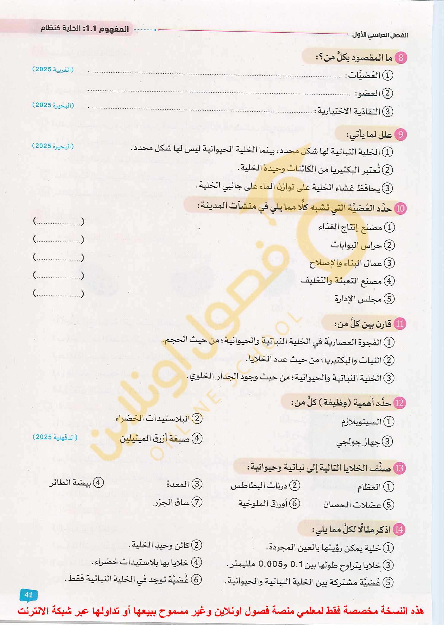 تدريبات سلاح التلميذ علي الدرس الاول المفهوم الثالث