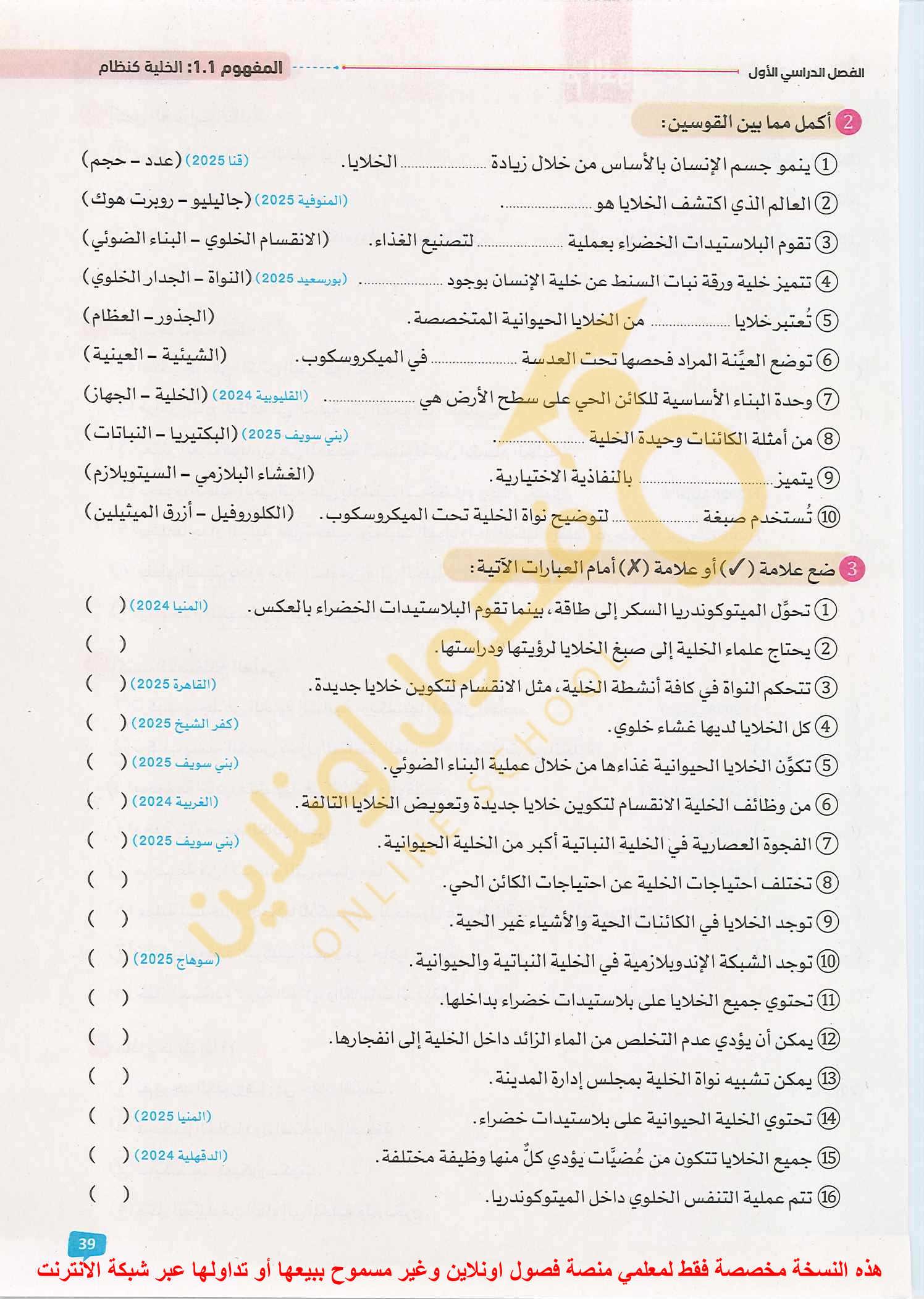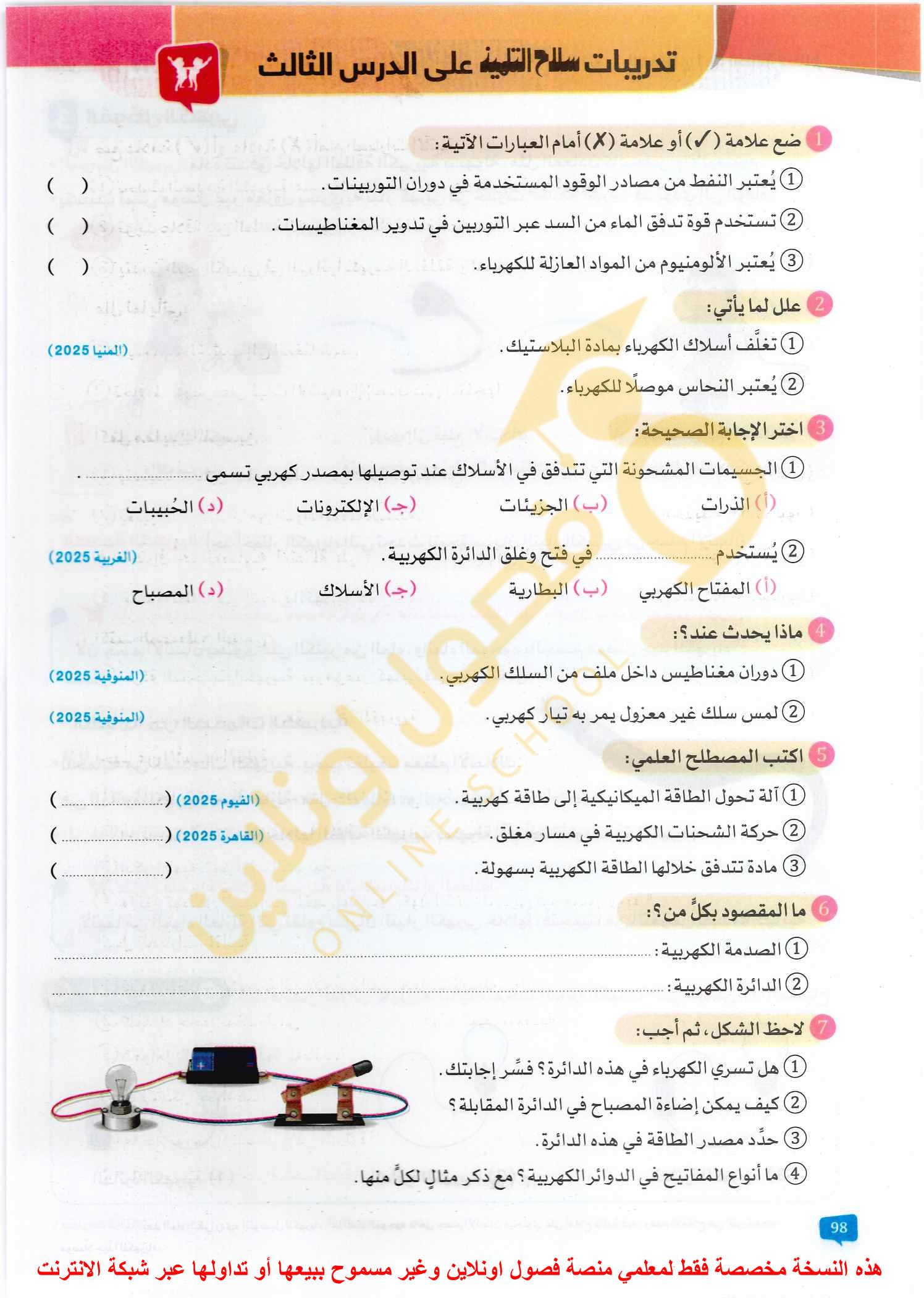 اسئله علي الدرس الثالث و الرابع صفحة 34