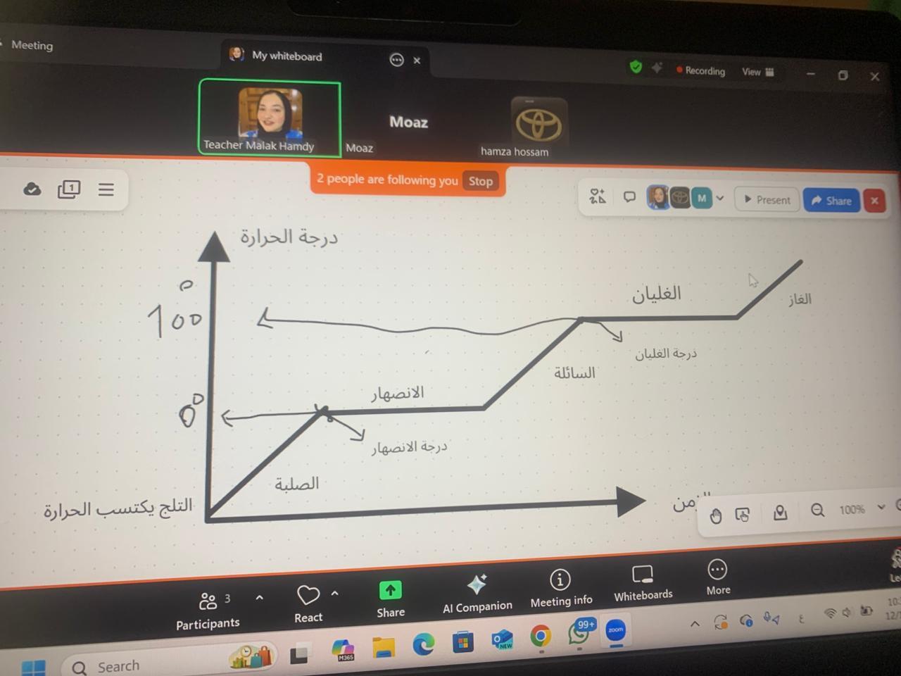 رسم منحني اكتساب الحرارة (مرتين)