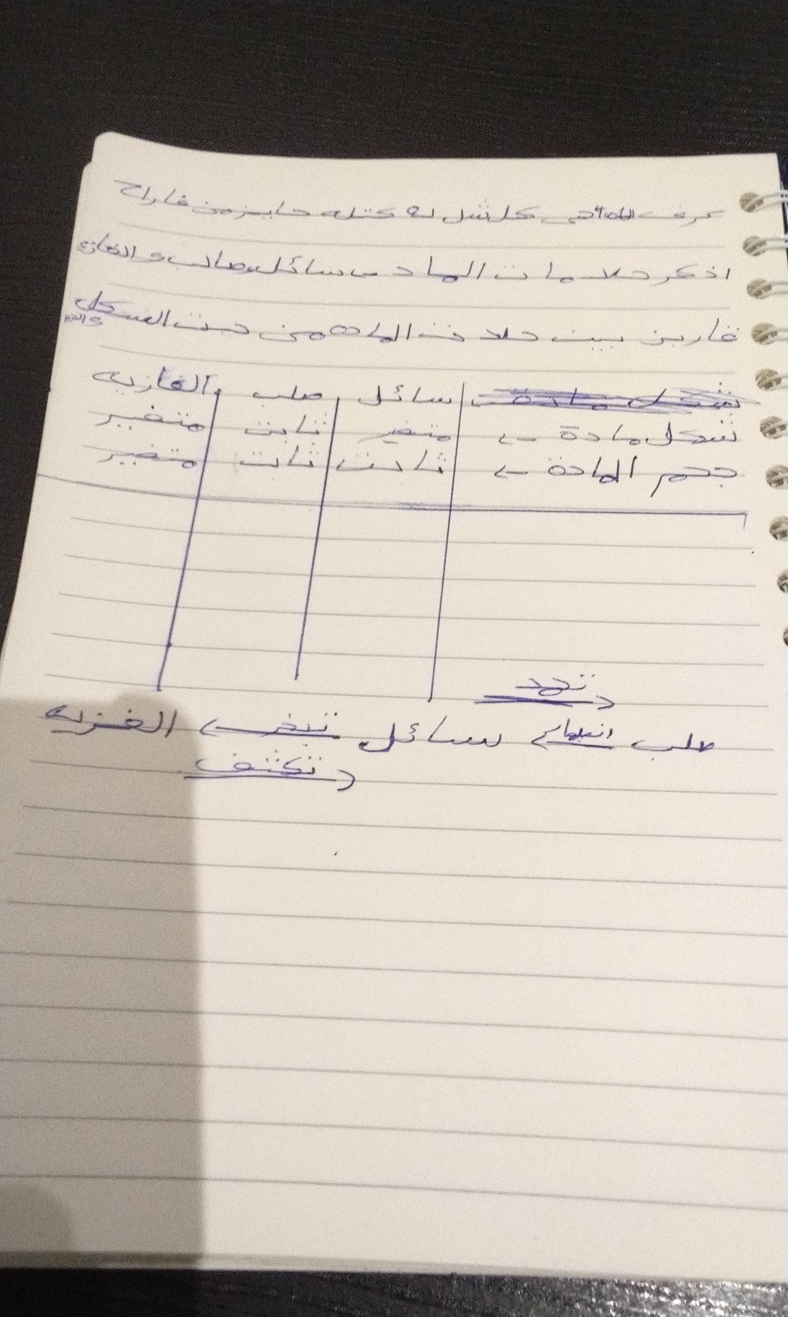 كتابة المقارنة بين المواد الصلبة و السائلة و الغازية (مرة واحدة)