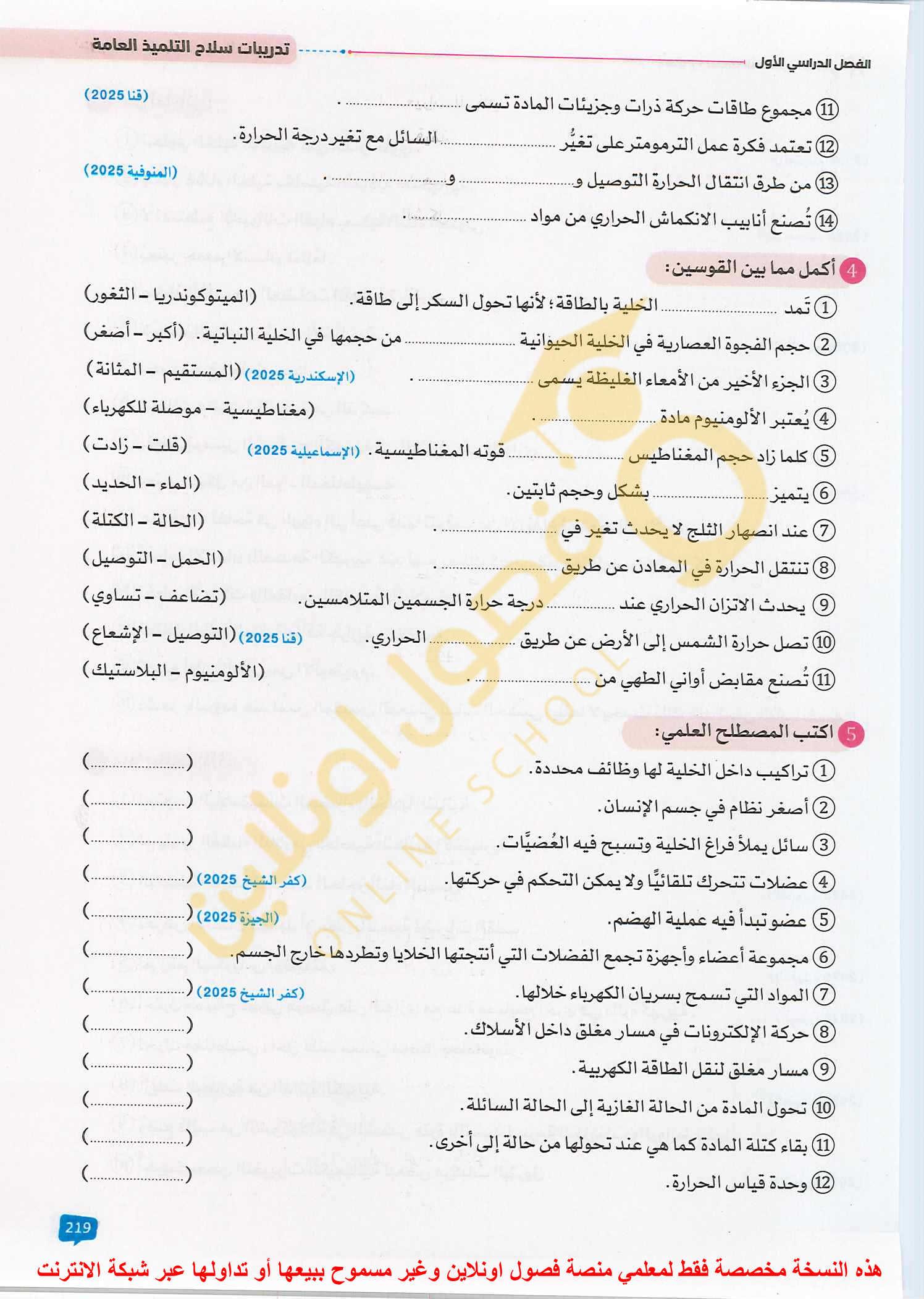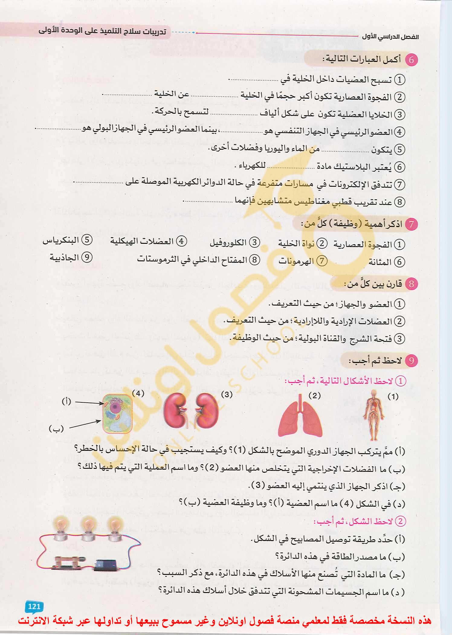 الواجب تدريبات سلاح التلميذ صفحات