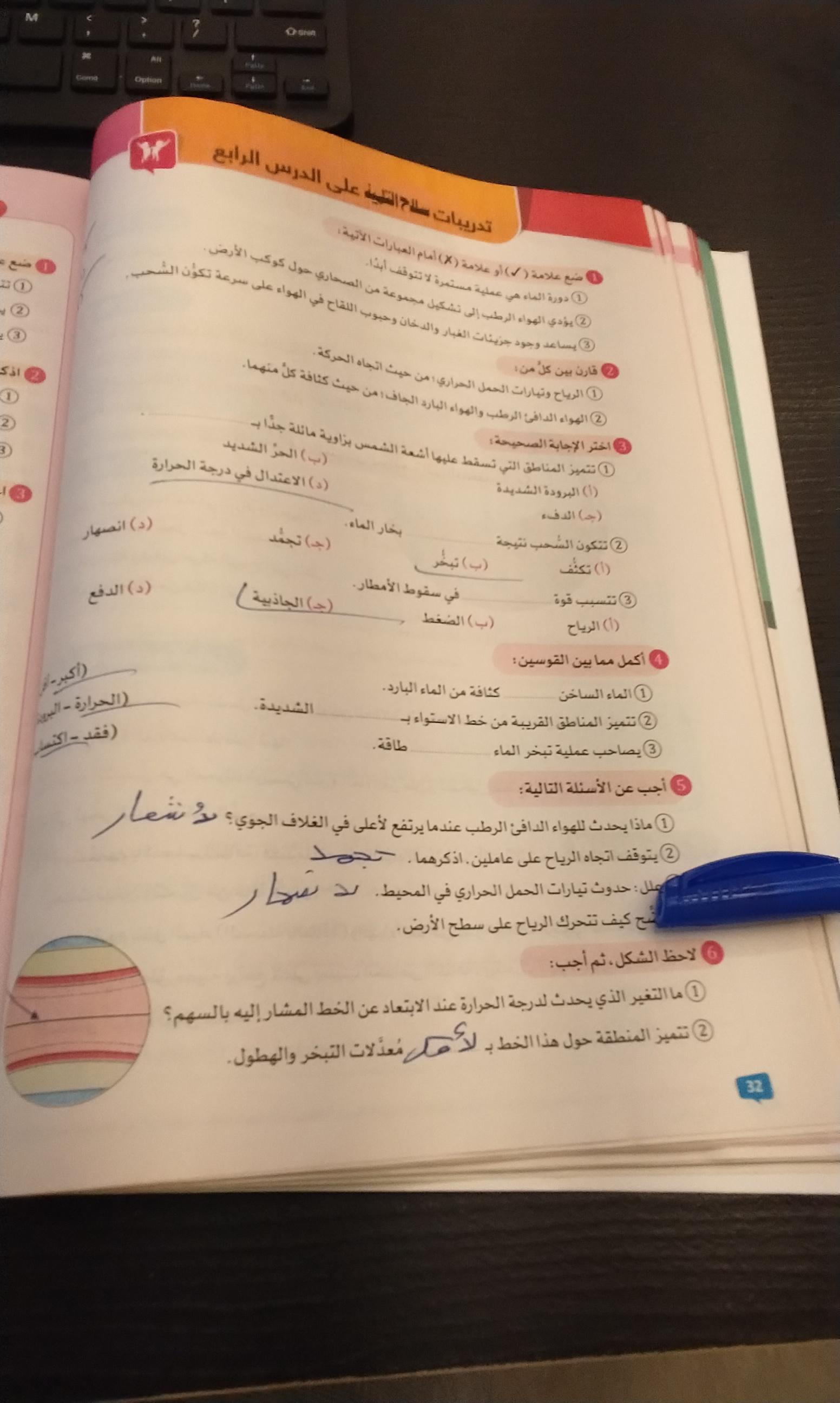 الواجب تدريبات سلاح التلميذ علي الدرس الرابع صفحة 32