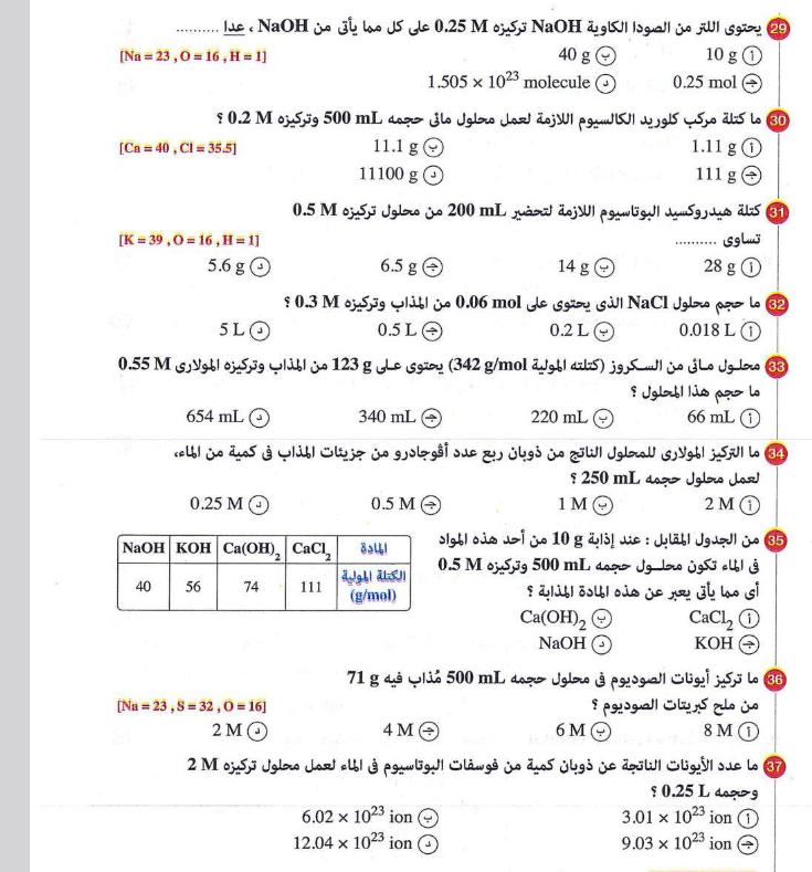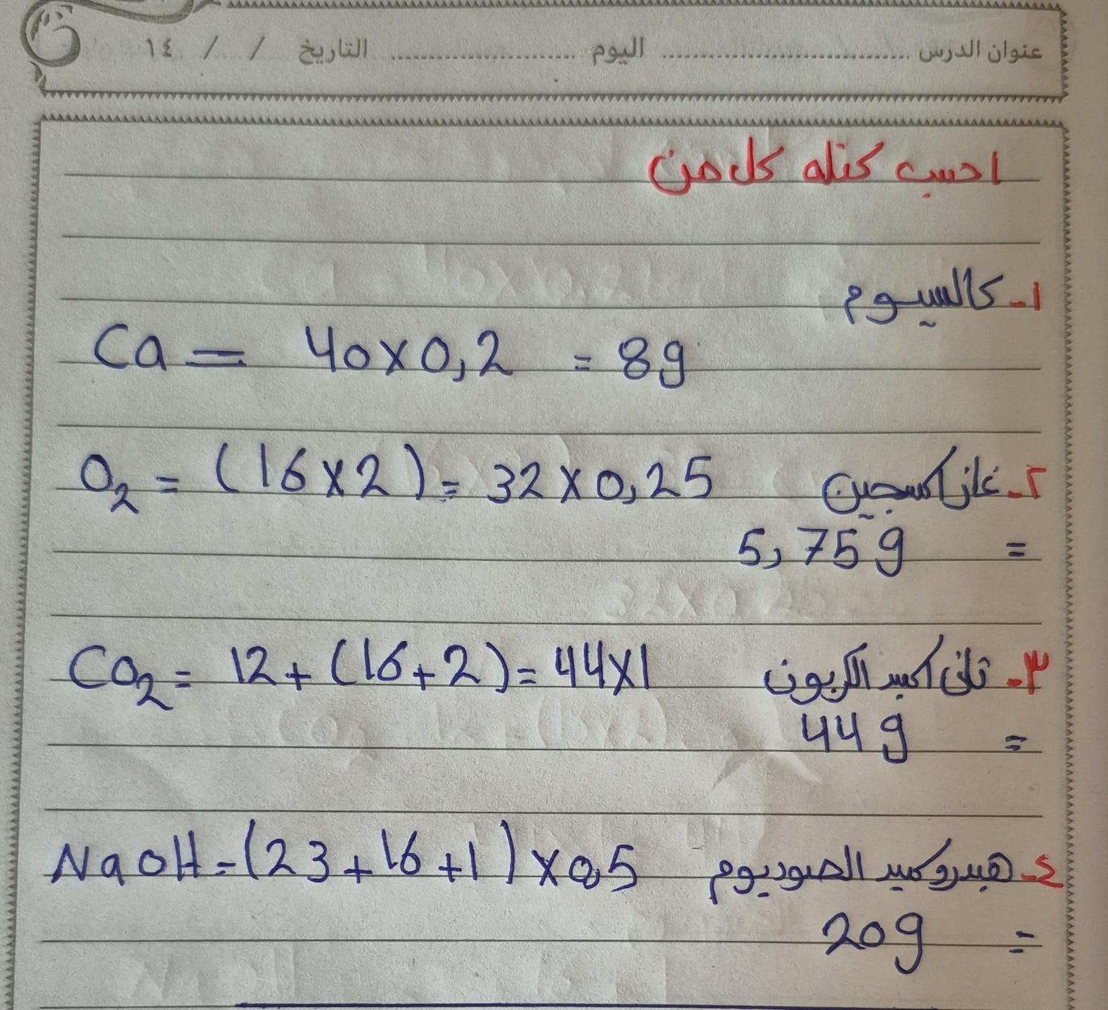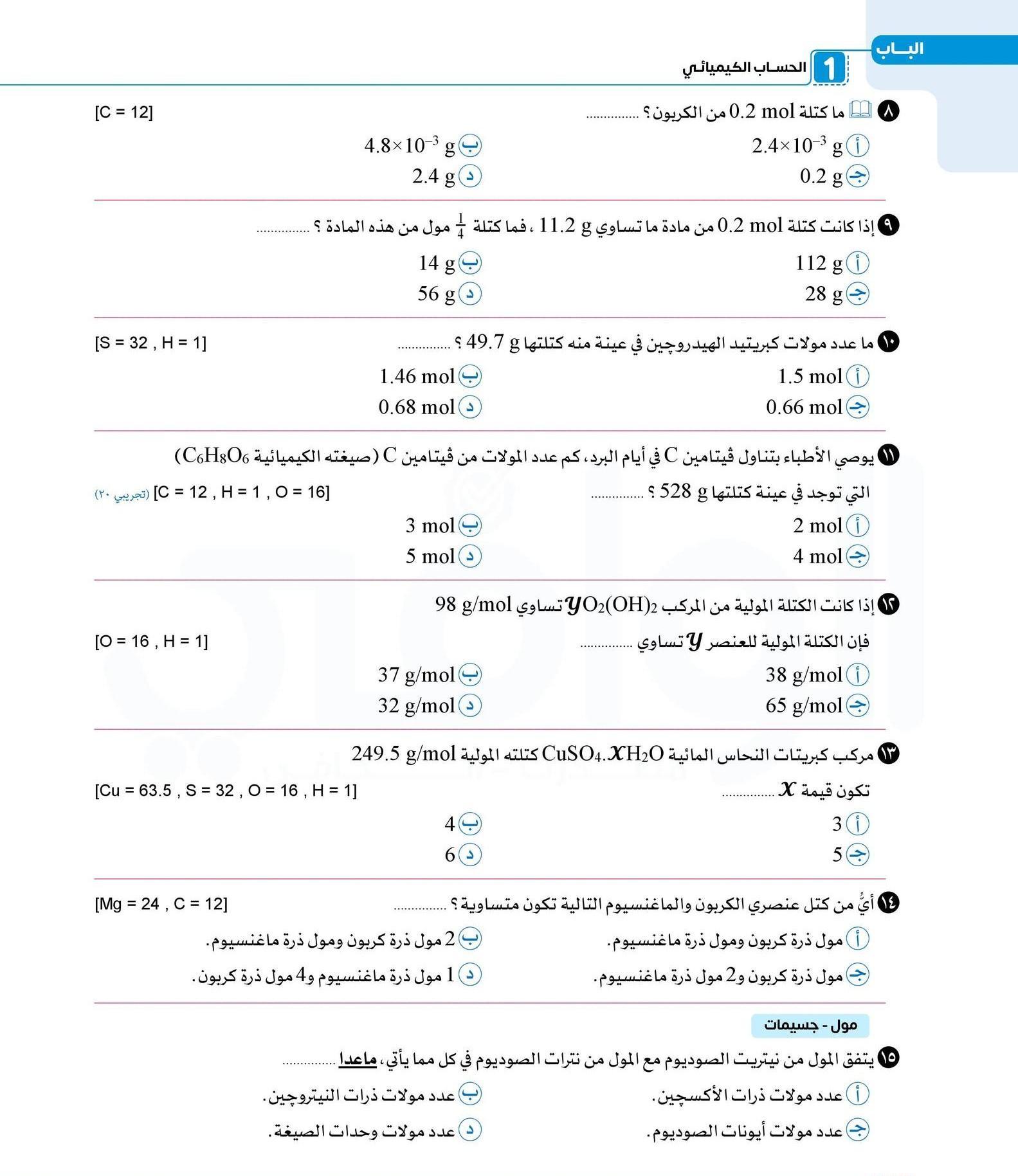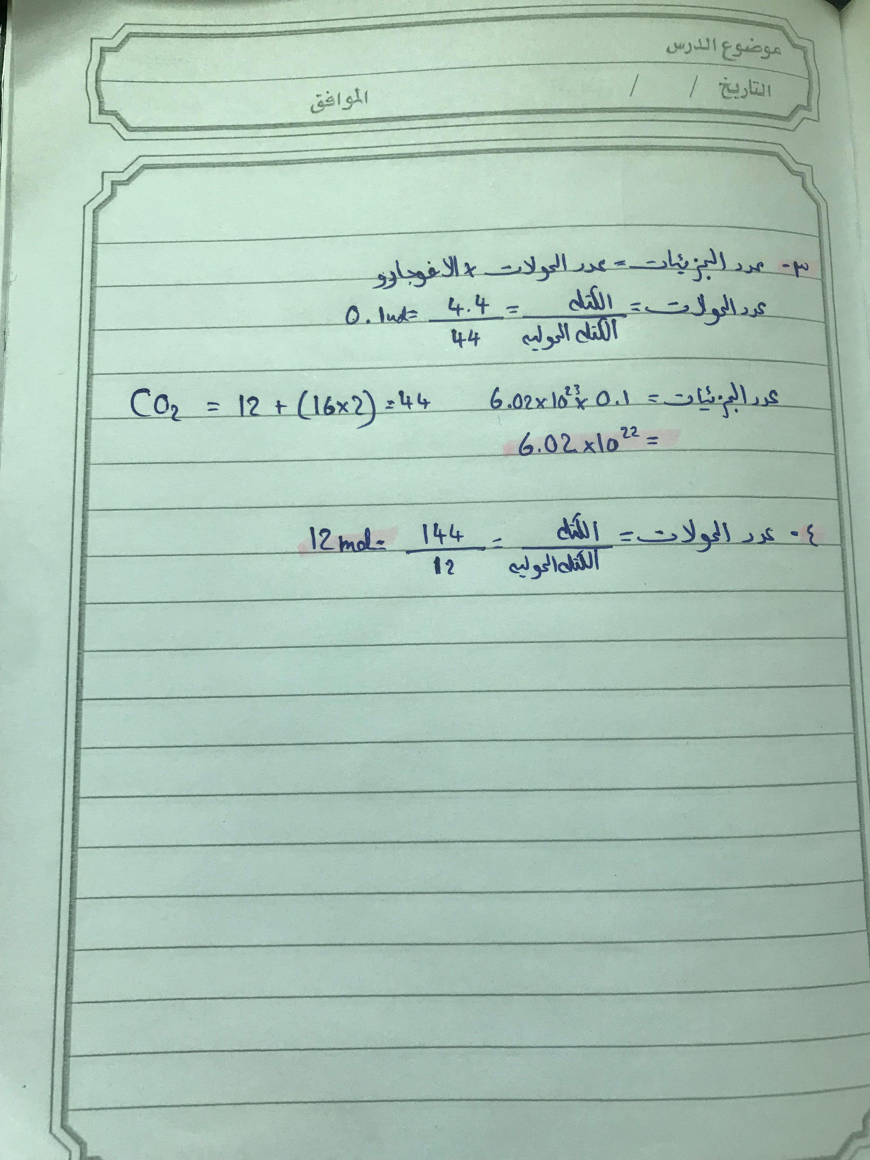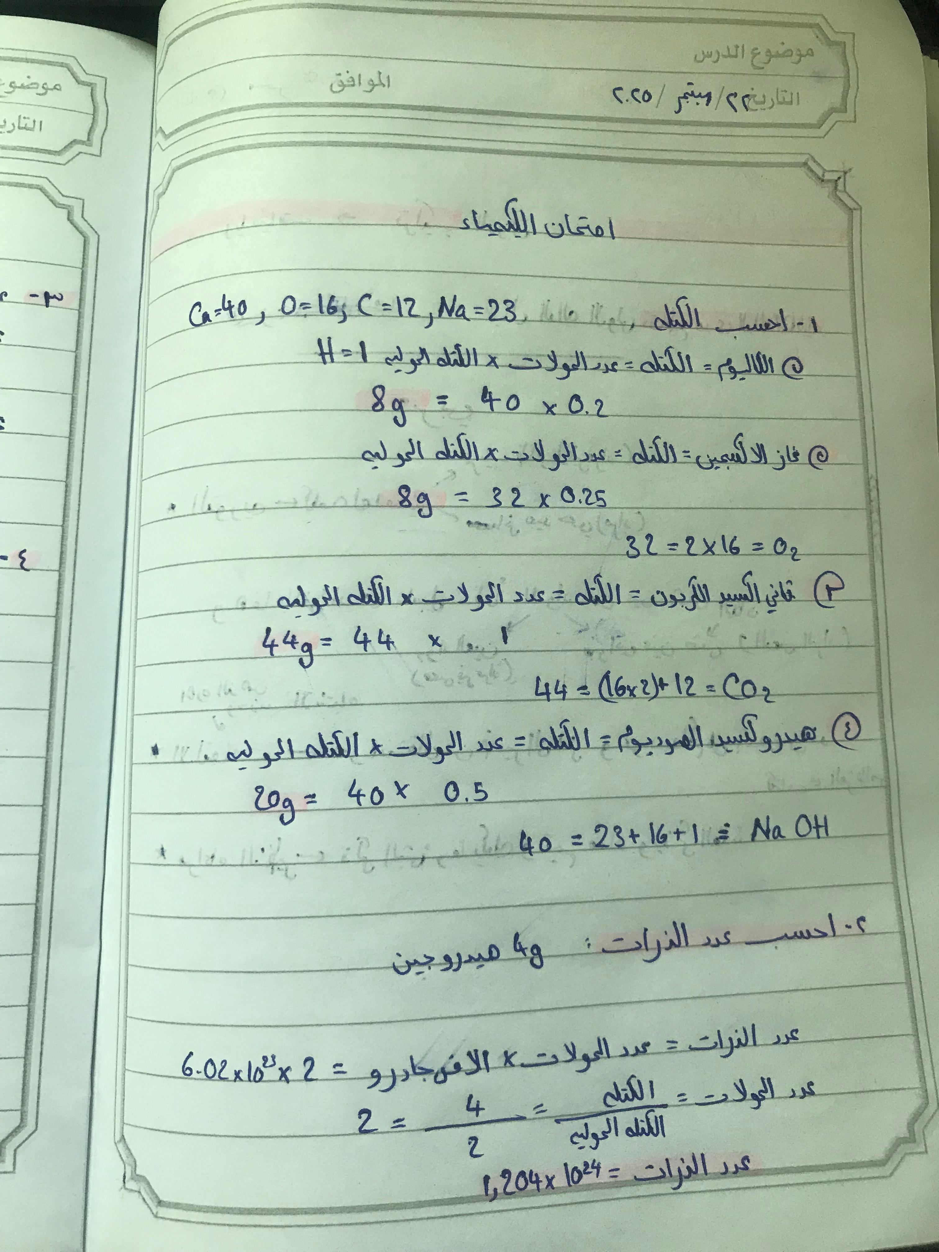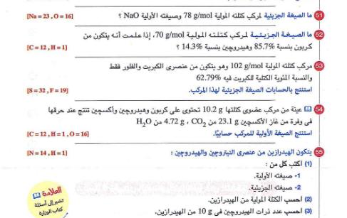 تطبيقات وحل مسائل على الصيغه الجزيئيه