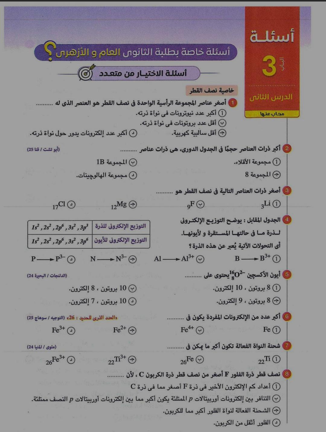 تم شرح جهد التاين ونصف قطر الذره والايون