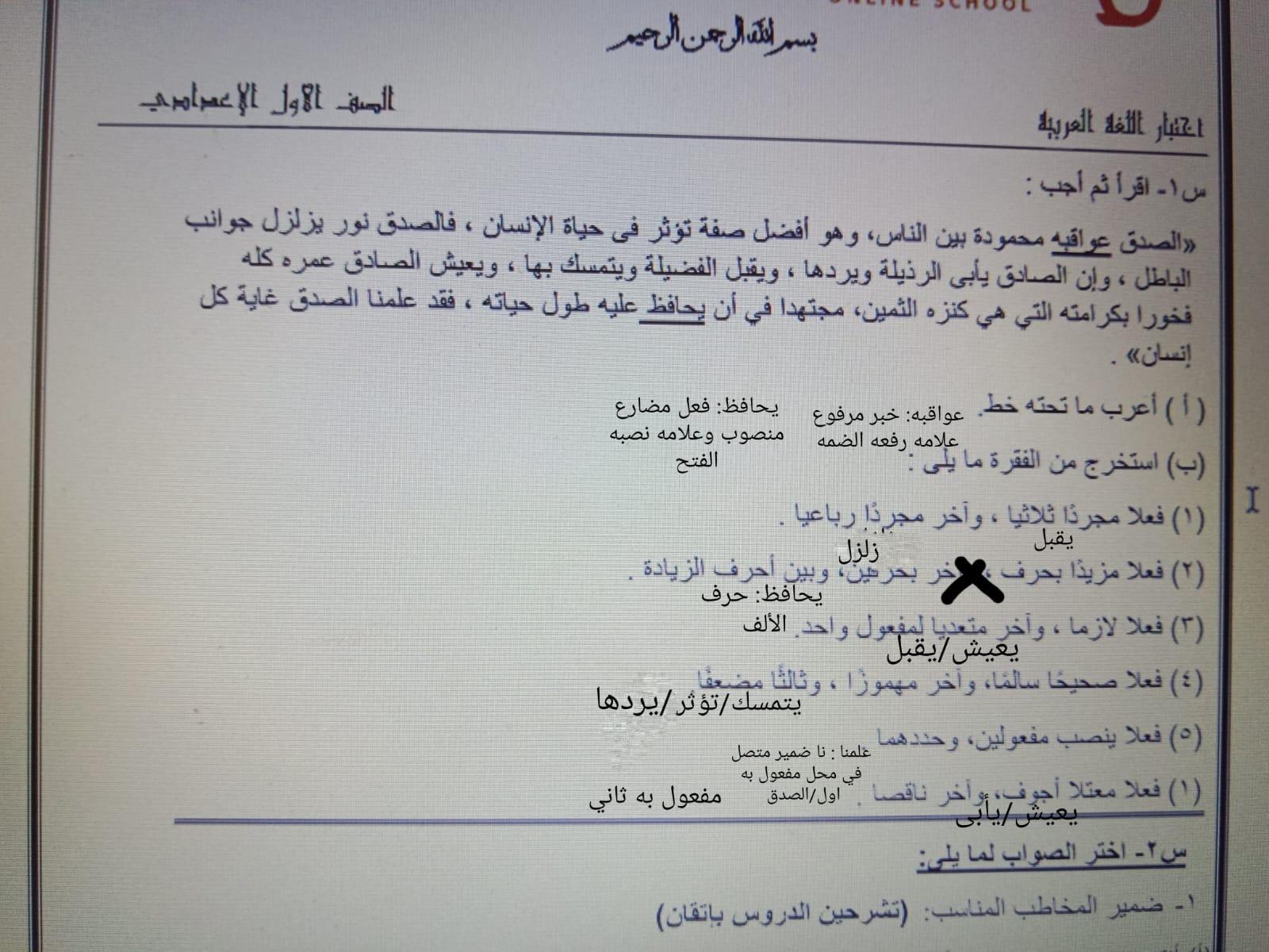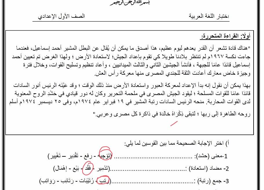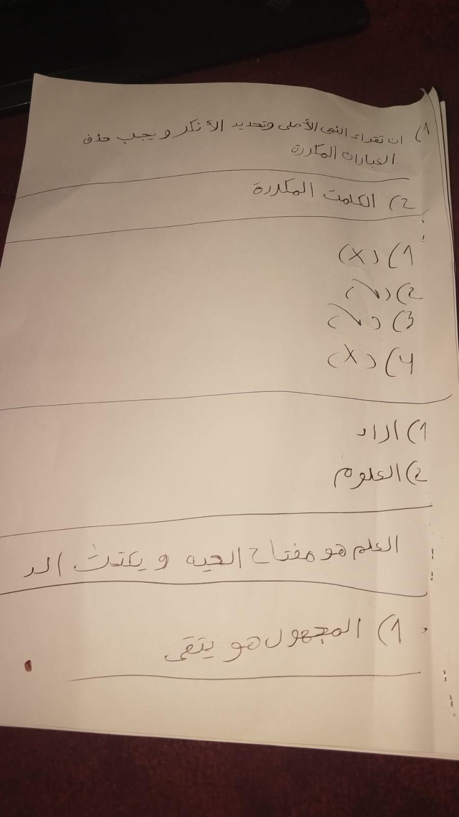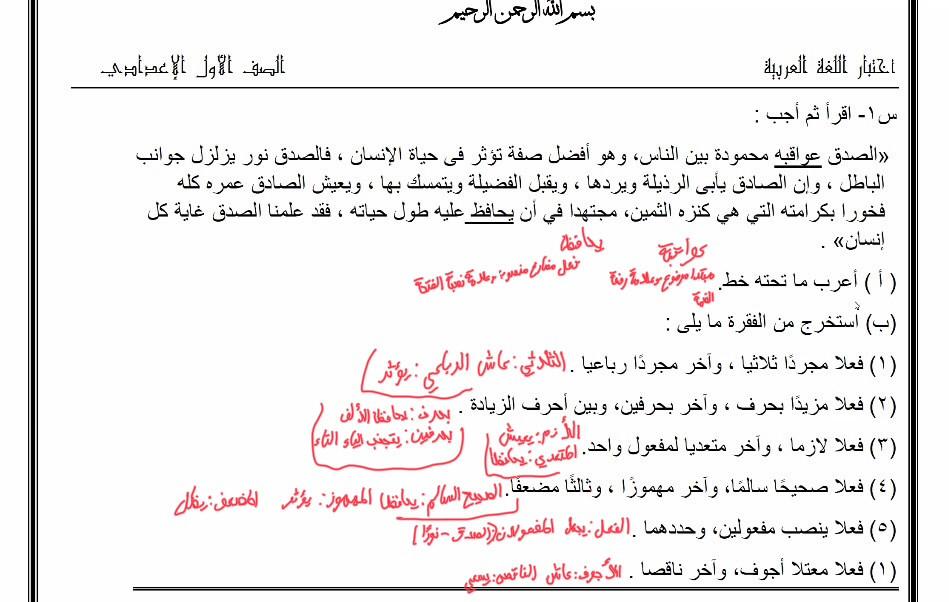 إختبار اللغة العربية عبدالله أحمد أنا أسف على التأخير يا ميس