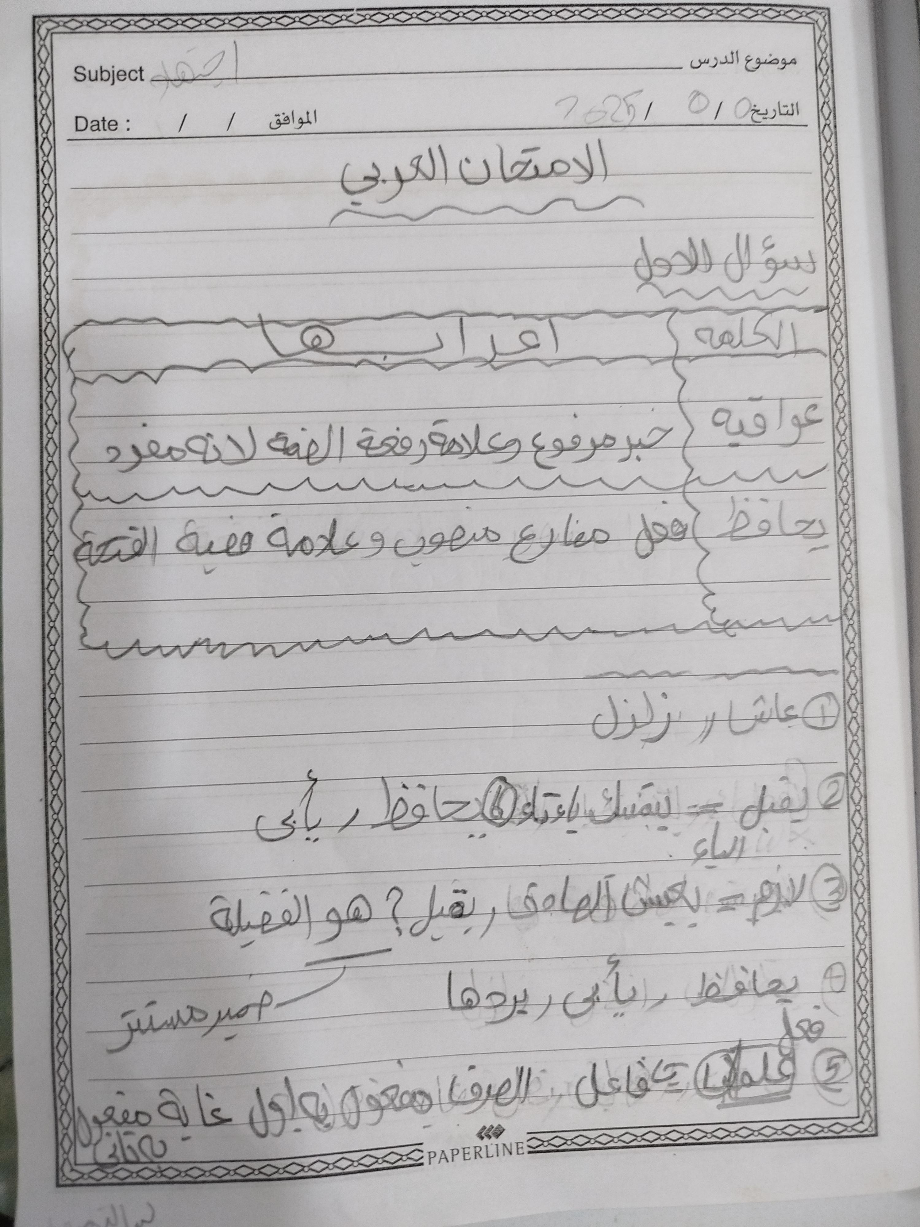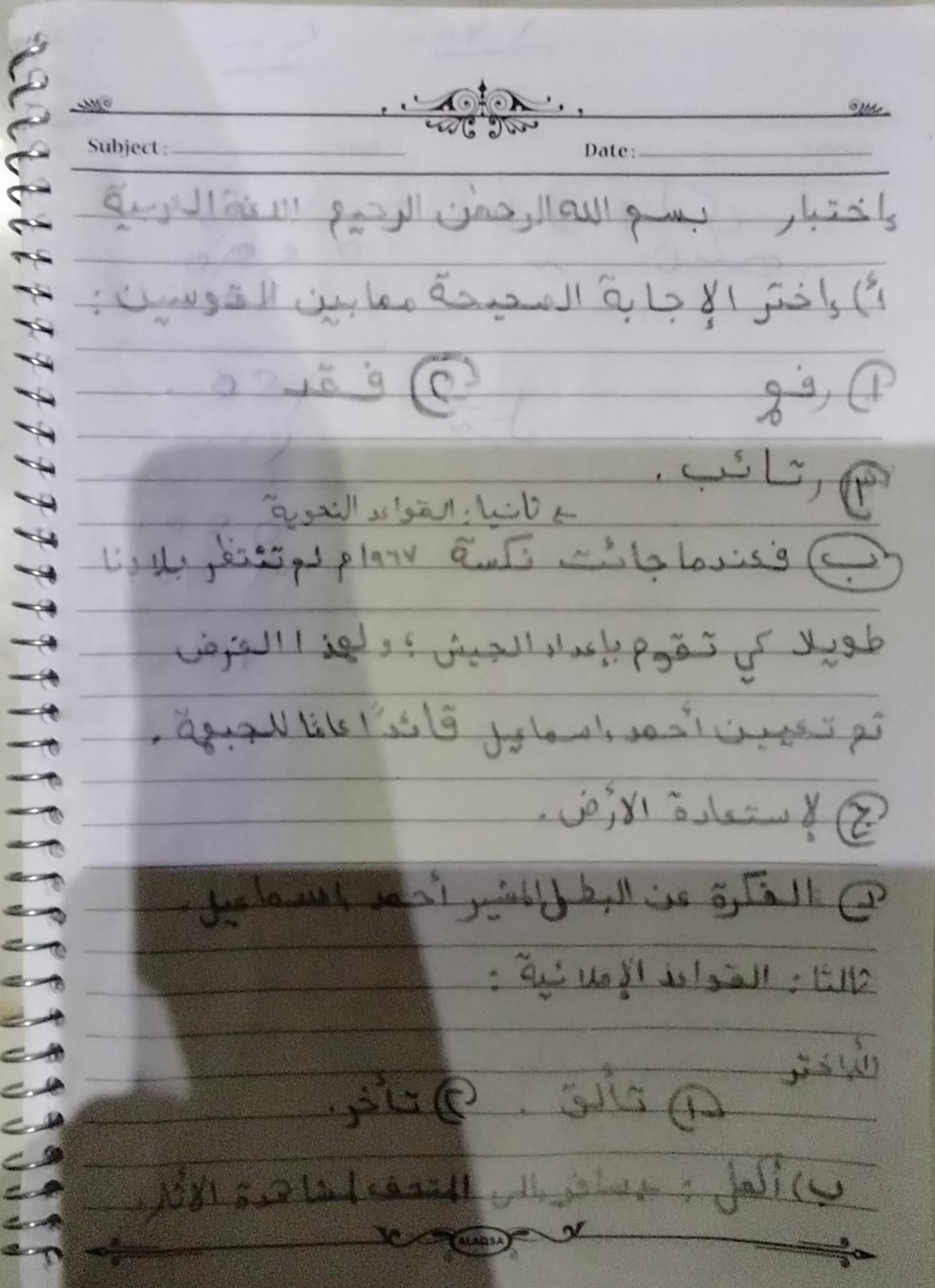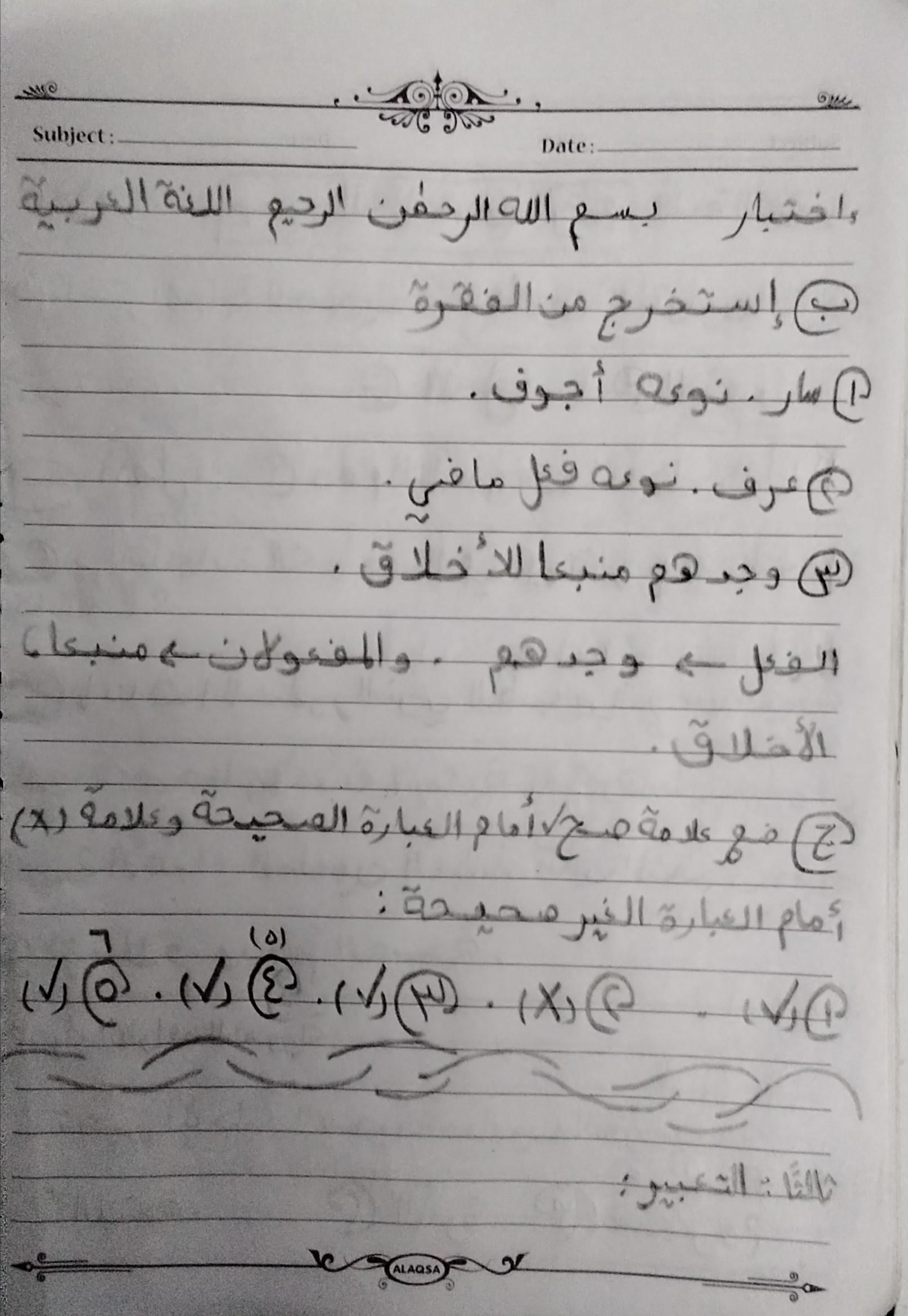 إختبار اللغة العربية عبدالله أحمد أنا أسف على التأخير يا ميس